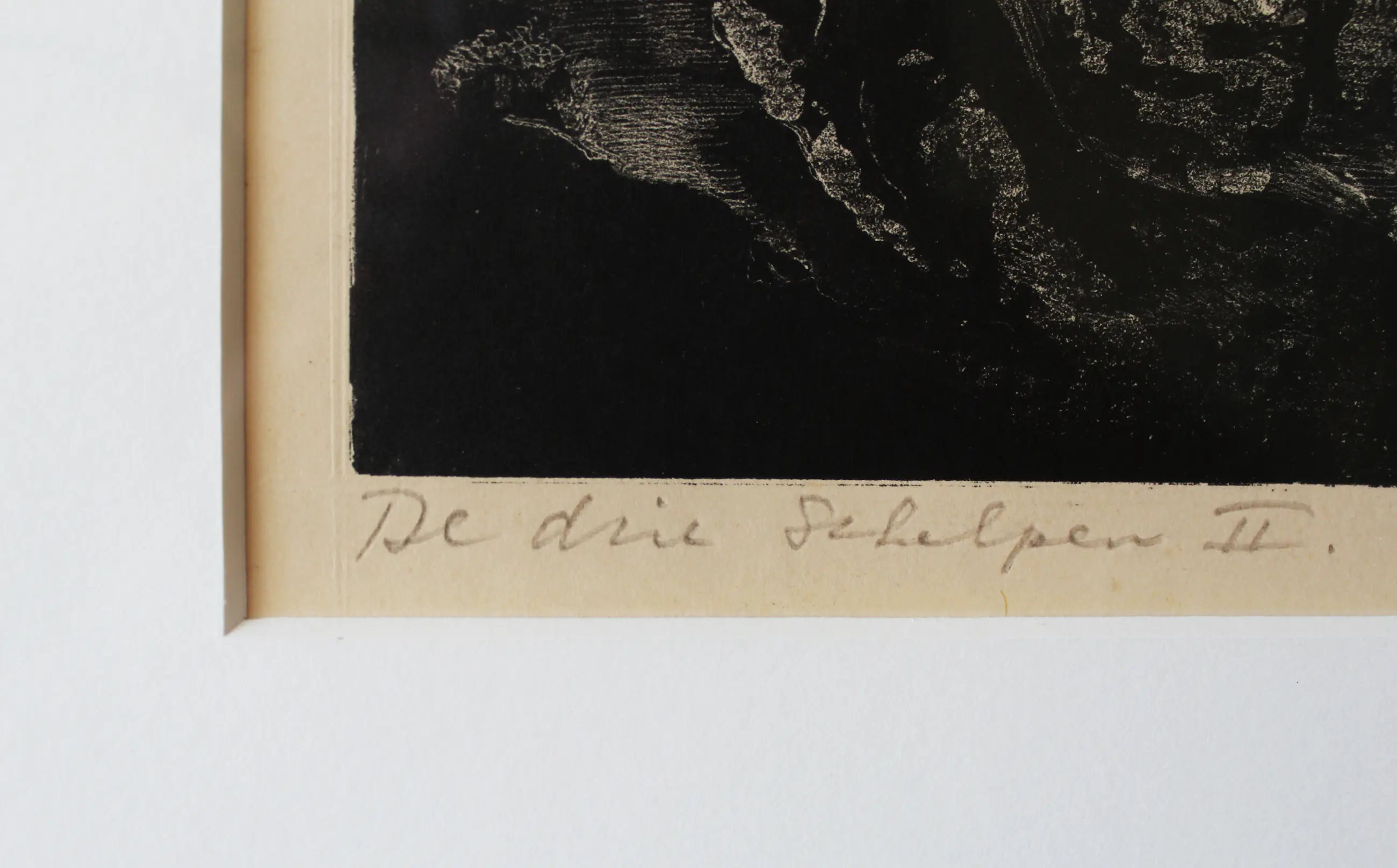 Lithografie des Künstlers aus dem Jahr 1954. Rechts unten mit Bleistift signiert, im Druck monogrammiert. Links unten mit Bleistift betitelt. Mit säurefreiem Material gerahmt, um weiteres Vergilben zu verhindern. Wunderschöne Lithografie mit vielen Details.