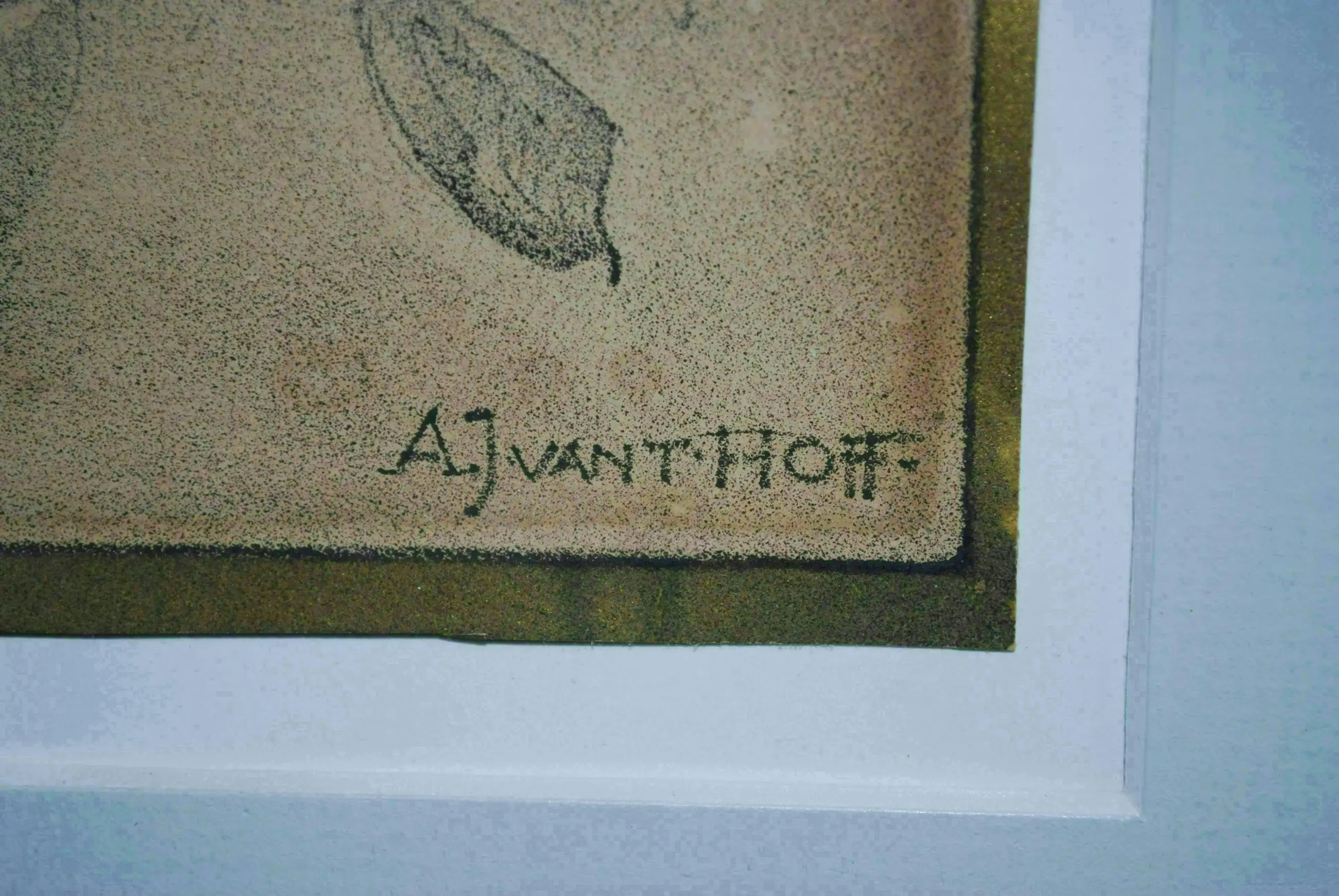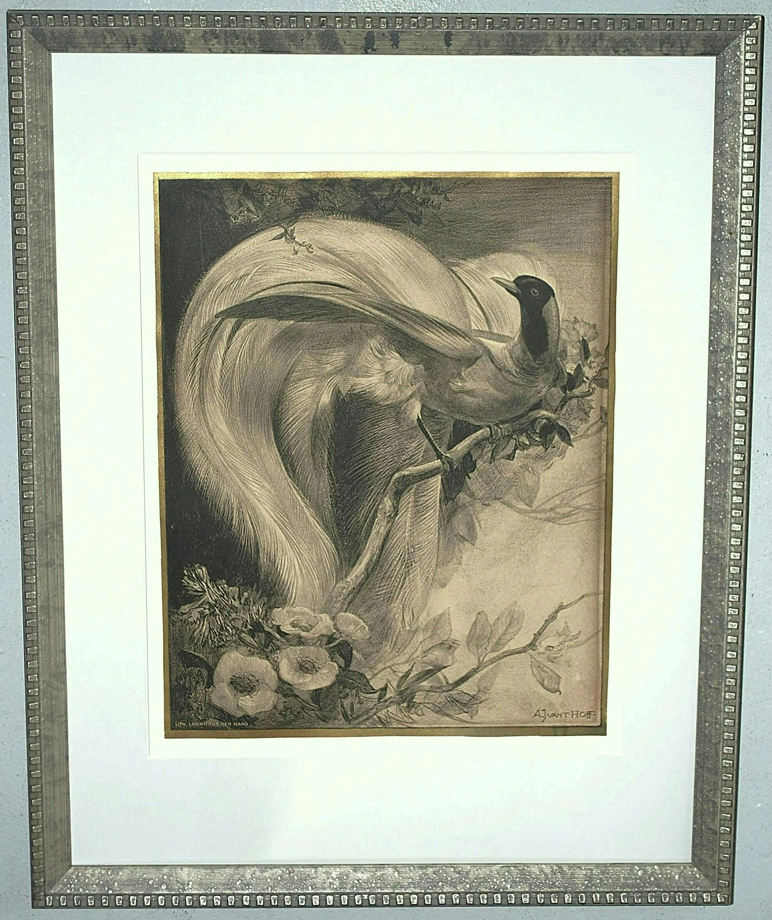 Eine Originallithografie von zwei Kakadus aus dem Jahr 1932, signiert 1. unbekannt. Lose Seite (44/30 cm) in einem Holzrahmen, hinter Glas. In ausgezeichnetem gebrauchten Zustand.