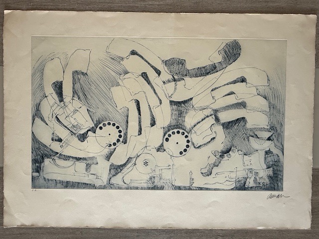 Armans Lithografie „Les Téléphones“ (1973) im Format 63 x 90 cm ist ein emblematisches Werk aus der Zeit, als sich der Künstler mit dem Thema der Anhäufung und Wiederholung von Alltagsgegenständen, in diesem Fall Telefonen, auseinandersetzte.