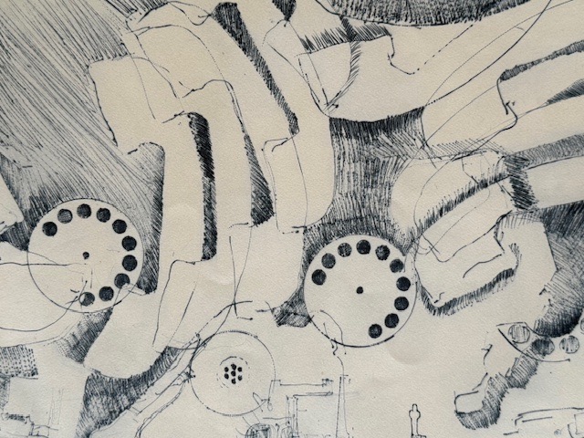 Die Wiederholung von Formen und die Überlagerung von Linien erinnern an übermäßigen Konsum, die Allgegenwart von Technologie und die Anonymität moderner Kommunikation und spielen gleichzeitig mit der visuellen Schönheit des sich wiederholenden Musters. Das Ganze erzeugt einen dynamischen, fast musikalischen Eindruck, bei dem jedes Telefon mit den anderen zu kommunizieren scheint und einen visuellen Chor bildet, der für Armans Universum typisch ist.