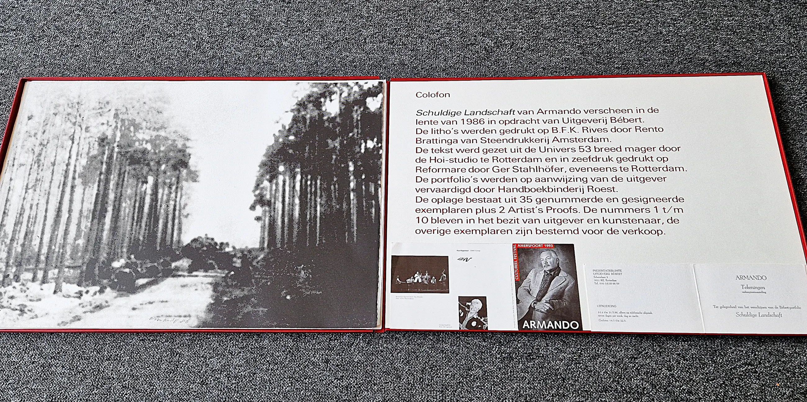 - Originale monochrome Lithografie auf Büttenpapier von Rives, hergestellt von Armando im Jahr 1986. Zusammen mit 4 anderen Lithografien, die zum Portfolio „Schuldige Landschaft“ gehören, herausgegeben von der Galerie Bébert Rotterdam. Sehr limitierte Auflage von 35 Exemplaren.