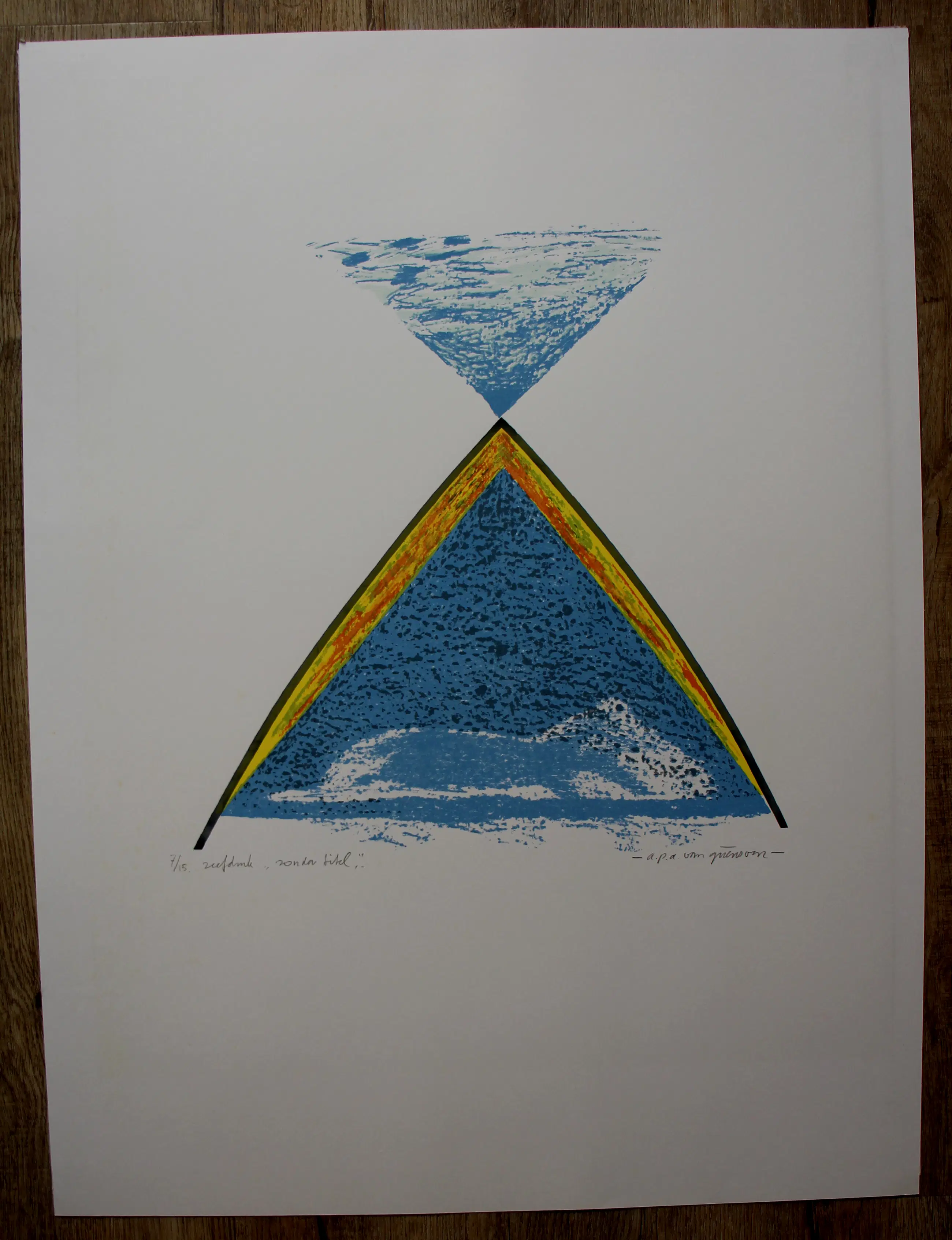 Siebdruck von Arnold van Griensven. Ohne Titel. Auflage: 7/15. Maße Blatt: H 80 x B 60 cm. Maße Bild: H 41 x B 40 cm. Das Werk ist unten rechts vom Künstler signiert. Die Echtheit des angebotenen Werkes wird vollständig garantiert. Ein Echtheitszertifikat kann auf Anfrage per E-Mail zugesandt werden.