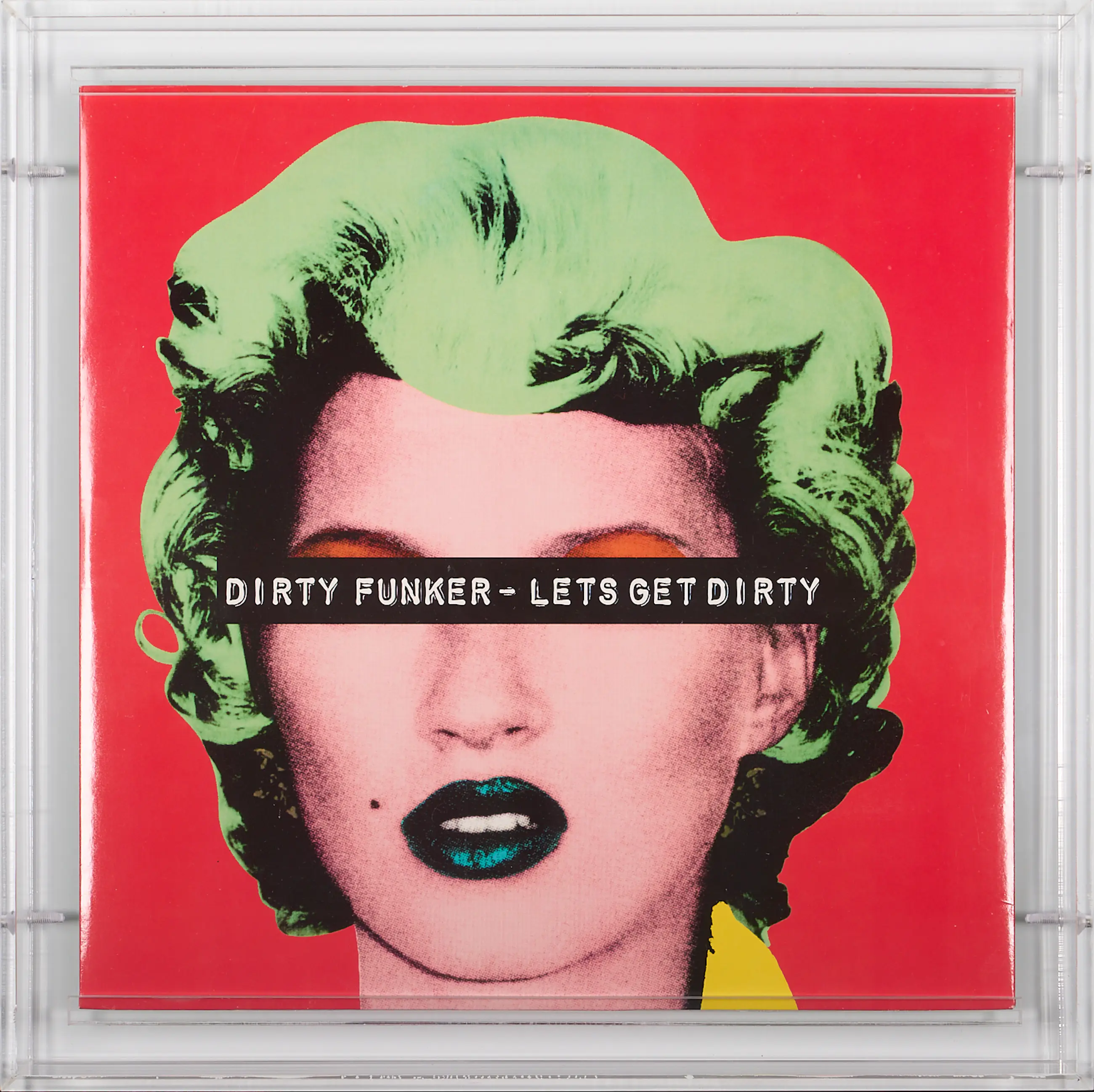 Banksy Super Set: Schallplatte: Dirty Funker – Let's Get Dirty in Plexivitrine