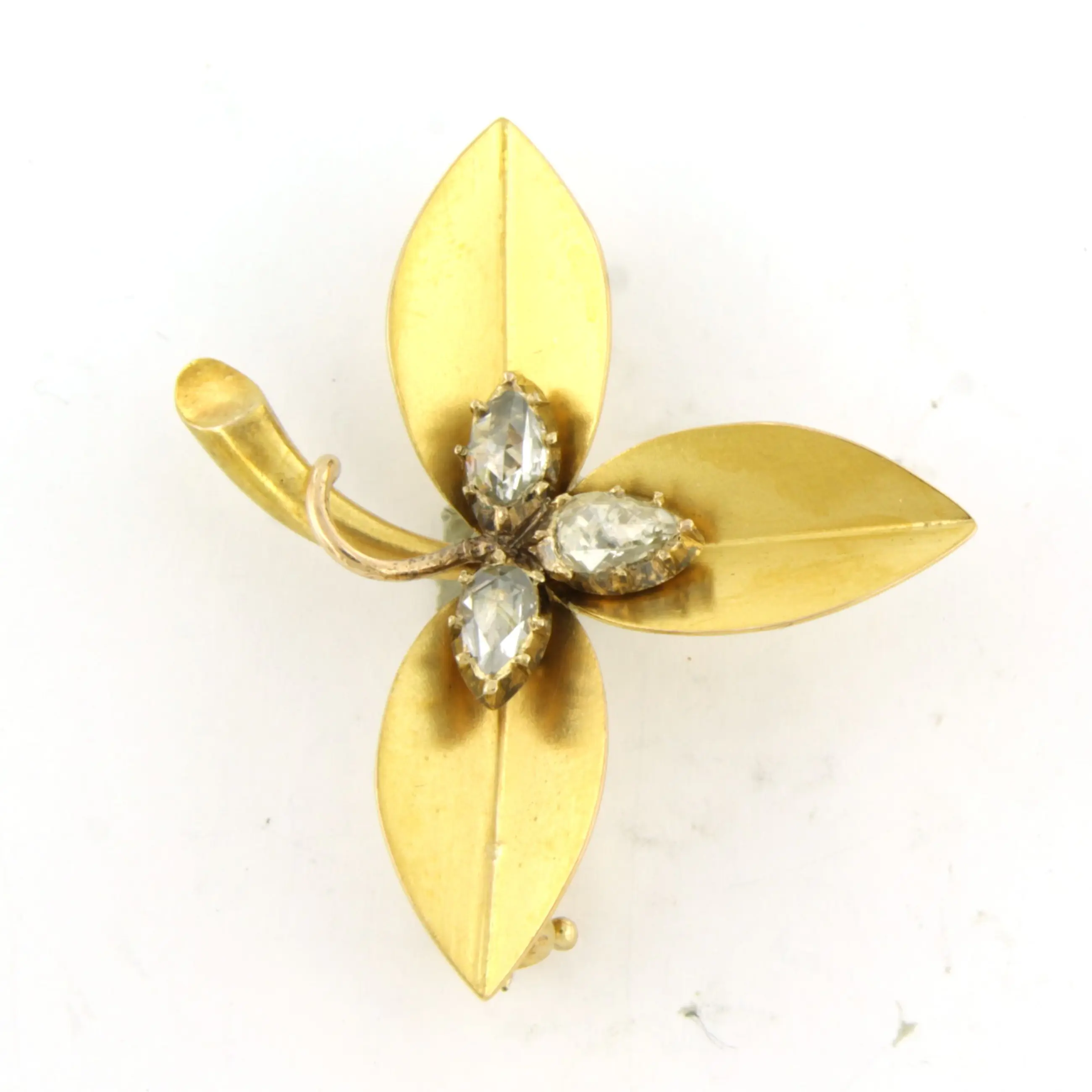 Brosche aus 14 Karat Gelbgold, besetzt mit einem Diamanten im Rosenschliff von bis zu 0,75 Karat – G/H – SI