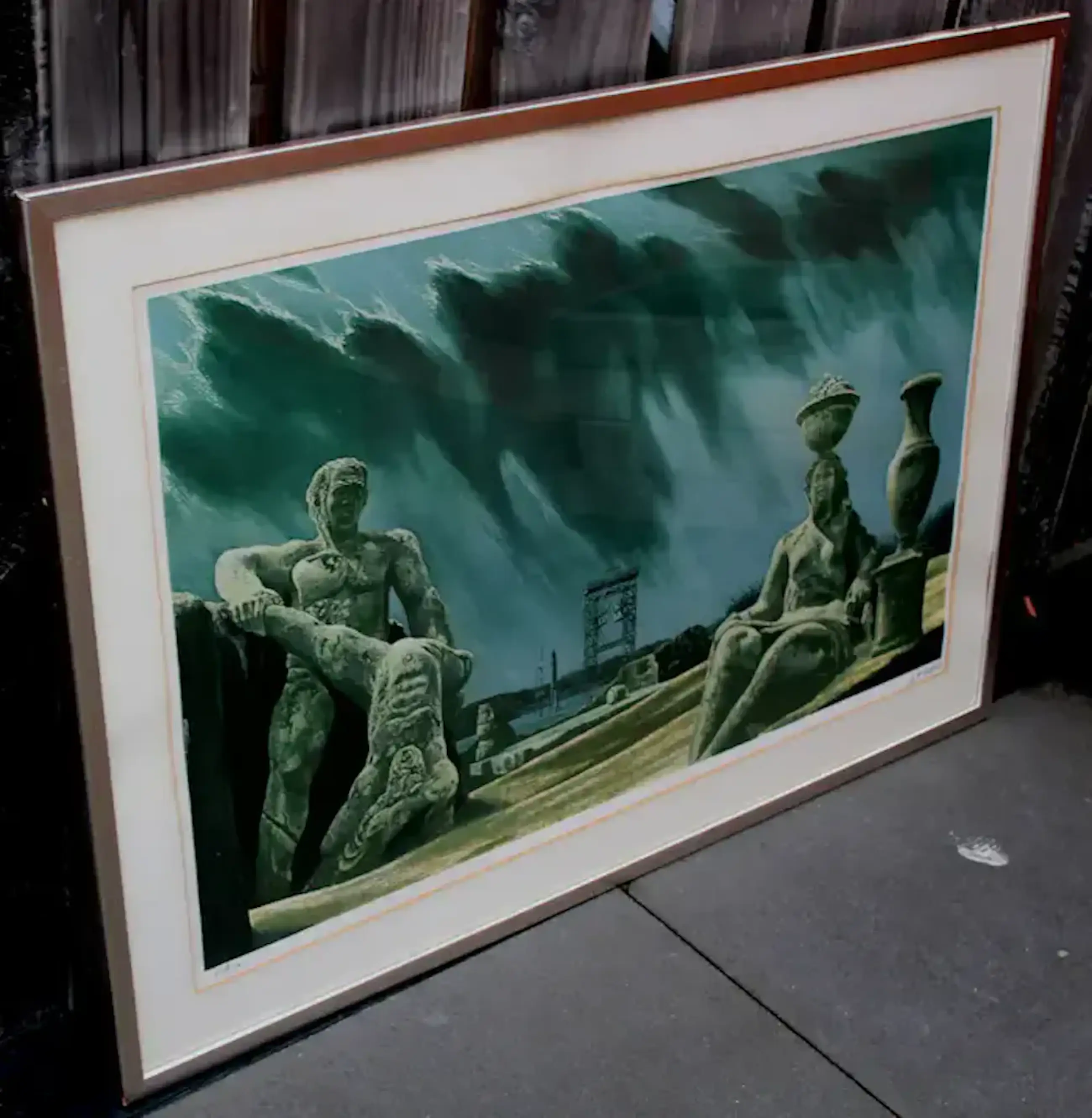 Gerahmte Lithografie von Carel Willink. Titel: „Balance of Forces“. Auflage: Proof. Maße inklusive Rahmen: H 67 x B 95 cm. Maße des Bildes: H 52,5 x B 81,5 cm. Das Werk ist unten rechts vom Künstler mit Bleistift signiert. Die Echtheit dieses Werkes wird vollständig garantiert. Auf Anfrage senden wir Ihnen gerne ein Echtheitszertifikat per E-Mail zu.