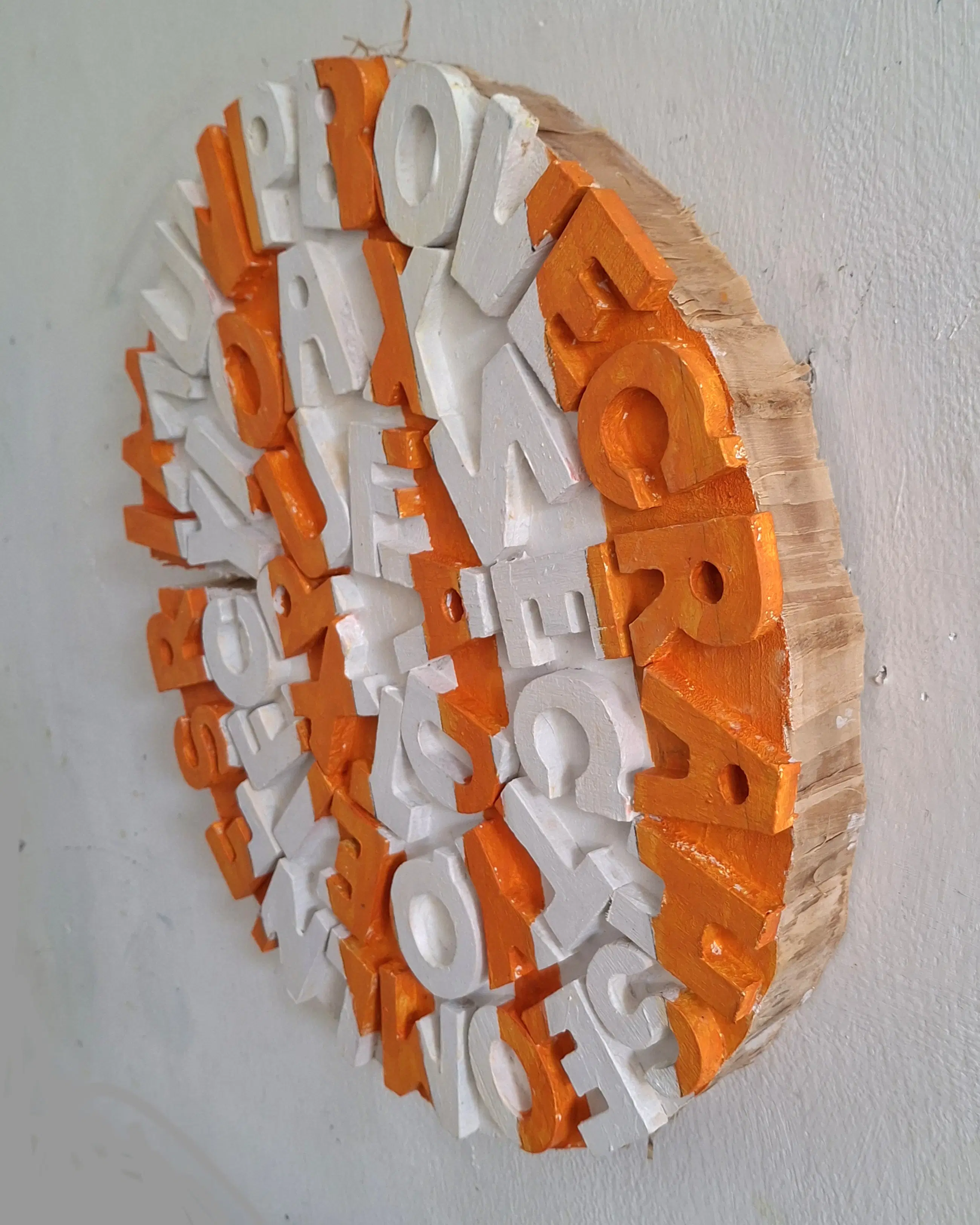 Rundes Wandbild. Acryl auf Holz. 37 x 35 x 4 cm