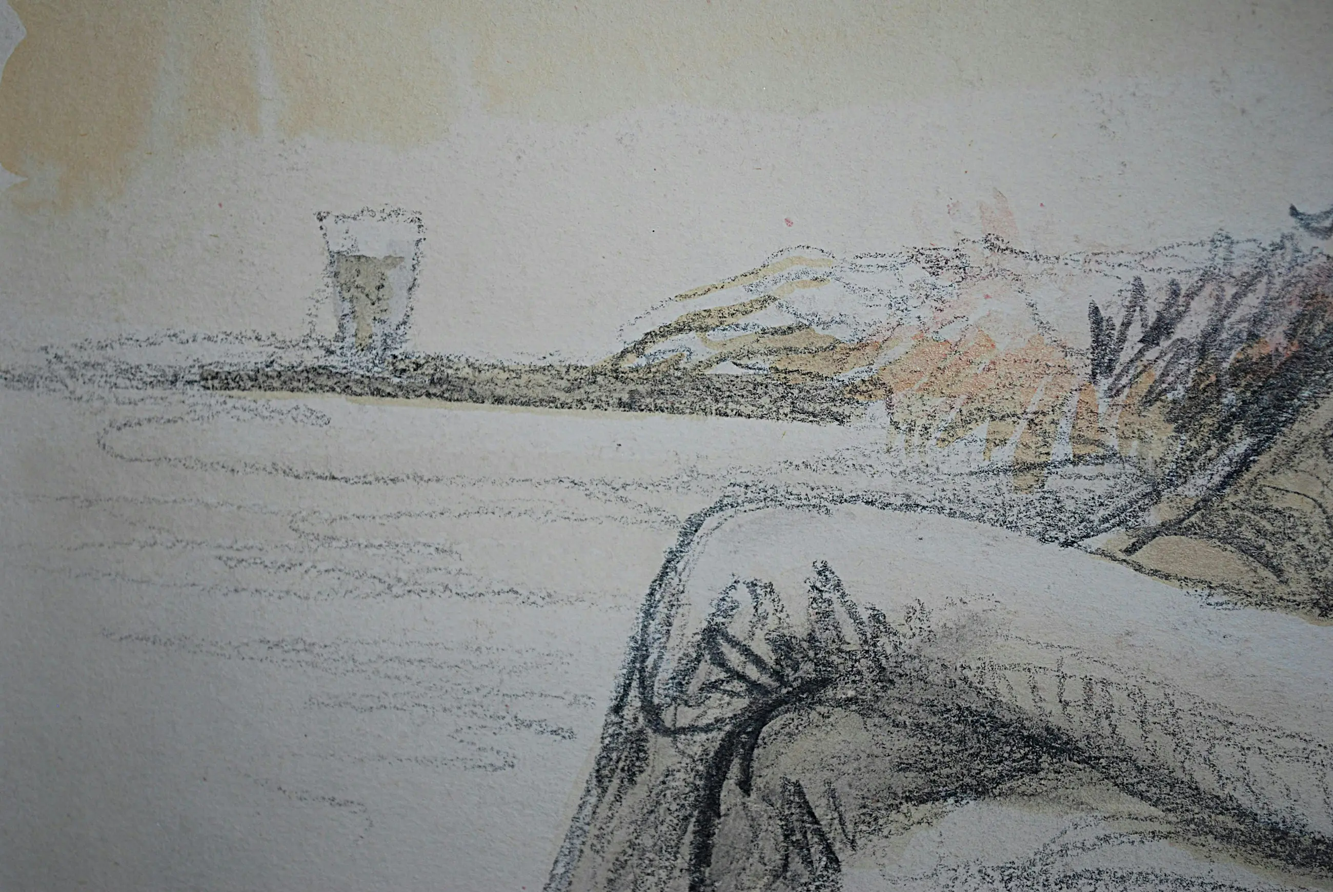 Blattgröße 28x38 cm, am oberen Rand hinter einem schönen weißen Passepartout befestigt. Hinter Glas im Aluminiumrahmen. Enthält das Bosch & Keuning-Buch von 1984. Fast vollständig illustriert! (ca. 120 Seiten)