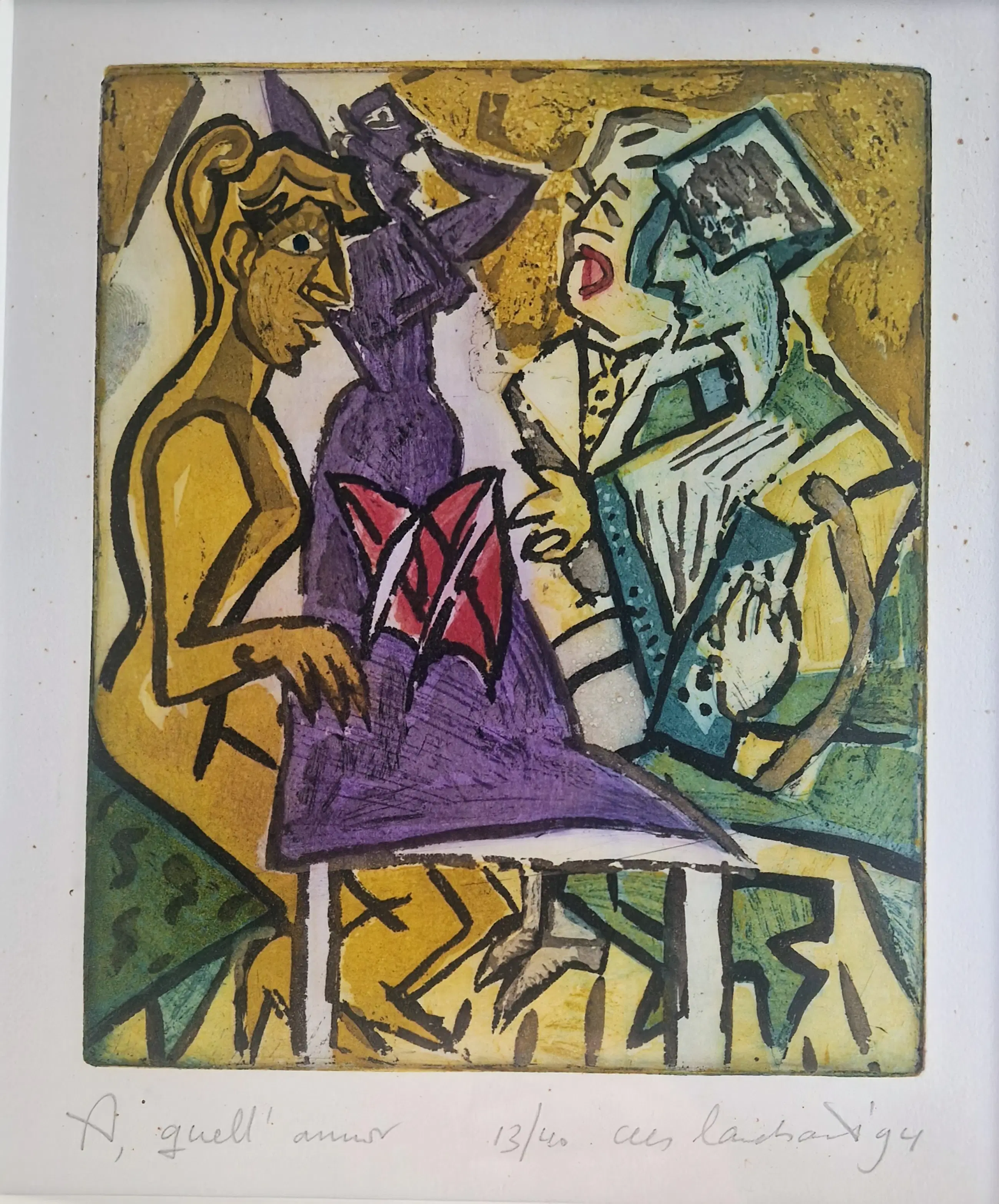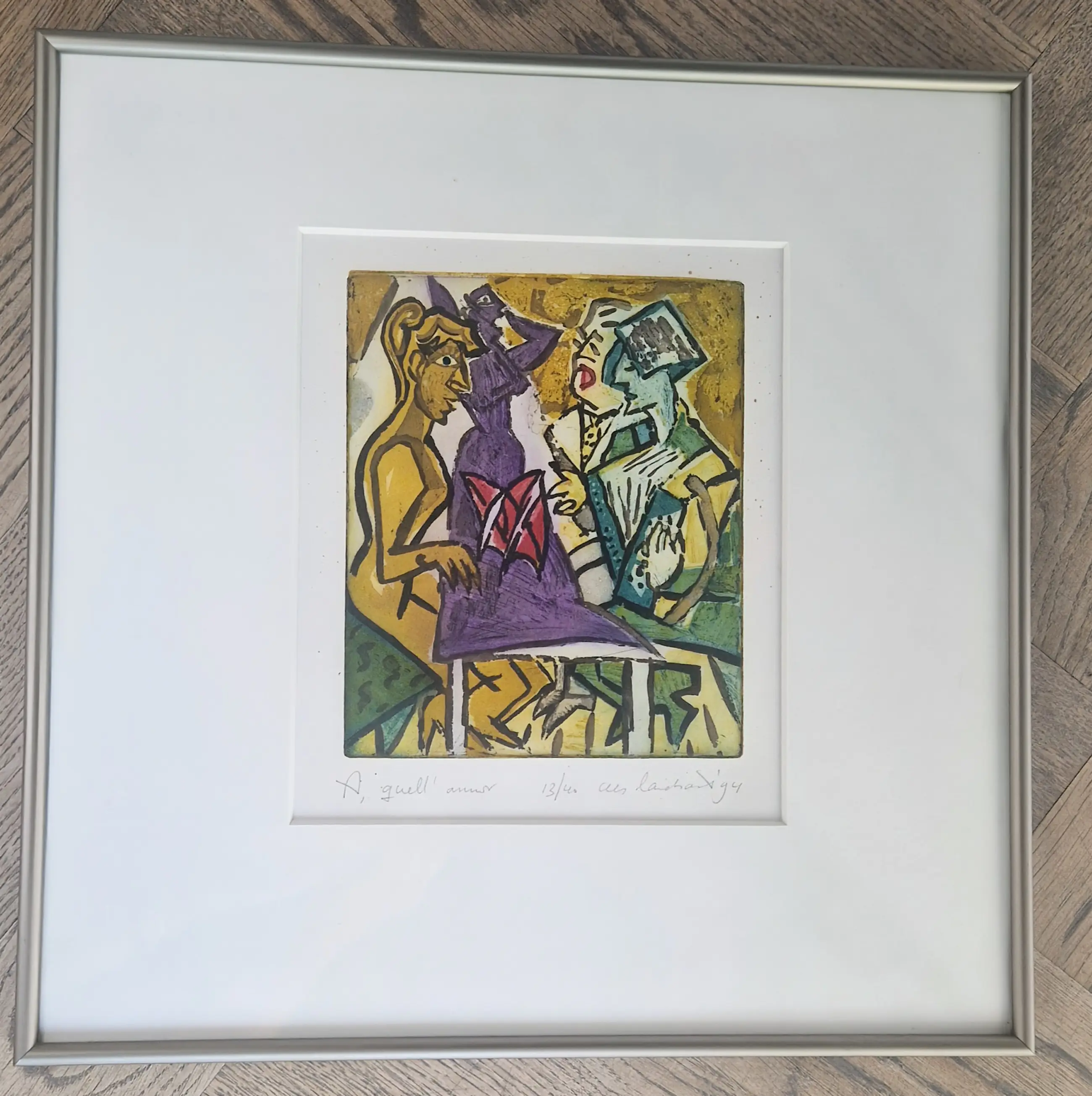 festliche Zusammenkunft, Radierung/Aquatinta im Passepartout mit farblich passendem Aluminiumrahmen