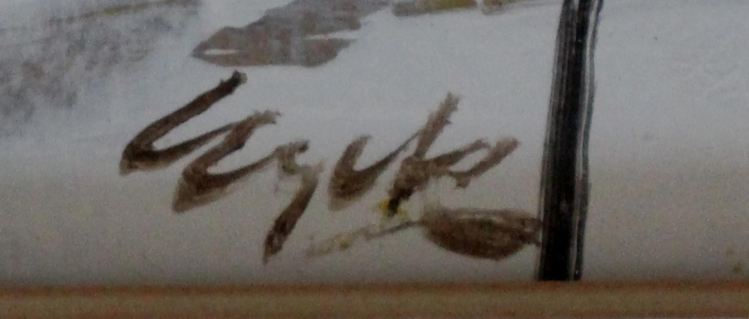 Rahmen: Schäden an Rahmen werden nicht beschrieben. Ist ein Werk hinter Glas gerahmt und das Glas zerbrochen, wird dies erwähnt. Auf Fotos gerahmter Werke können Reflexionen sichtbar sein.