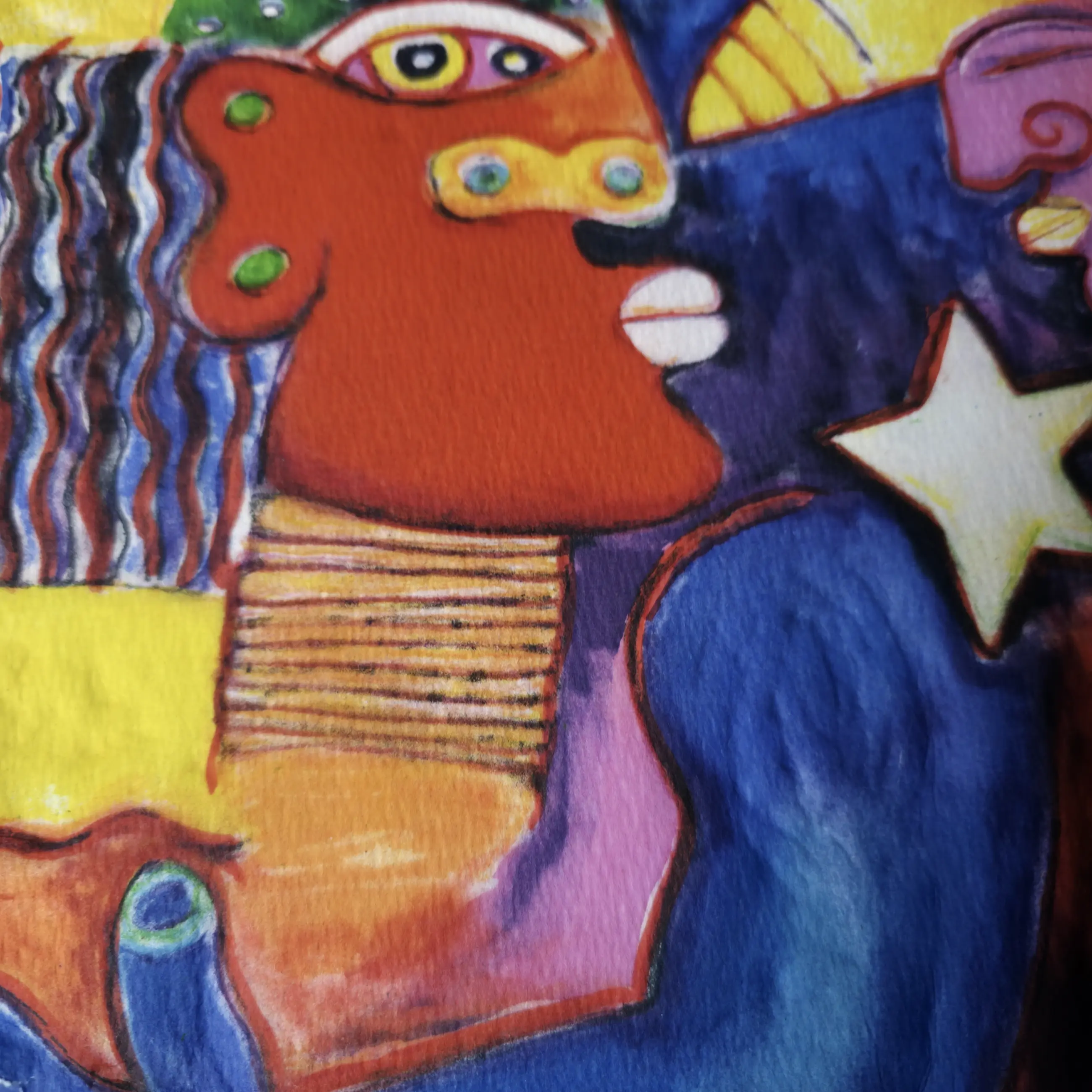 Briels' ausdrucksstarker Stil kommt in dieser Technik besonders kraftvoll zum Ausdruck. Ein markantes und einzigartiges Werk, das sowohl Sammler als auch Kunstliebhaber begeistern wird.