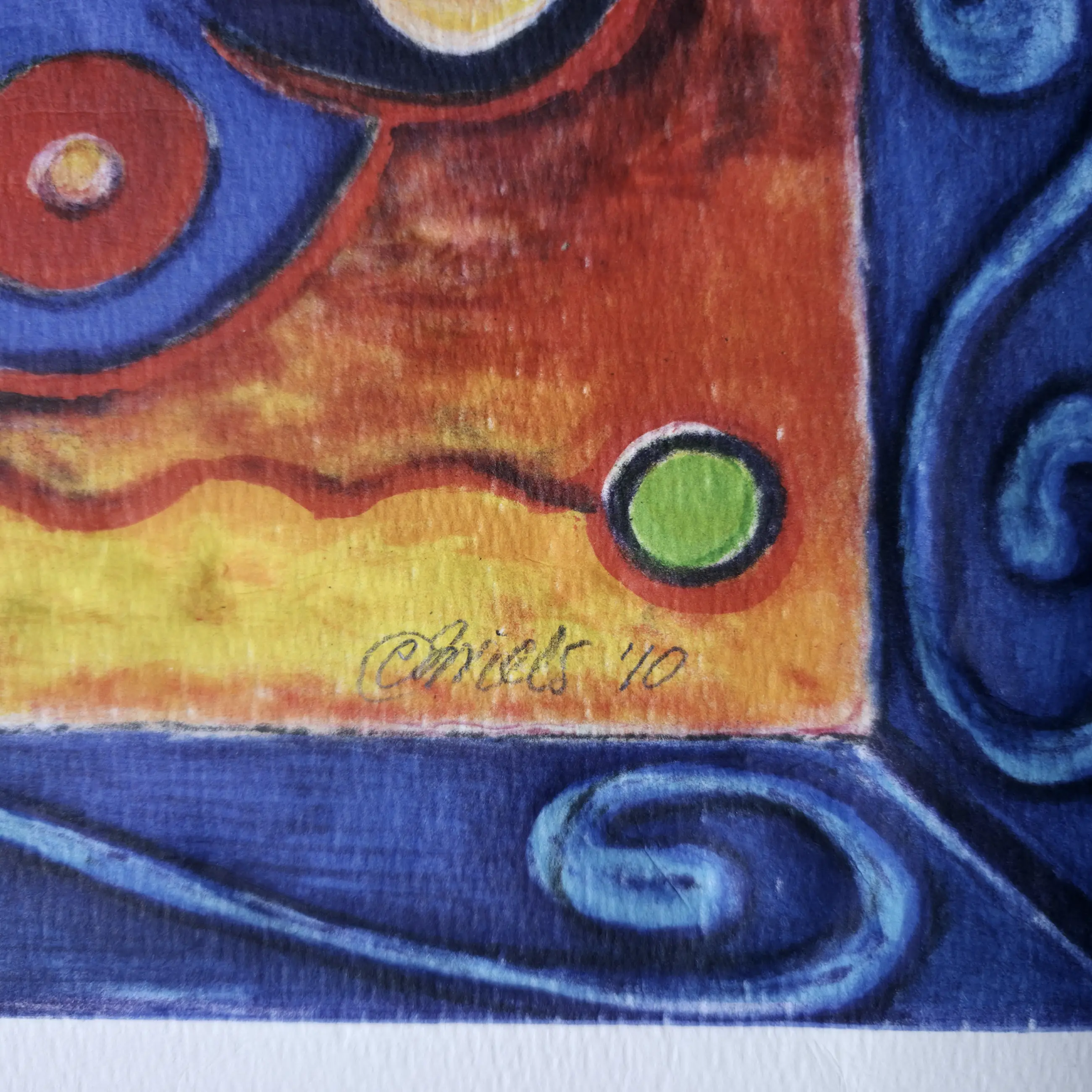 Briels' ausdrucksstarker Stil kommt in dieser Technik besonders kraftvoll zum Ausdruck. Ein markantes und einzigartiges Werk, das sowohl Sammler als auch Kunstliebhaber begeistern wird.