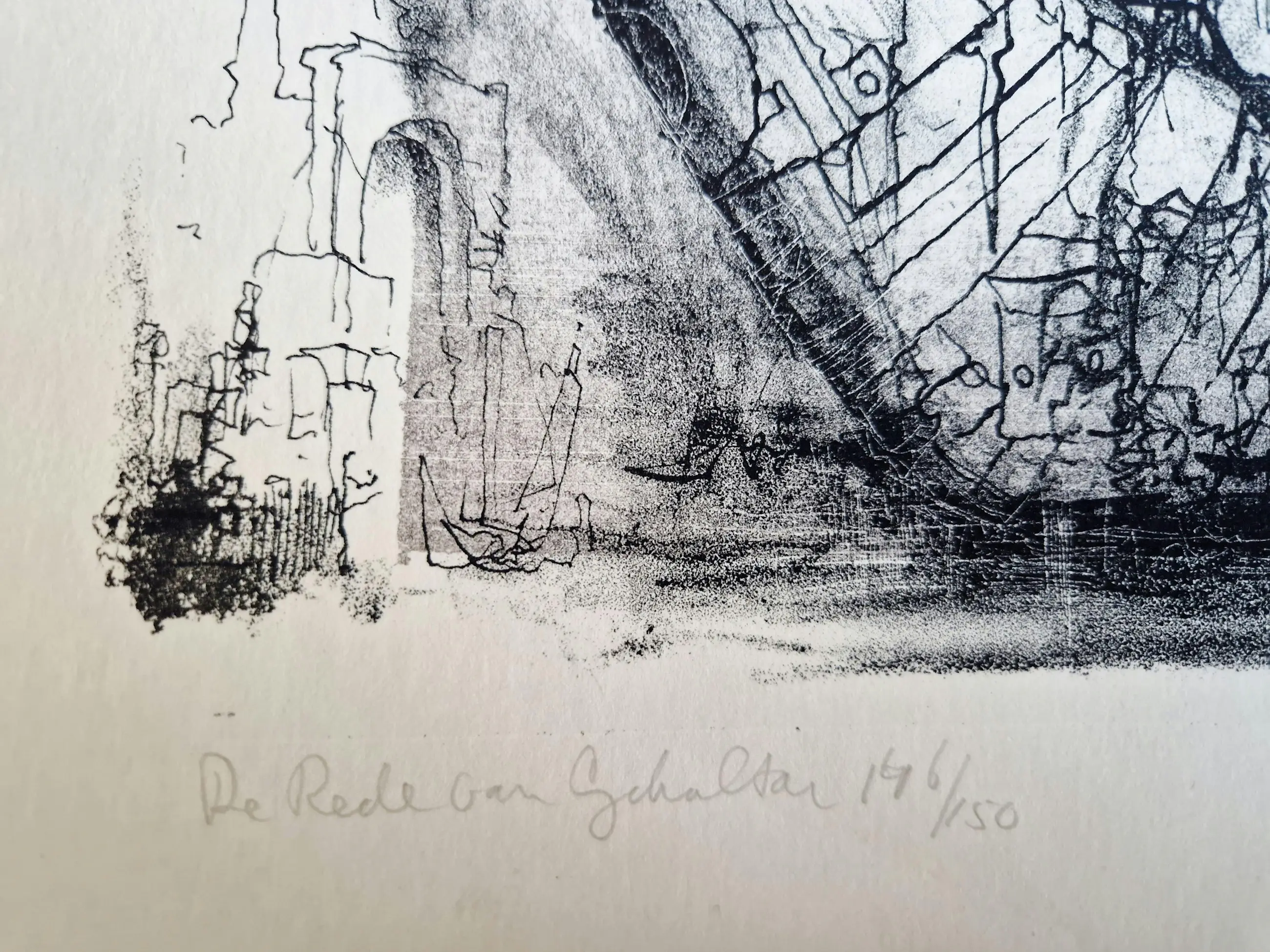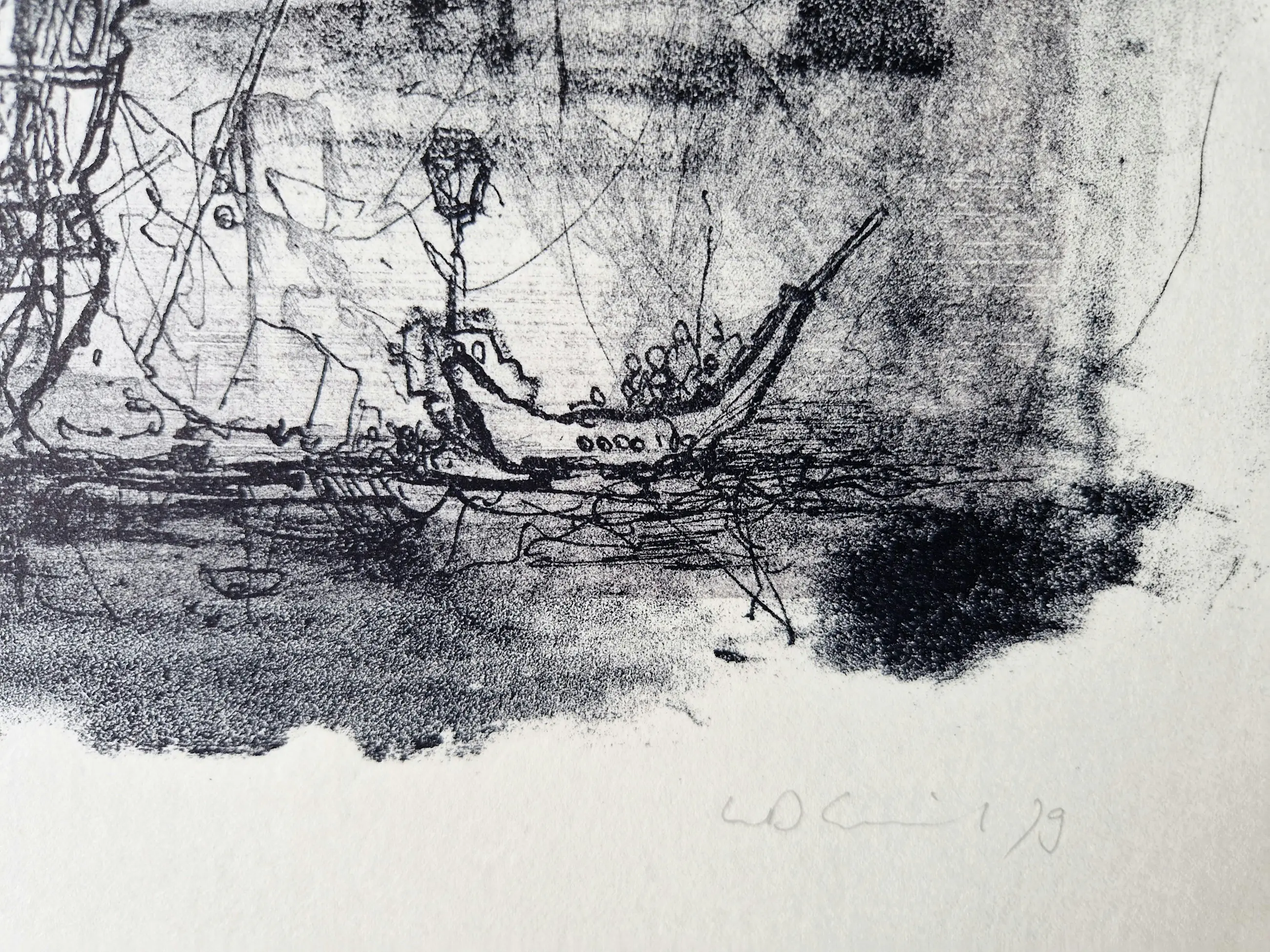Dirkje Kuik - Wunderschön detaillierte Litho "Die Reede von Gibraltar" 1979 - limitierte Auflage