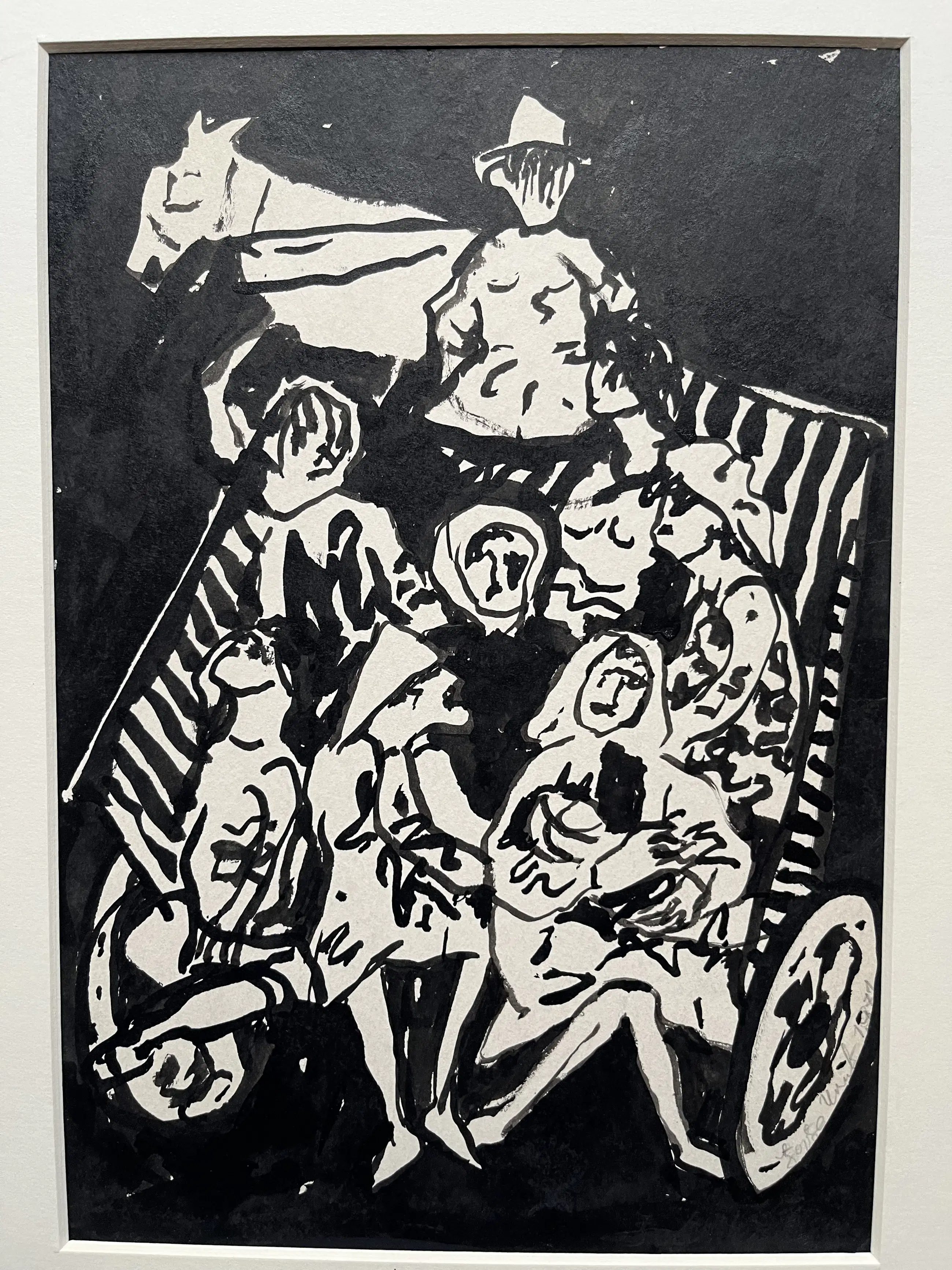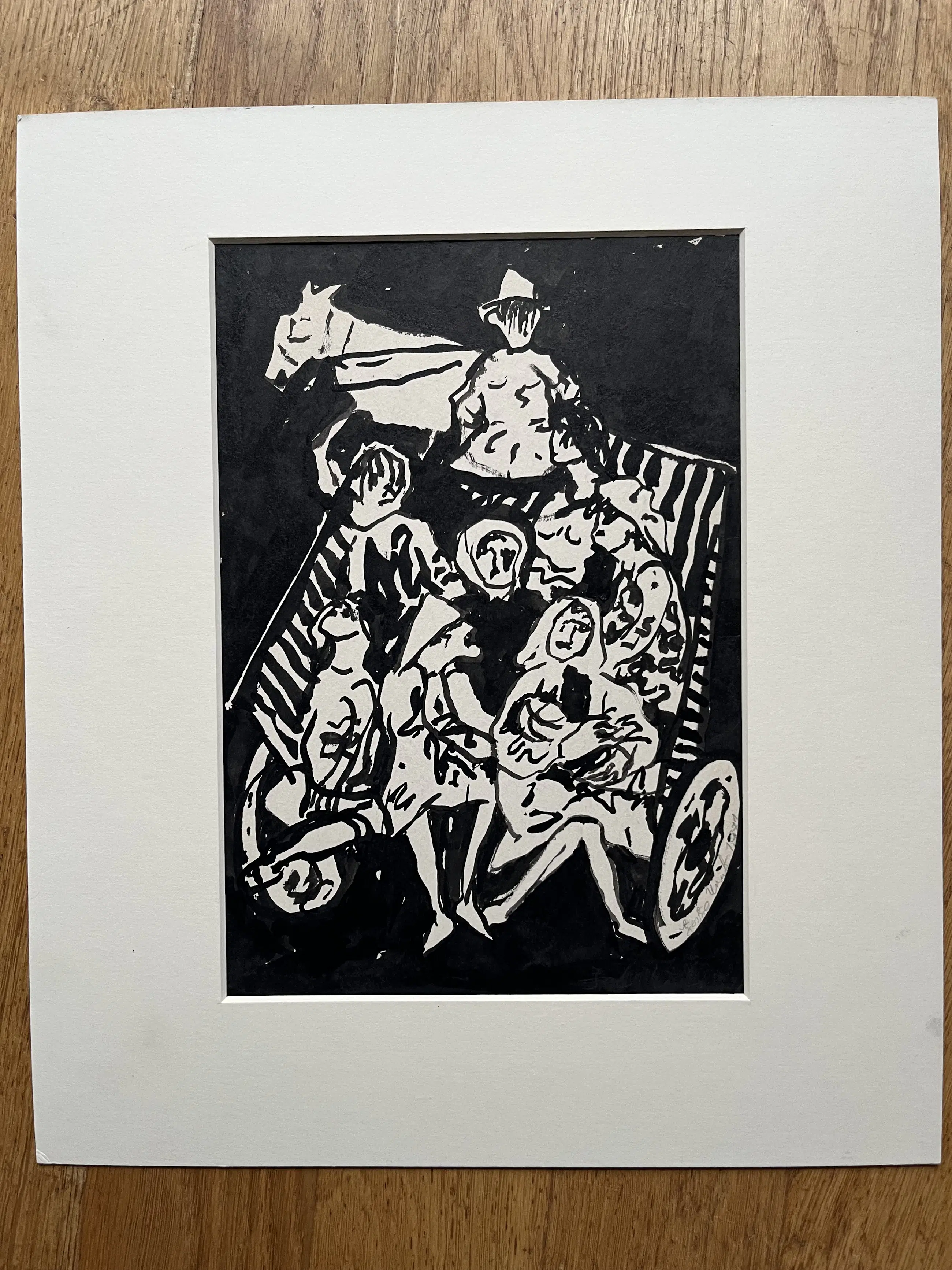 Tusche auf Papier von 1971, in ein Passepartout geklebt. Zeichnungsgröße 28,5 x 20 cm. Mit Passepartout 40 x 35 cm.