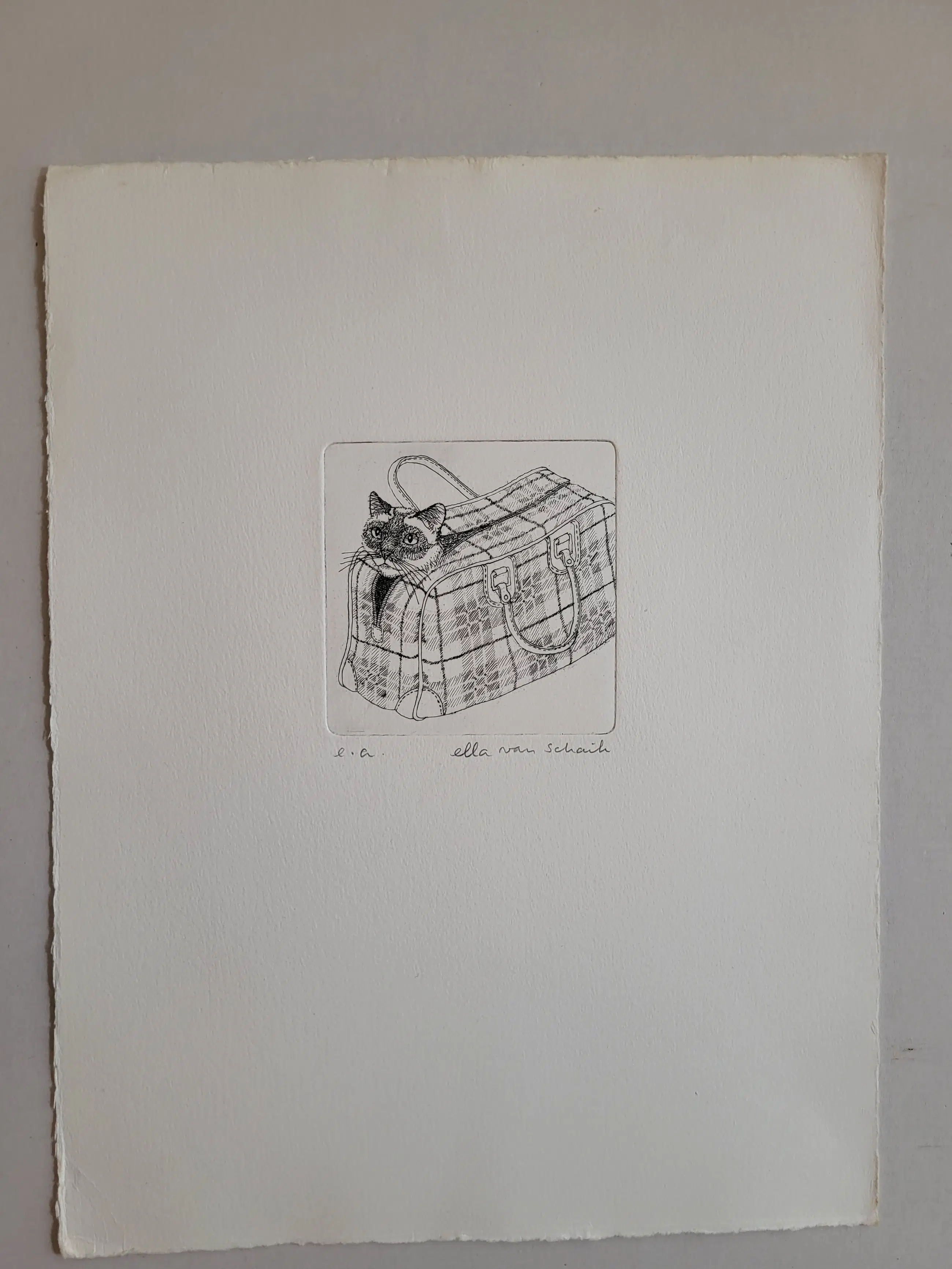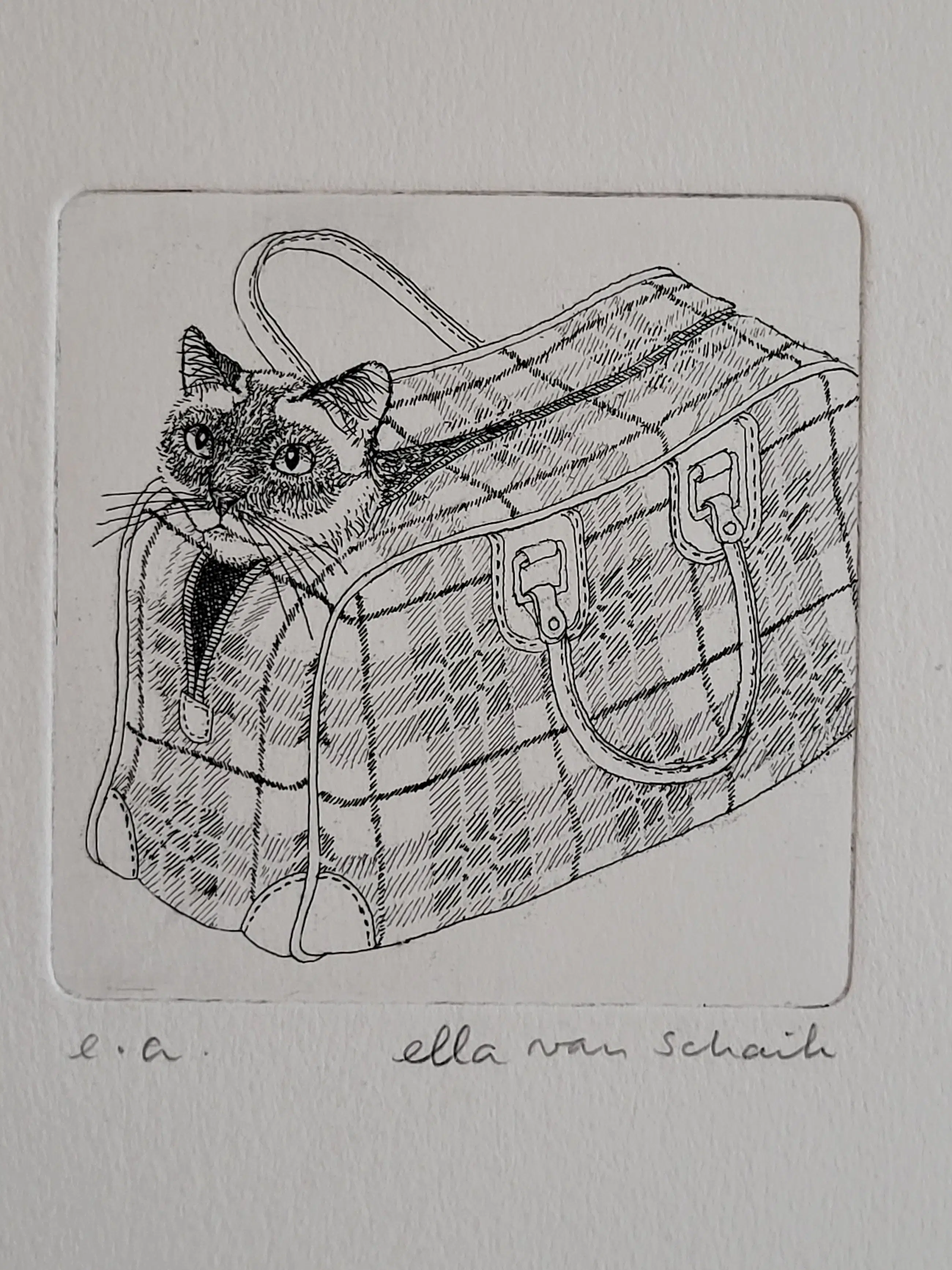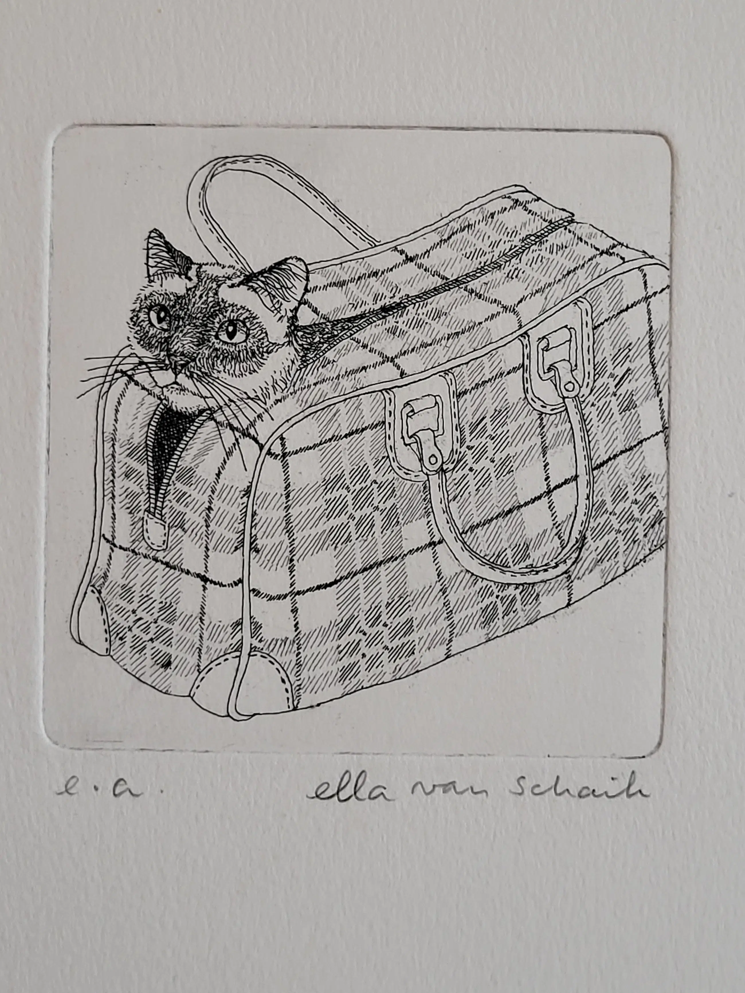 Ella van Schaik - handsignierte Radierung | „Der Kater im Sack“