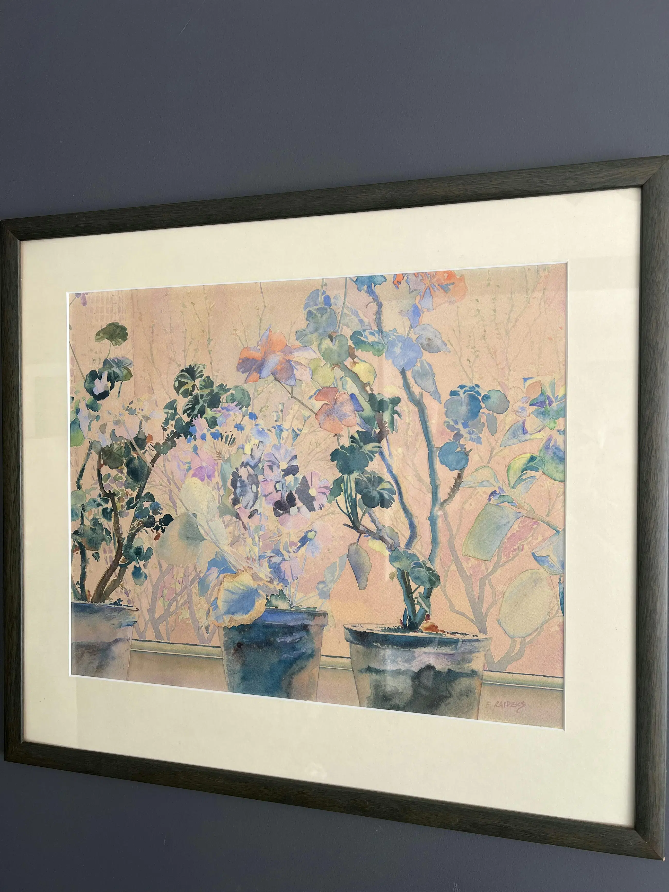 Wunderschönes Aquarell des friesischen Künstlers Evert Caspers. Die Farben sind in Wirklichkeit viel schöner als auf den Fotos. In perfektem Zustand. Fertig zum Aufhängen. Unten rechts vollständig signiert. Ansicht von innen nach außen. Atemberaubende Arbeit!