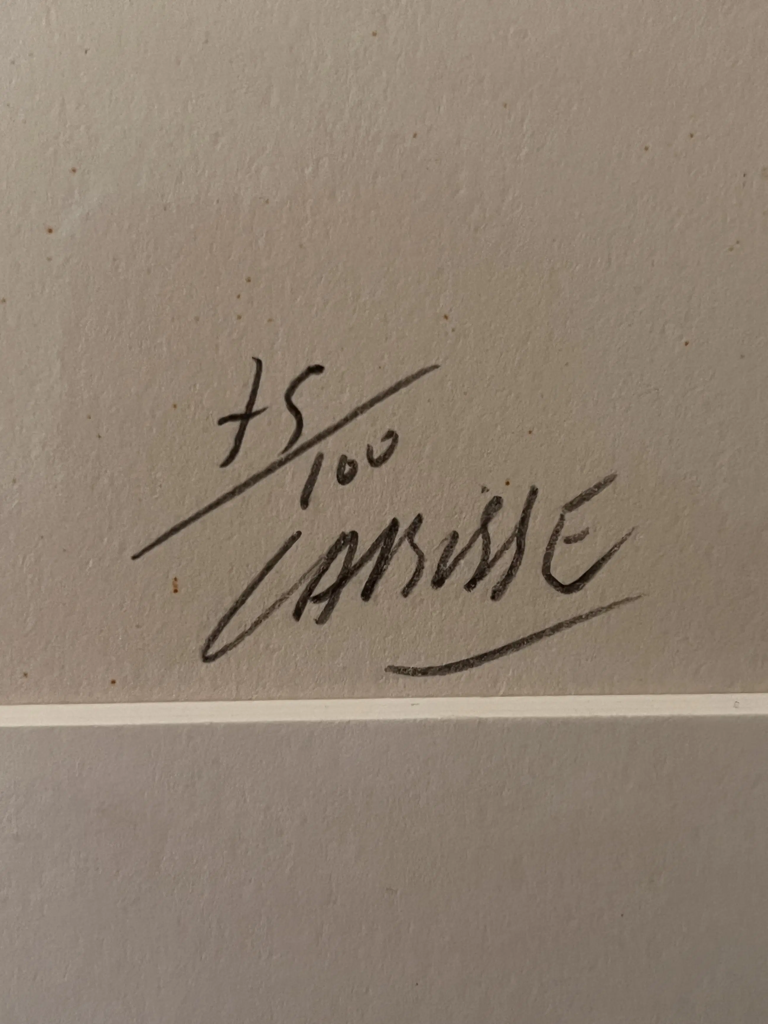 In dieser Serie stellt Labisse die Mystik, Erotik und Symbolik von Baudelaires Gedichten mit seinen charakteristischen Frauenfiguren und seiner traumhaften Atmosphäre dar. Diese Lithografie ist mit Bleistift handsigniert und nummeriert (Auflage: 100 Exemplare).