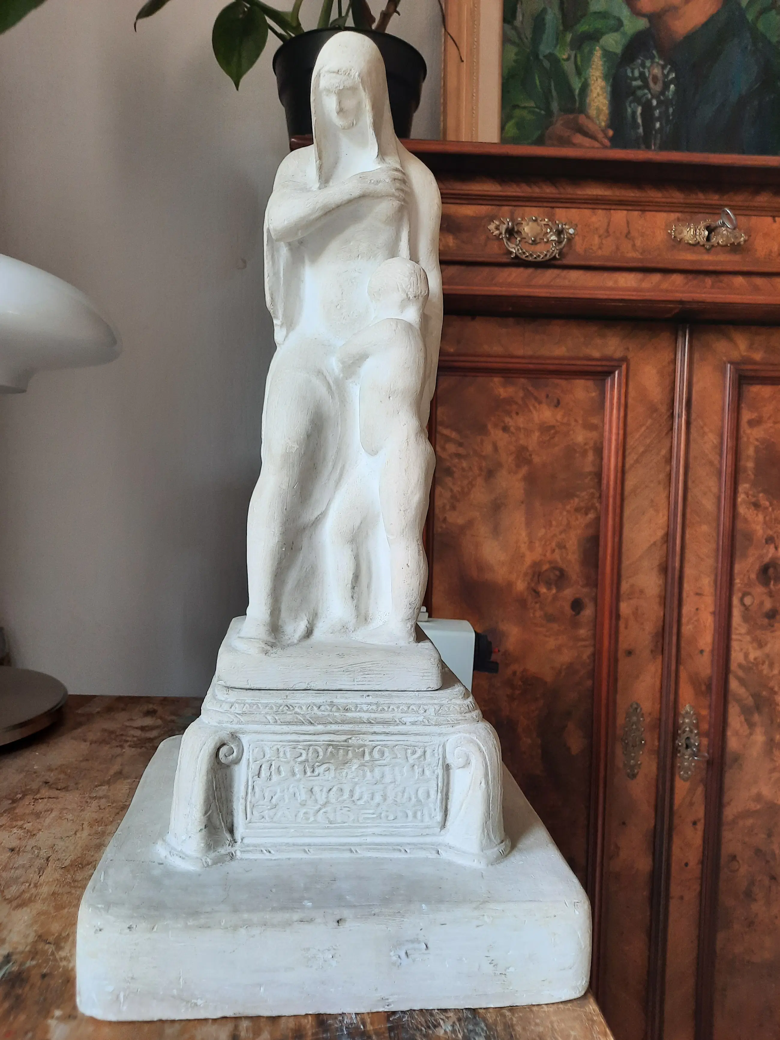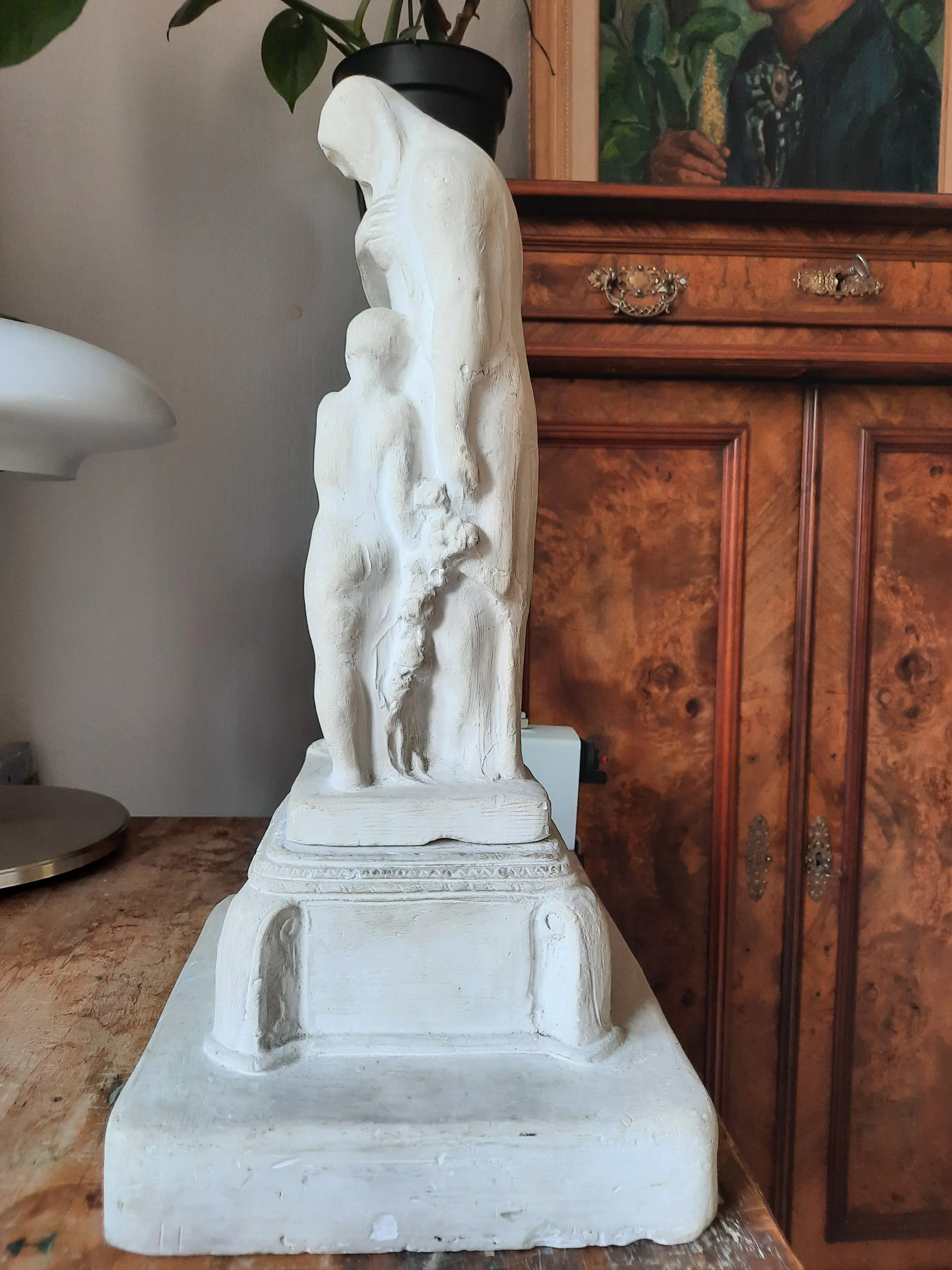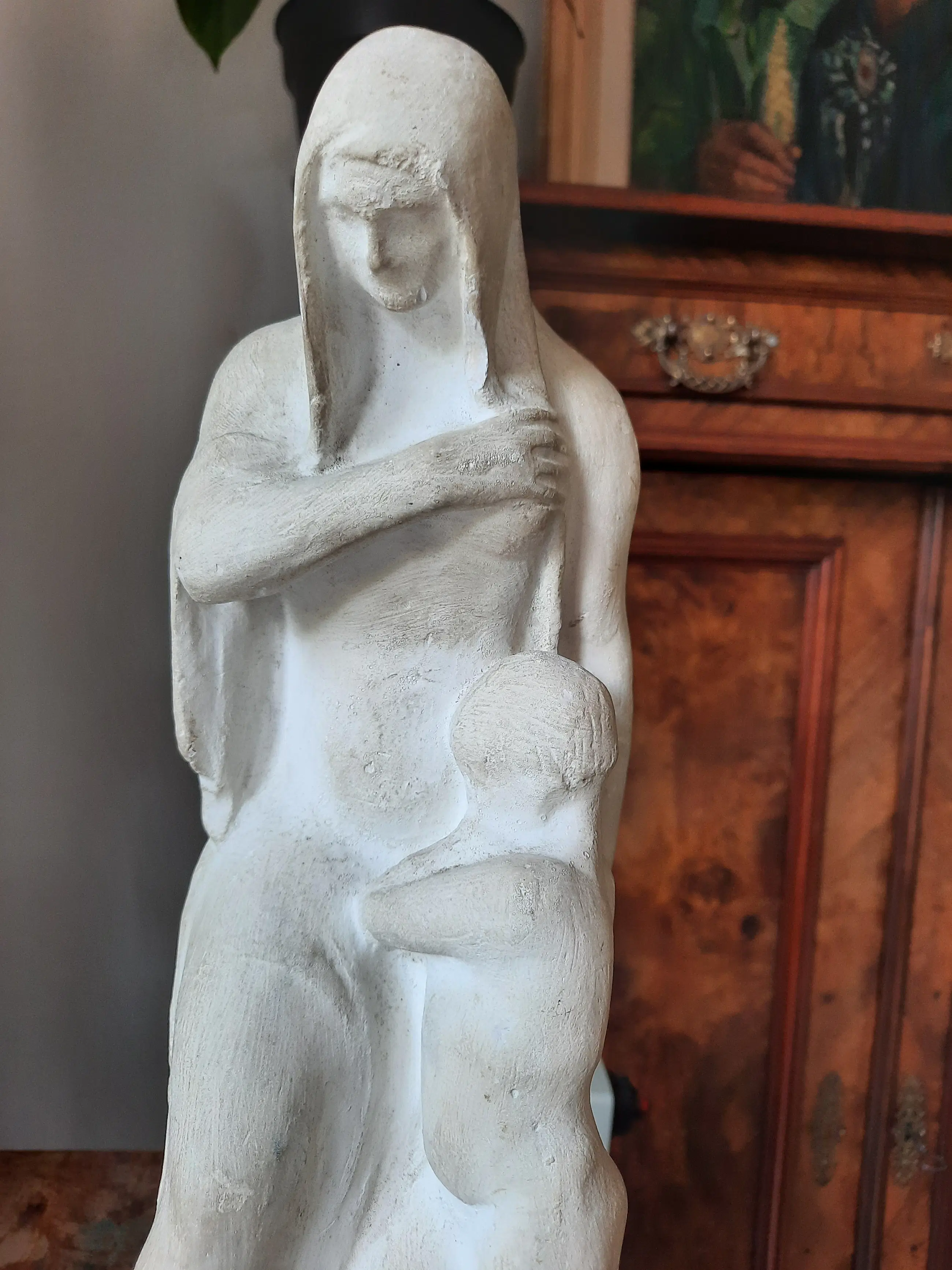 Die Gipsstatue ist in gutem Zustand mit Patina. Kleiner Absplitterung vom Schleier der Dame. | |||||||||||
