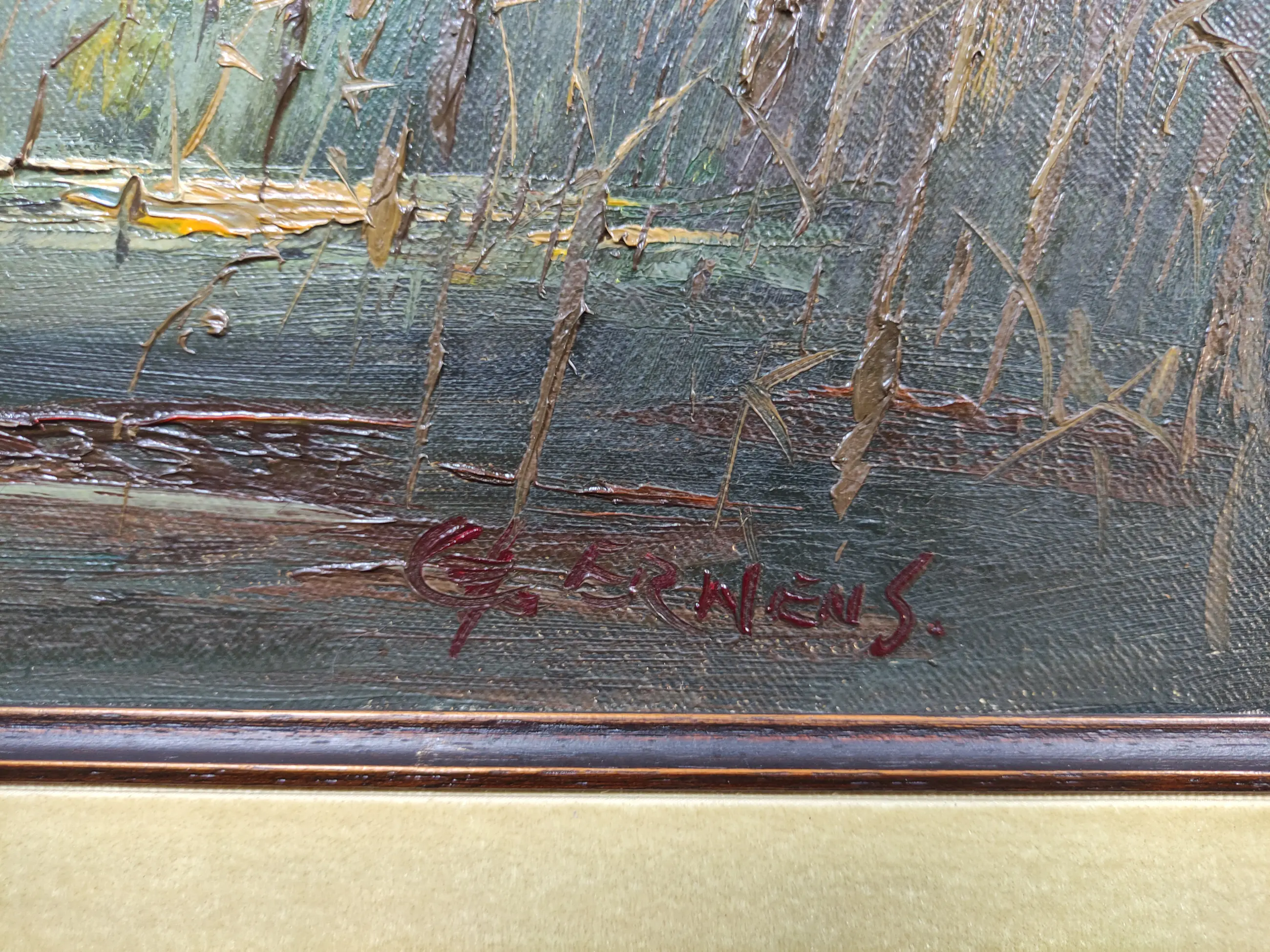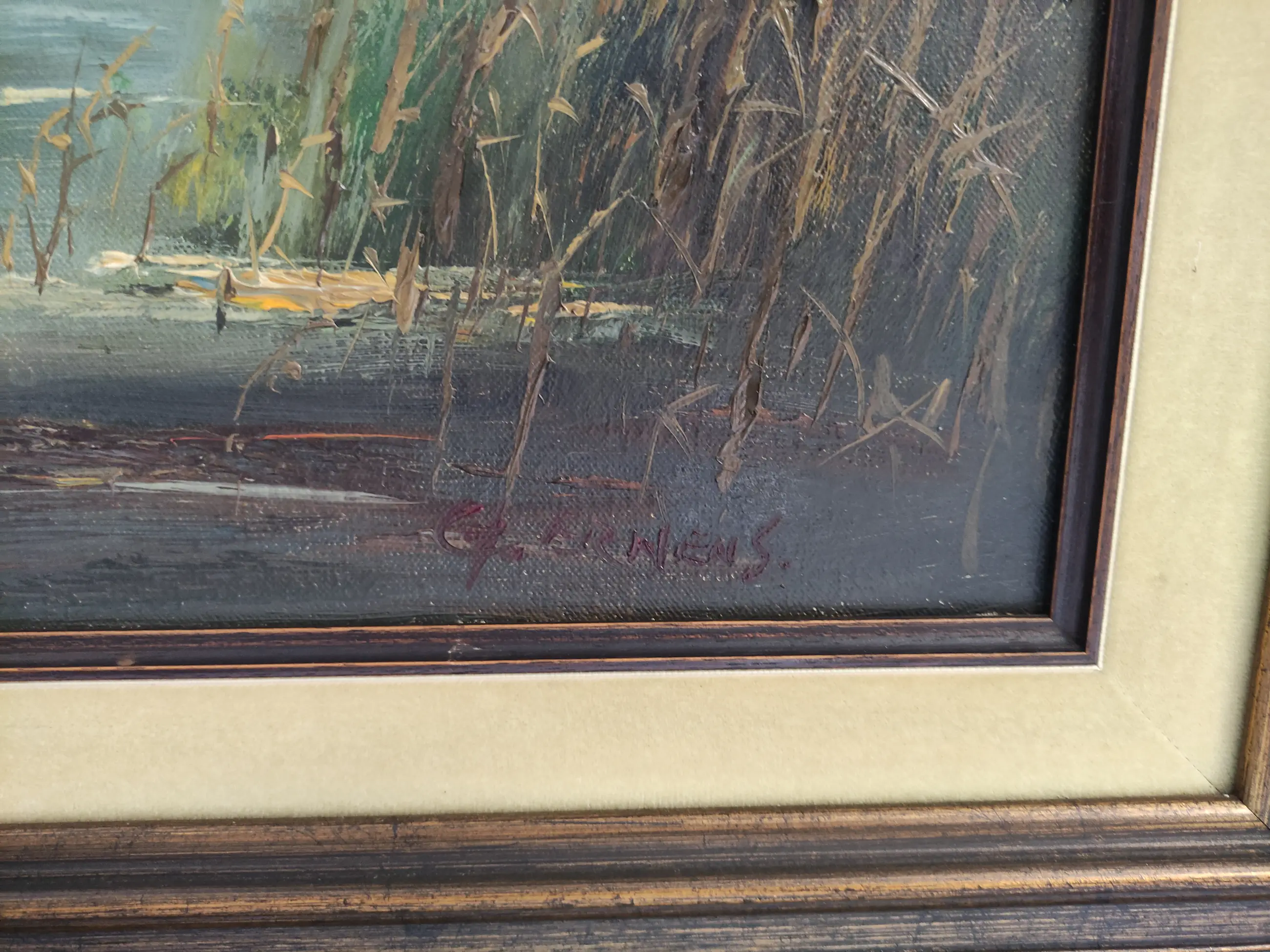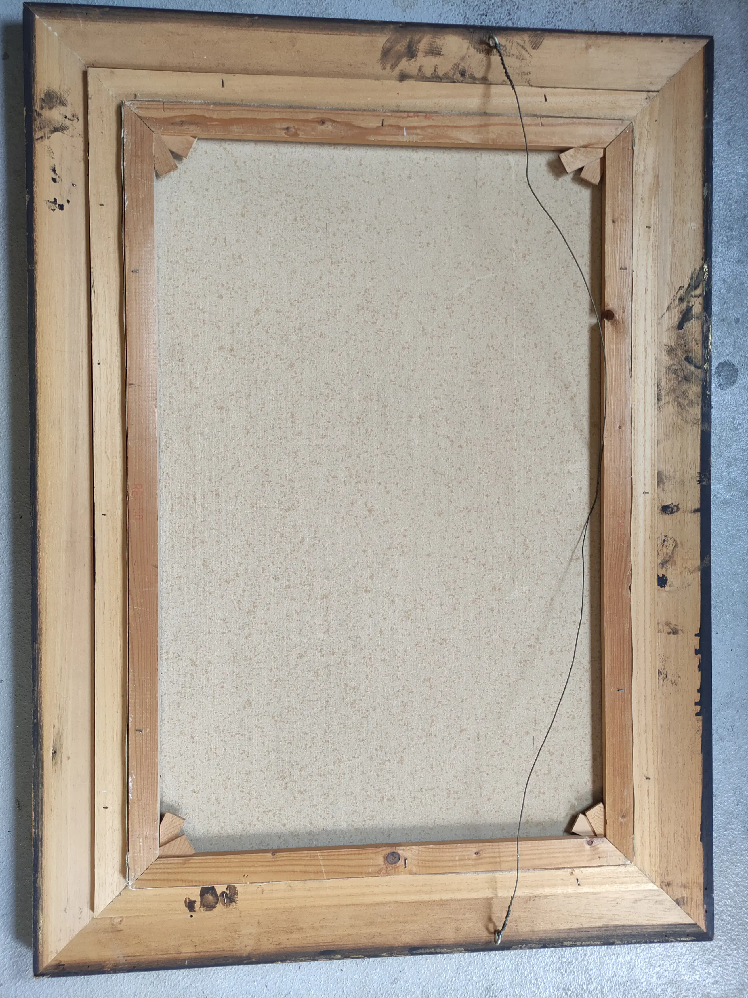 Leinwand ist unbeschädigt, Rahmen weist einige kleinere Beschädigungen auf