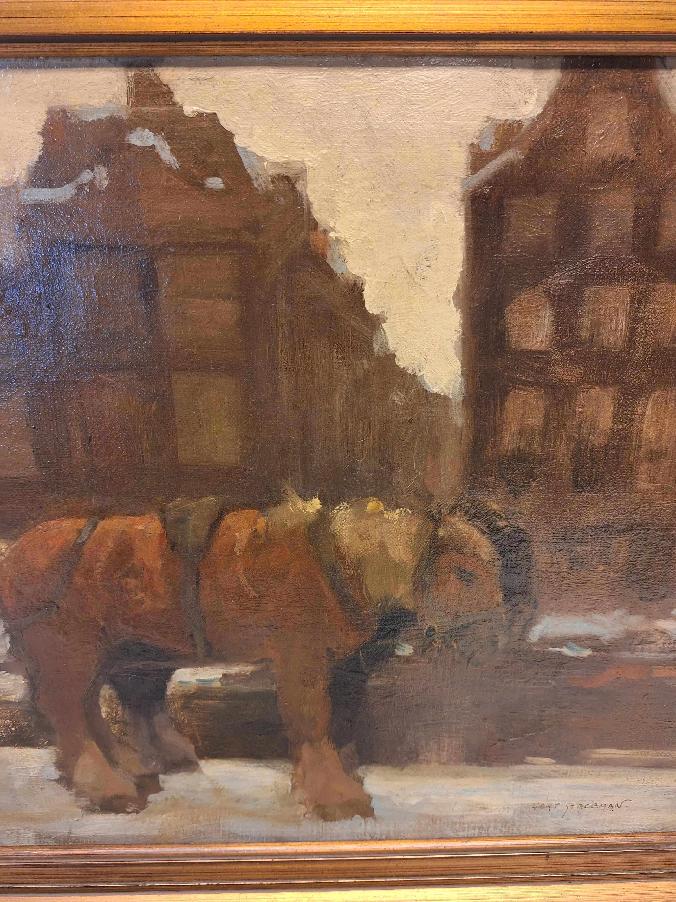 Schöne Arbeit in gutem Zustand. Wahrscheinlich eine Stadtansicht von Arnheim oder Umgebung.