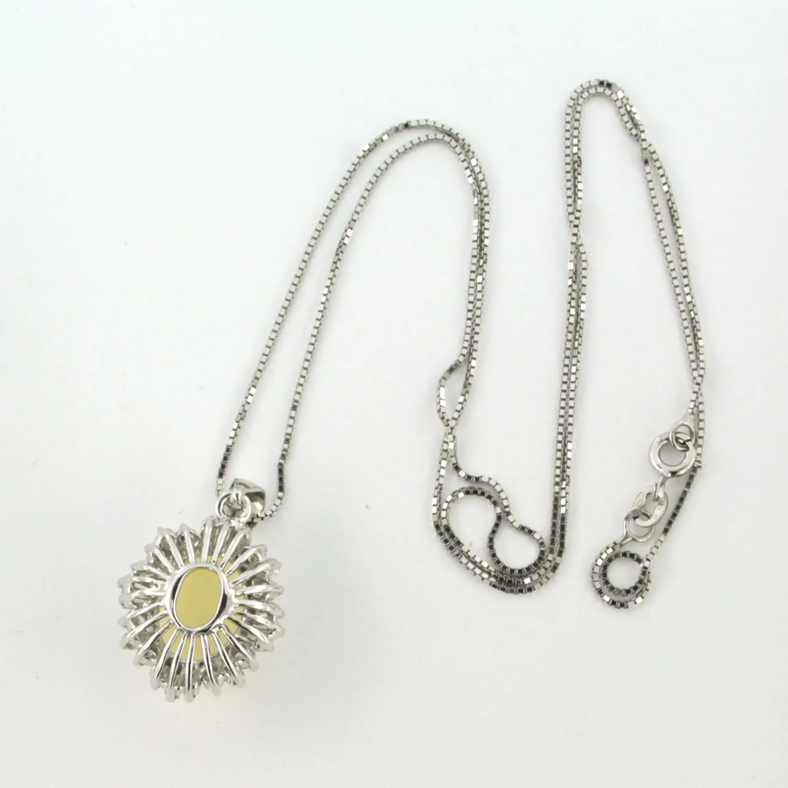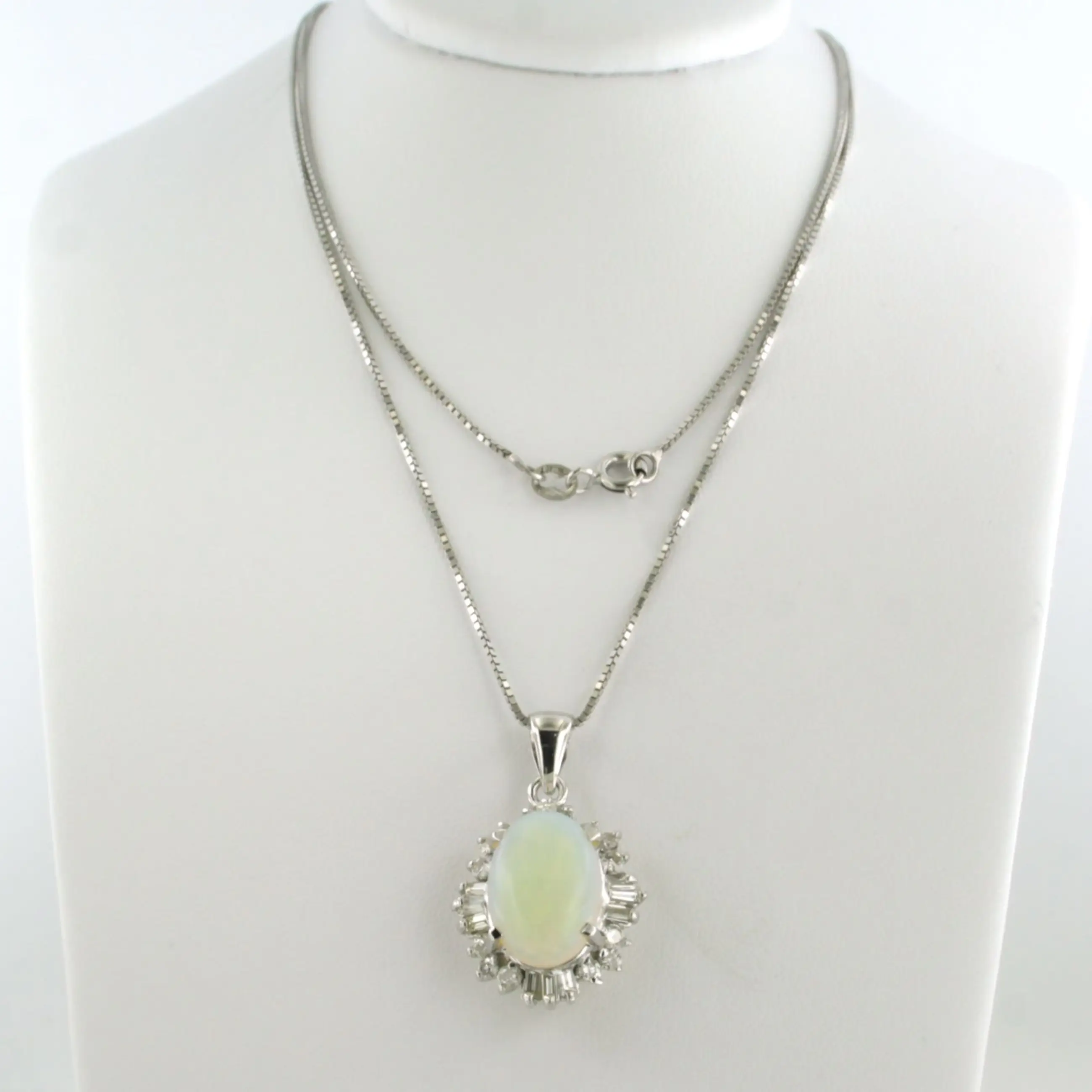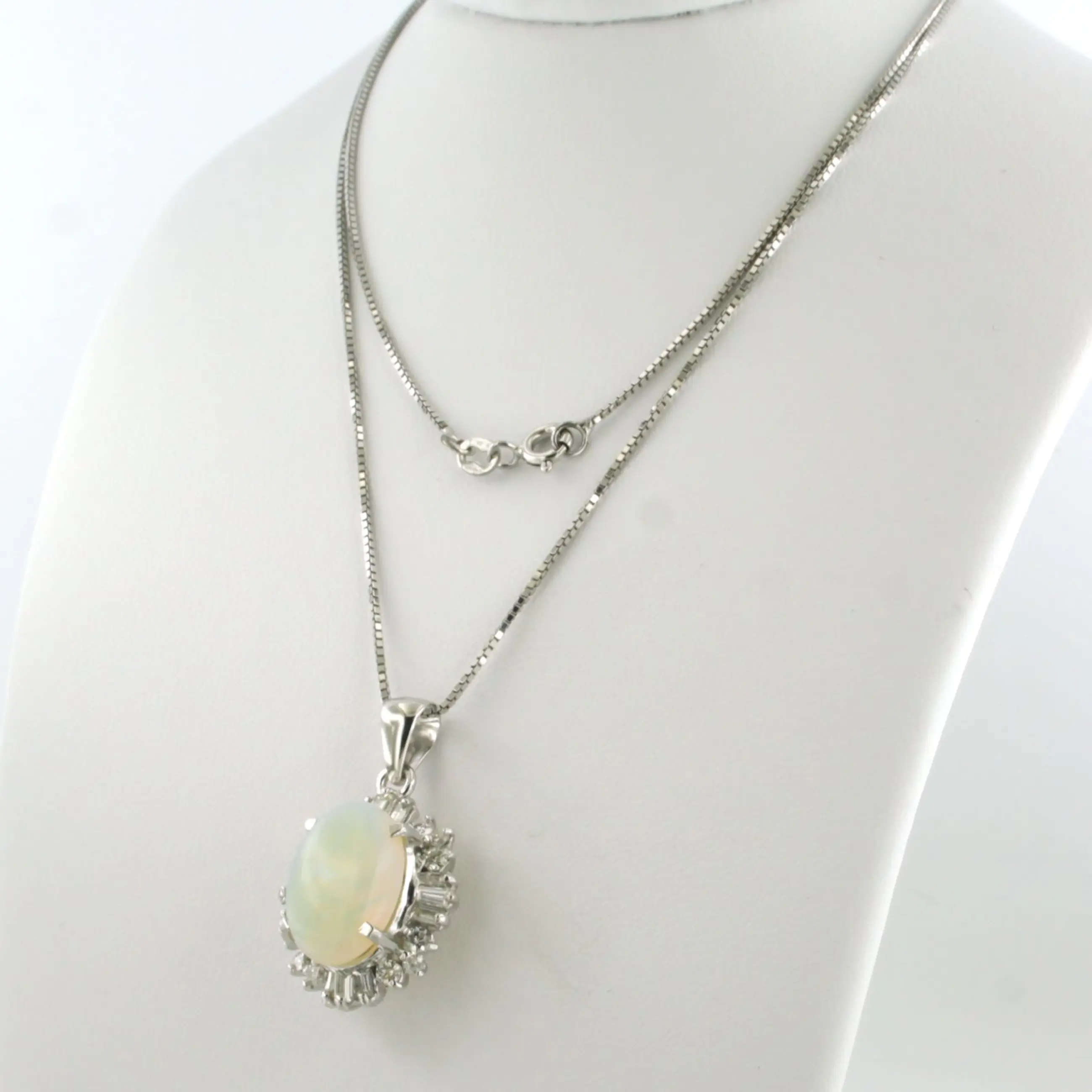 Halskette aus 18 Karat Weißgold mit Anhänger, besetzt mit Opal und Diamant im Brillant- und Kegelschliff, 0,80 ct – F/G – VS/SI – 50 cm lang