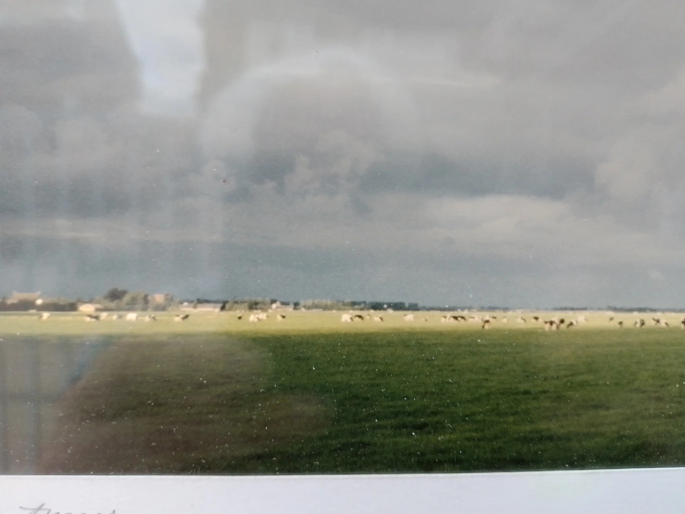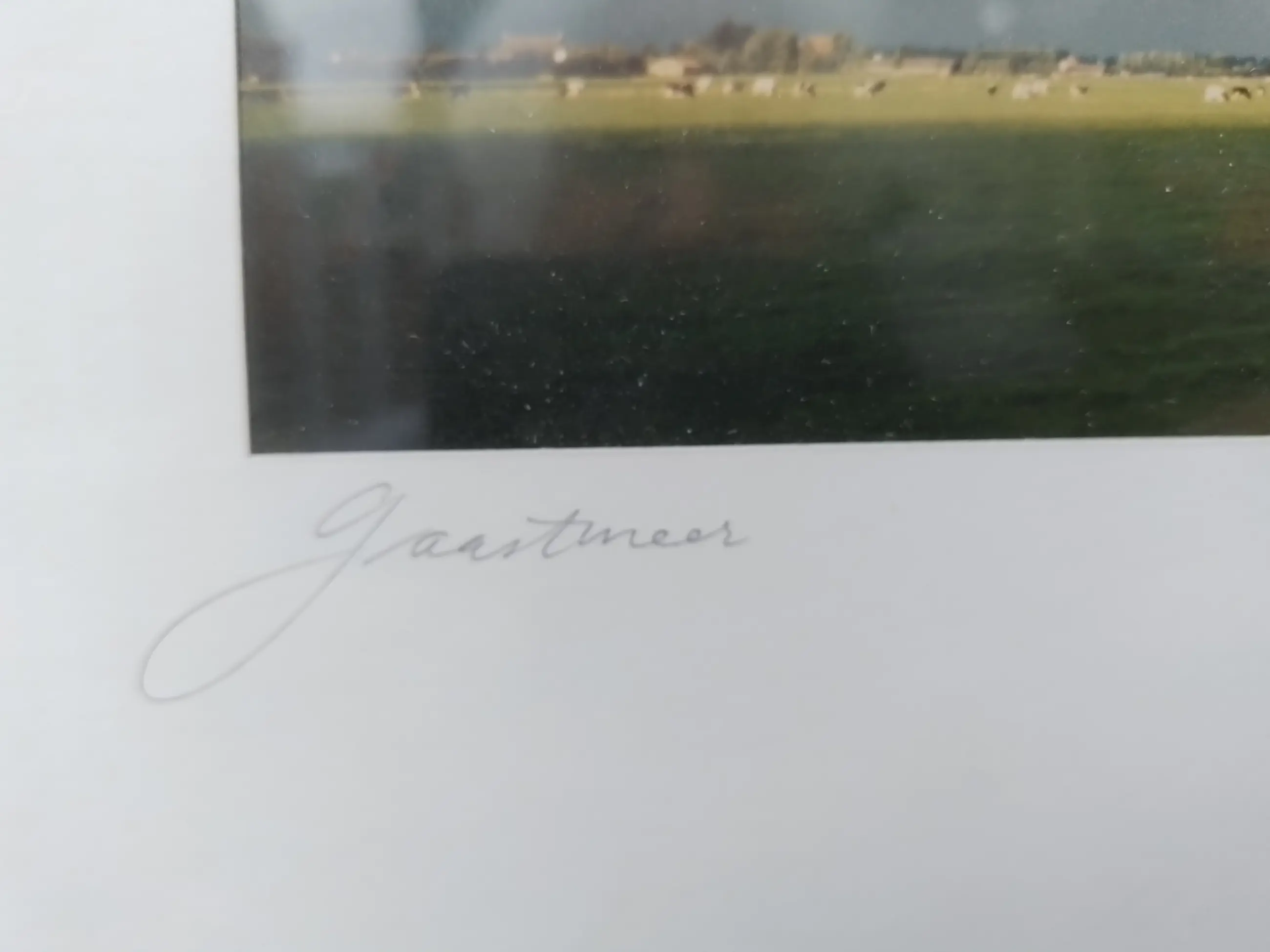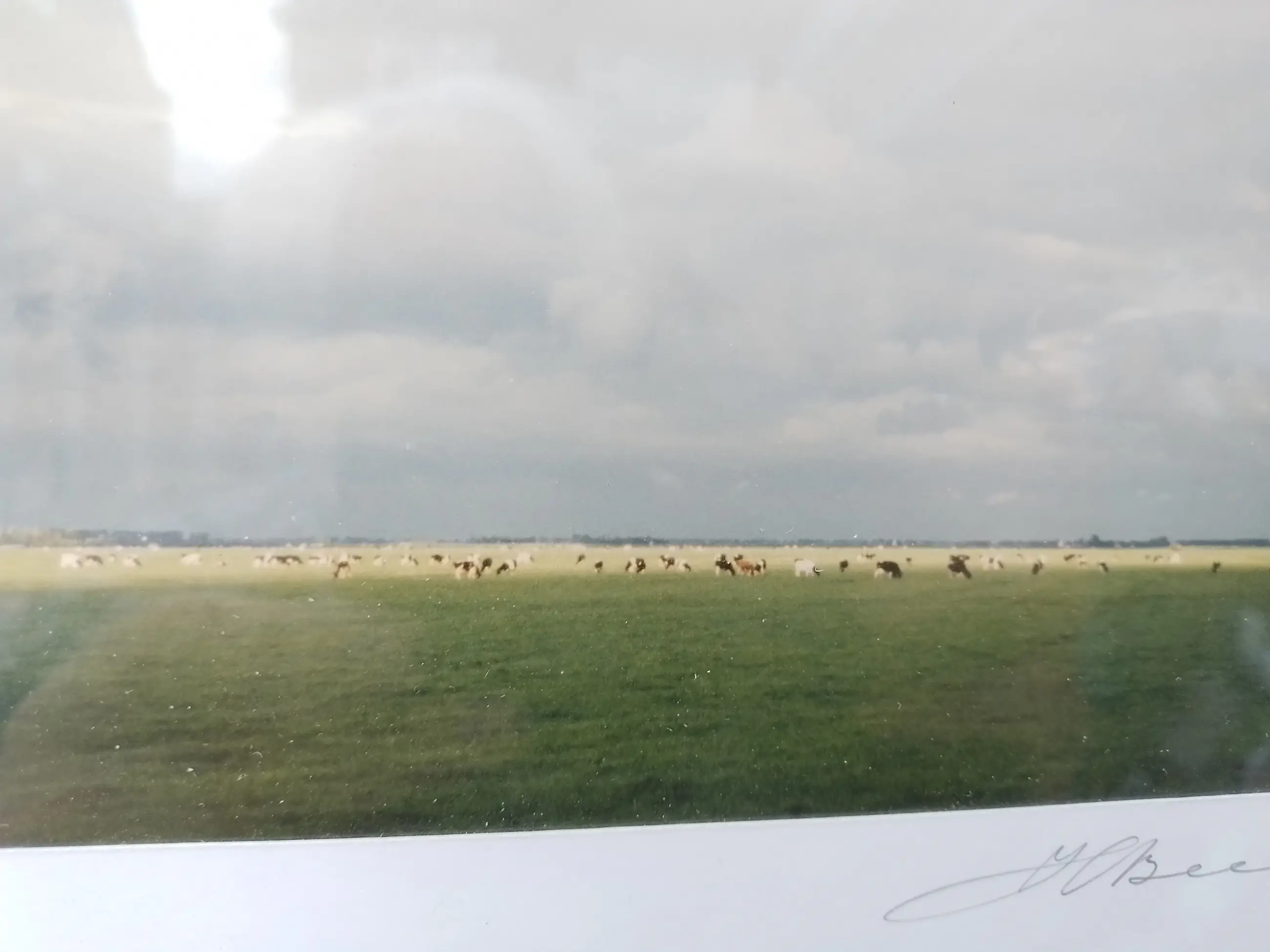Wunderschönes Foto eines berühmten friesischen Künstlers. Kühe auf der Wiese unter einem wunderschönen bewölkten Himmel. Lo Gaastmeer Ro unterzeichnete H. beeeuwkes