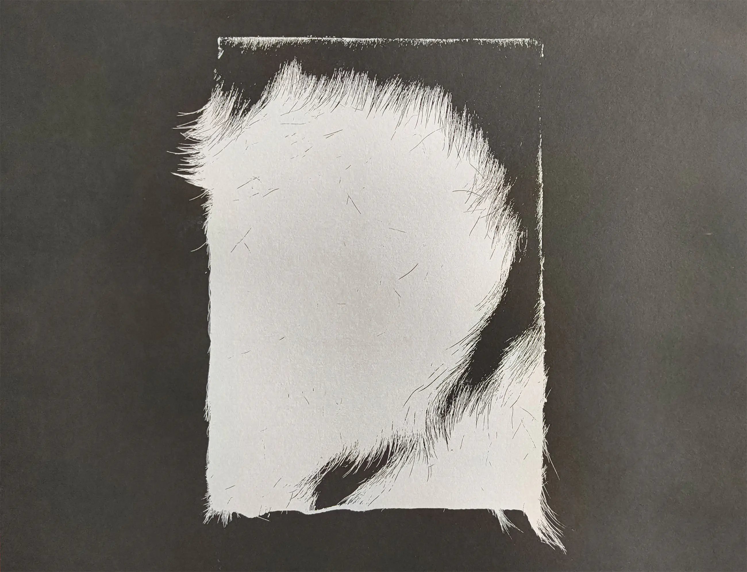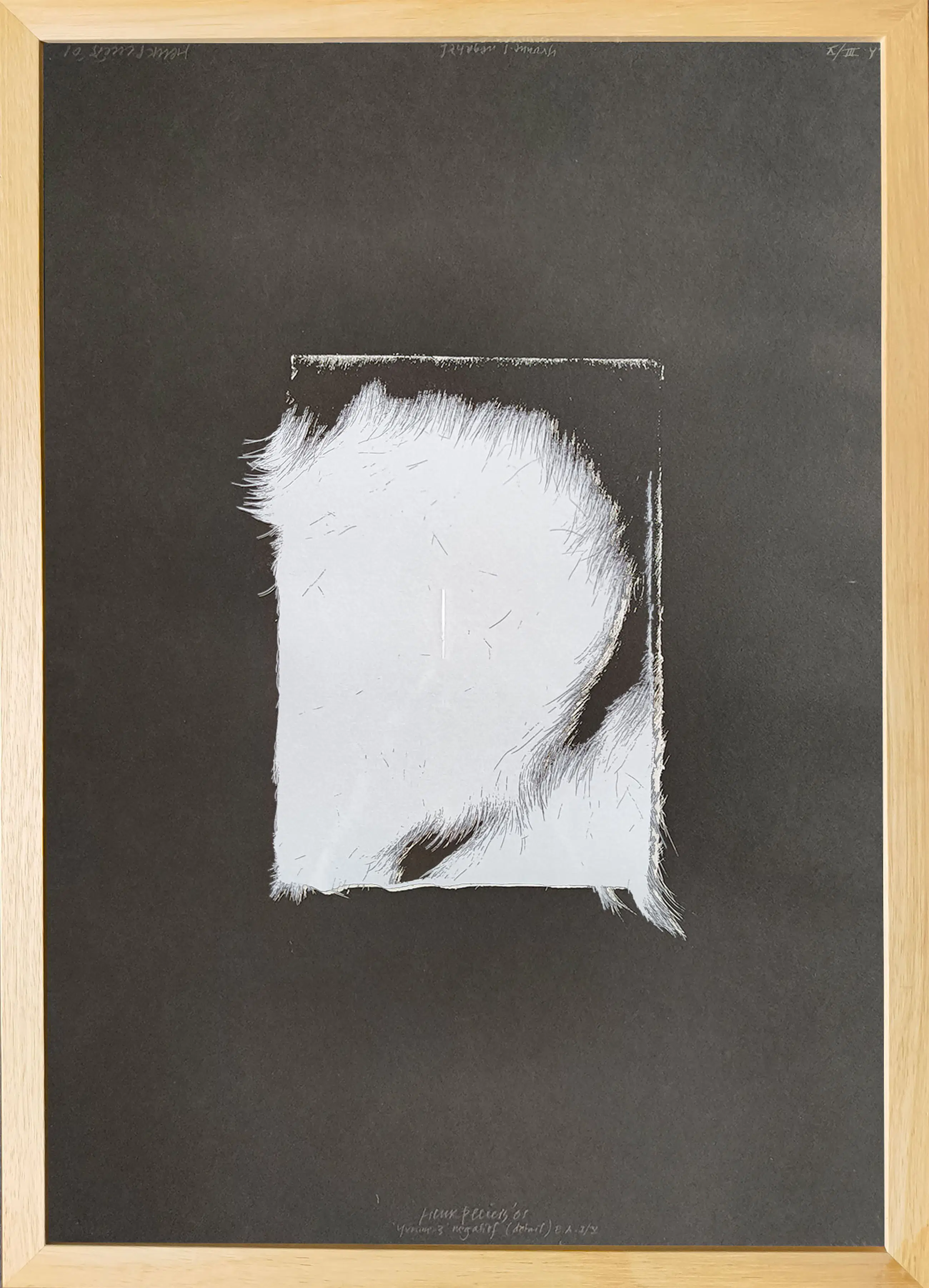 Ausgabe: EA I/V Abgebildet ist ein Ausschnitt aus dem Werk „yvonne-3“, einem Kuhfell von Henk Peeters im Maßstab 1:1. Der Künstler hat es unten in der Mitte handsigniert. Die Echtheit dieses Werkes ist uneingeschränkt garantiert; es stammt aus dem Nachlass der Familie Peeters.