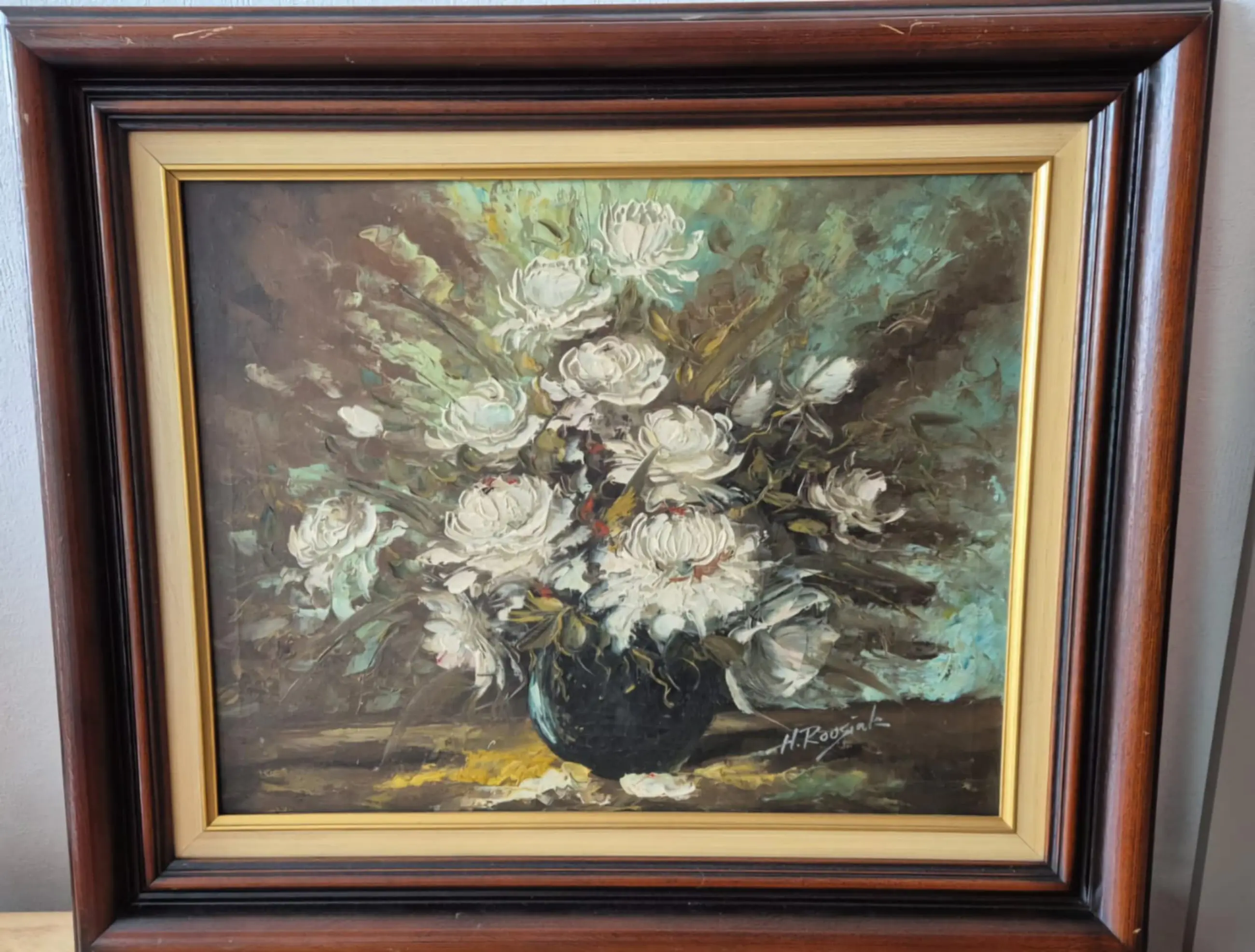 Der Rahmen ist leicht beschädigt, das Gemälde ist jedoch intakt.