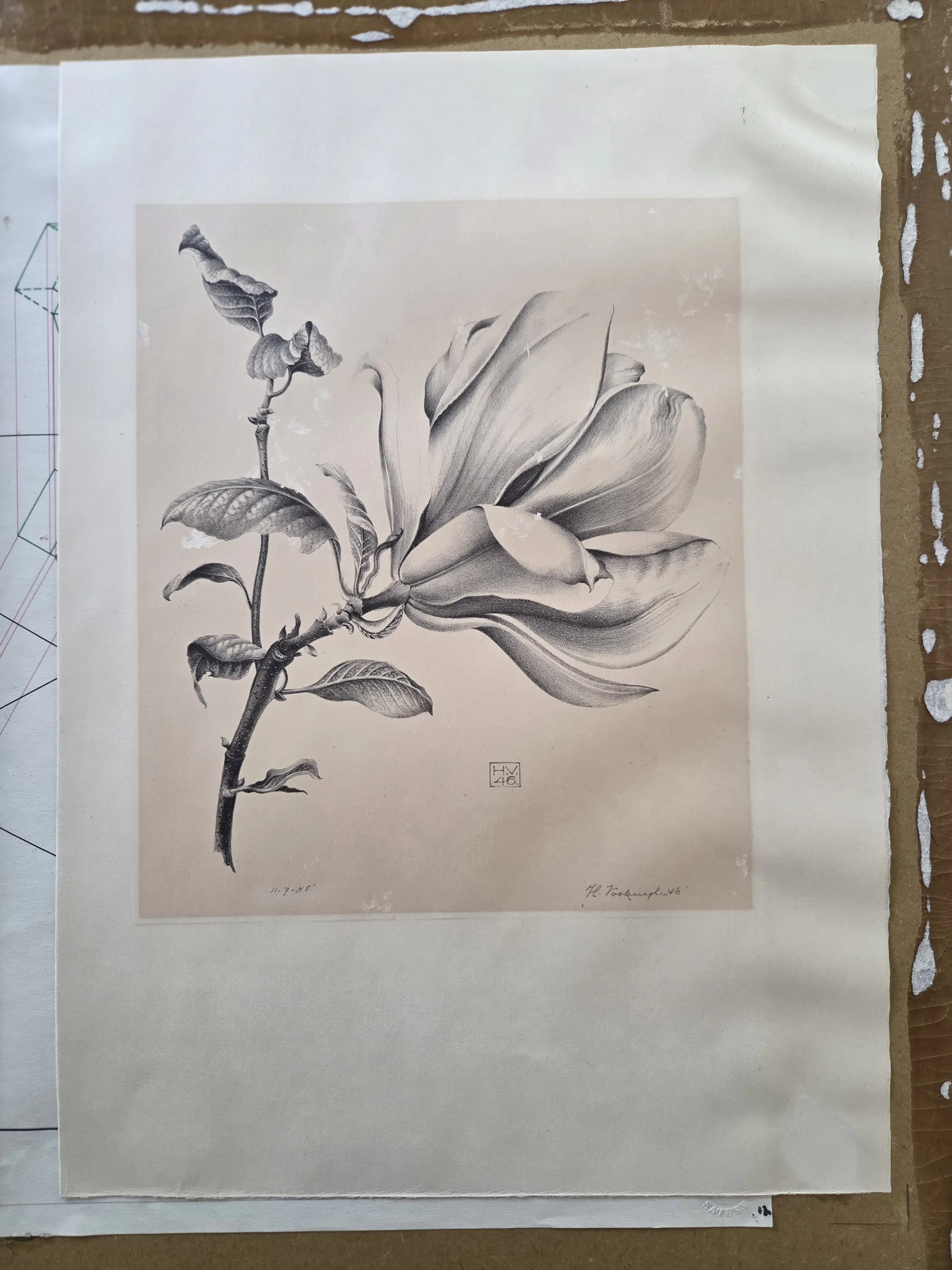 Gute Arbeit. Auf Karton geklebt. Mit Bleistift signiert. Insgesamt in recht gutem Zustand. Kleine Flecken. Nicht wirklich störend. Bitte sehen Sie sich die Fotos an, um die Qualität selbst zu beurteilen.