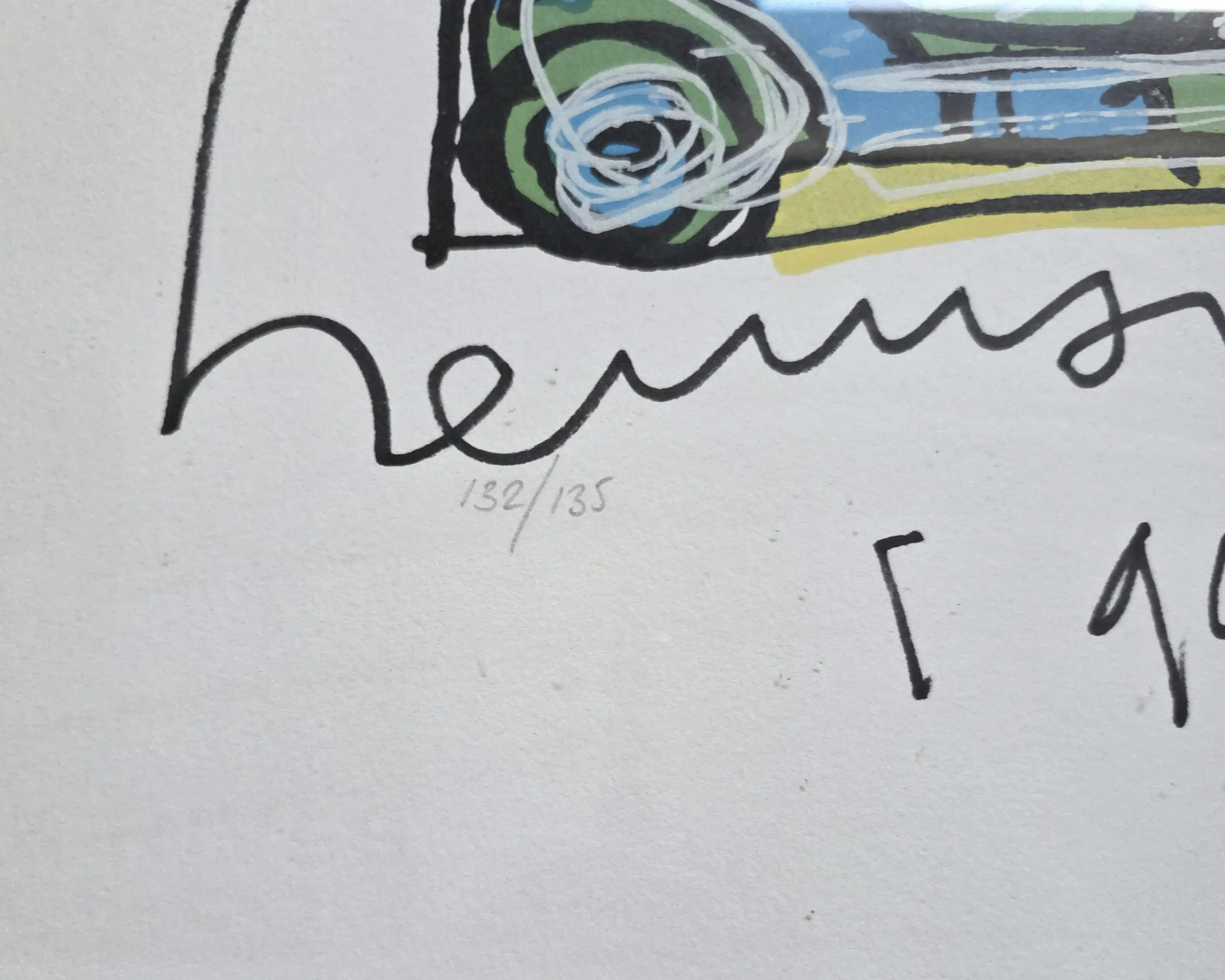 Das Werk selbst ist in sehr gutem Zustand. Der Rahmen ist nicht neu und weist einige Gebrauchsspuren auf. Etwas Staub auf dem Glas, aber nicht auf dem Werk selbst.