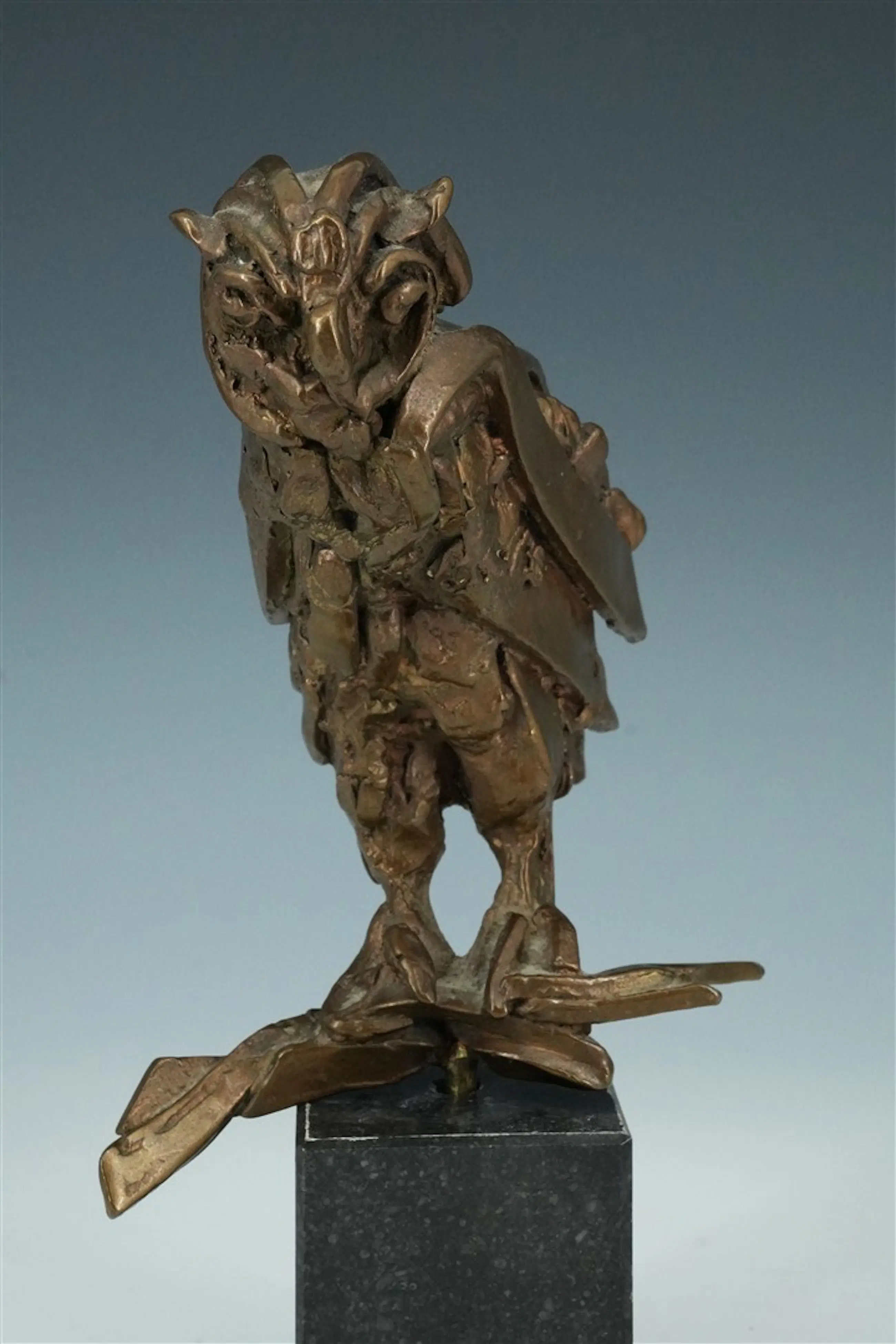 Patinierte Bronzeskulptur von Hetty Heyster, mit Bestätigung der Künstlerin, dass die Skulptur von ihr stammt. Es gibt diese Skulptur nur einmal, Sie bieten also auf ein Unikat! Titel: „Gefiederte junge Eule auf einem Ast“. Maße der Skulptur auf Hartgesteinsockel: H25cm x B5cm x T5cm. Das Werk ist von der Künstlerin monogrammiert. Die Echtheit des angebotenen Werkes wird vollumfänglich garantiert. Sie erhalten eine Kopie der E-Mail: