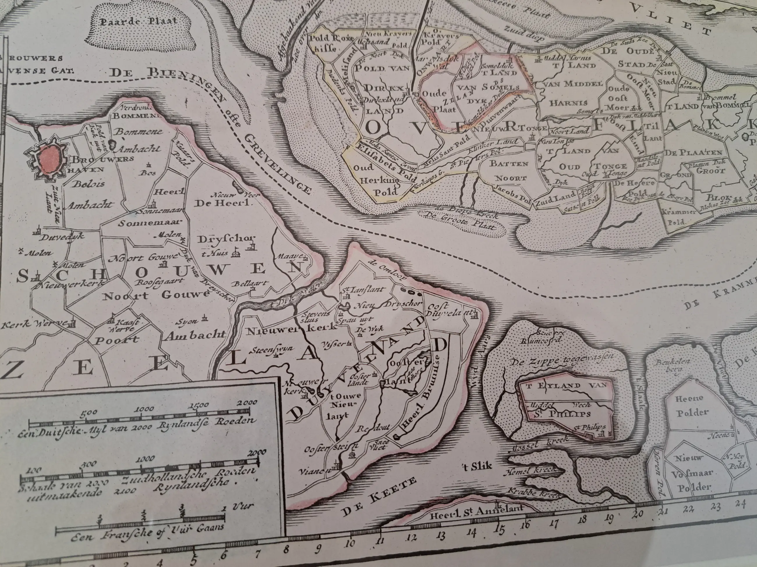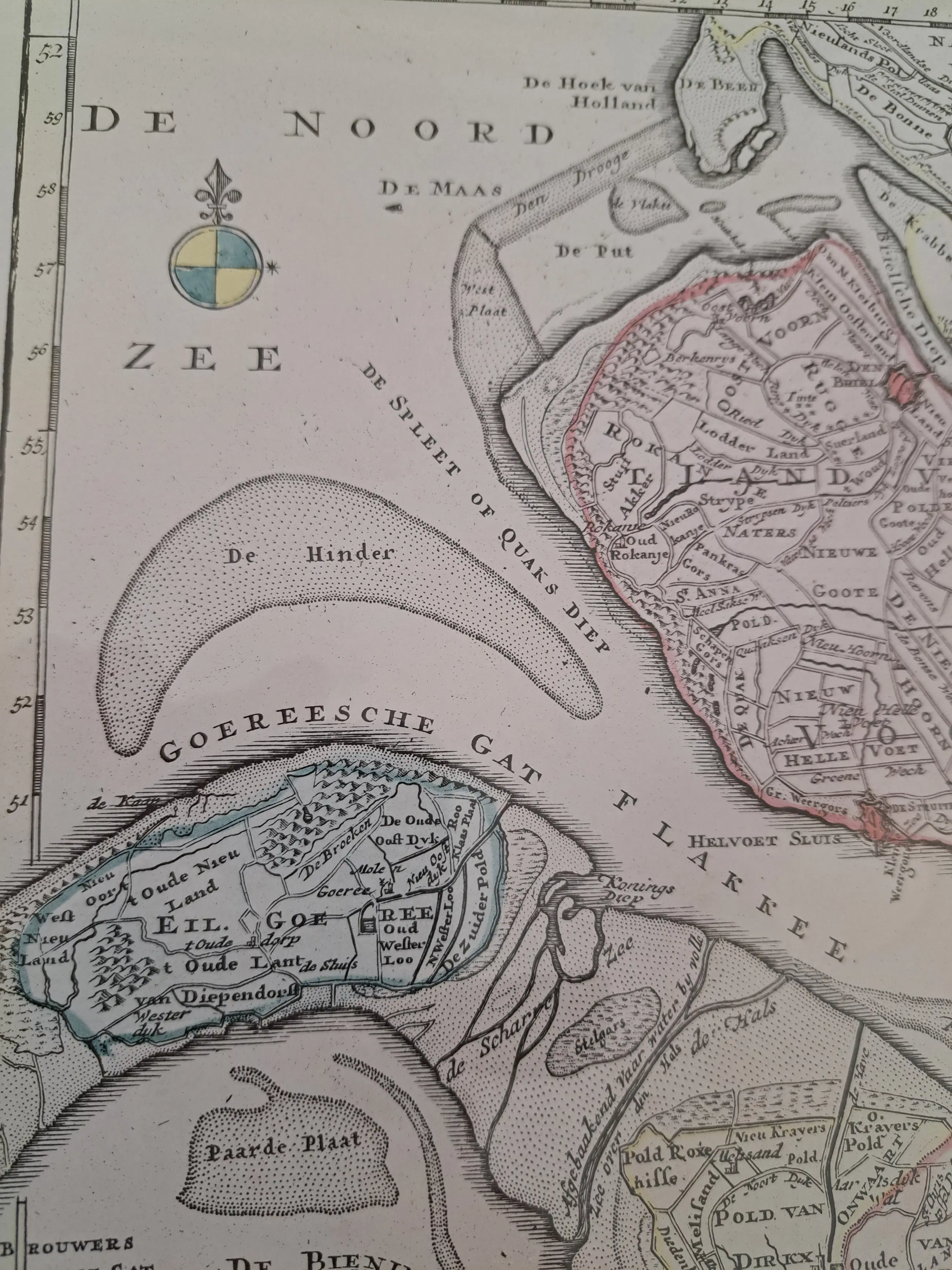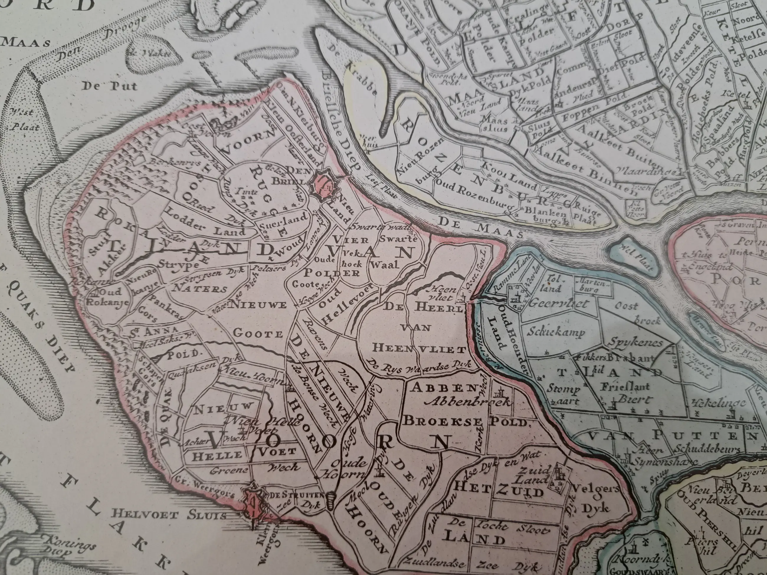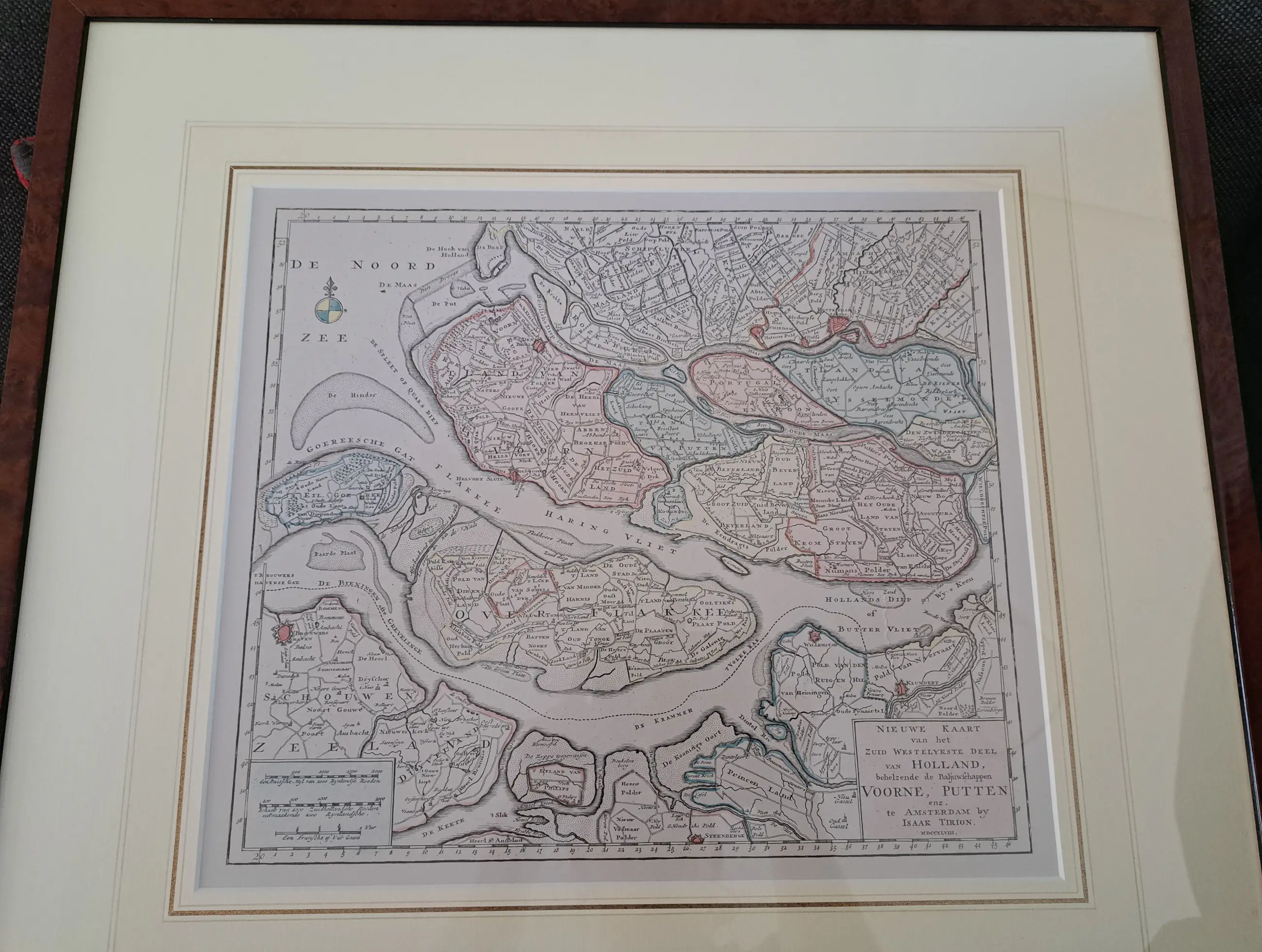 Karte von unter anderem Voorne Putten von einem der besten Kartographen des 18. Jahrhunderts, wunderschön gerahmt und gut erhalten.