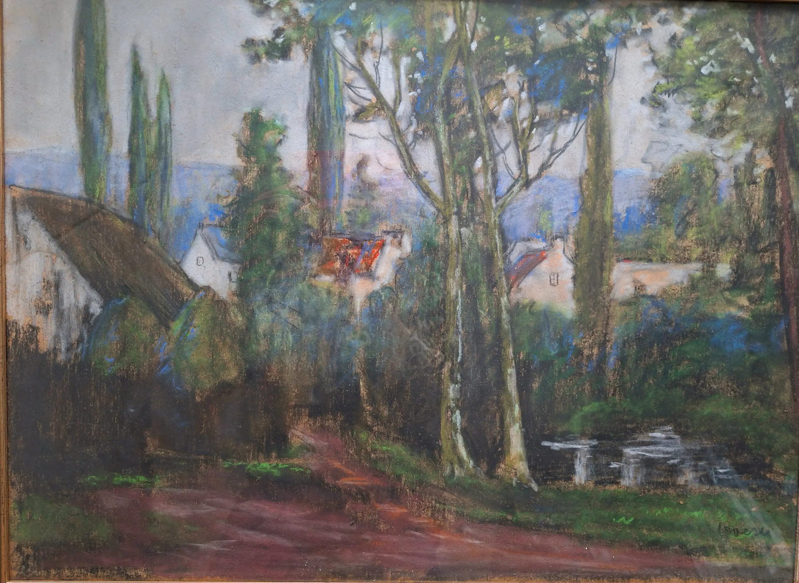 Die Farben sind noch lebendig, auch weil das Werk hinter Glas konserviert wurde. Maße: ca. 43 cm hoch x 58 cm breit, inkl. Rahmen: ca. 59 cm hoch x 74 cm breit.