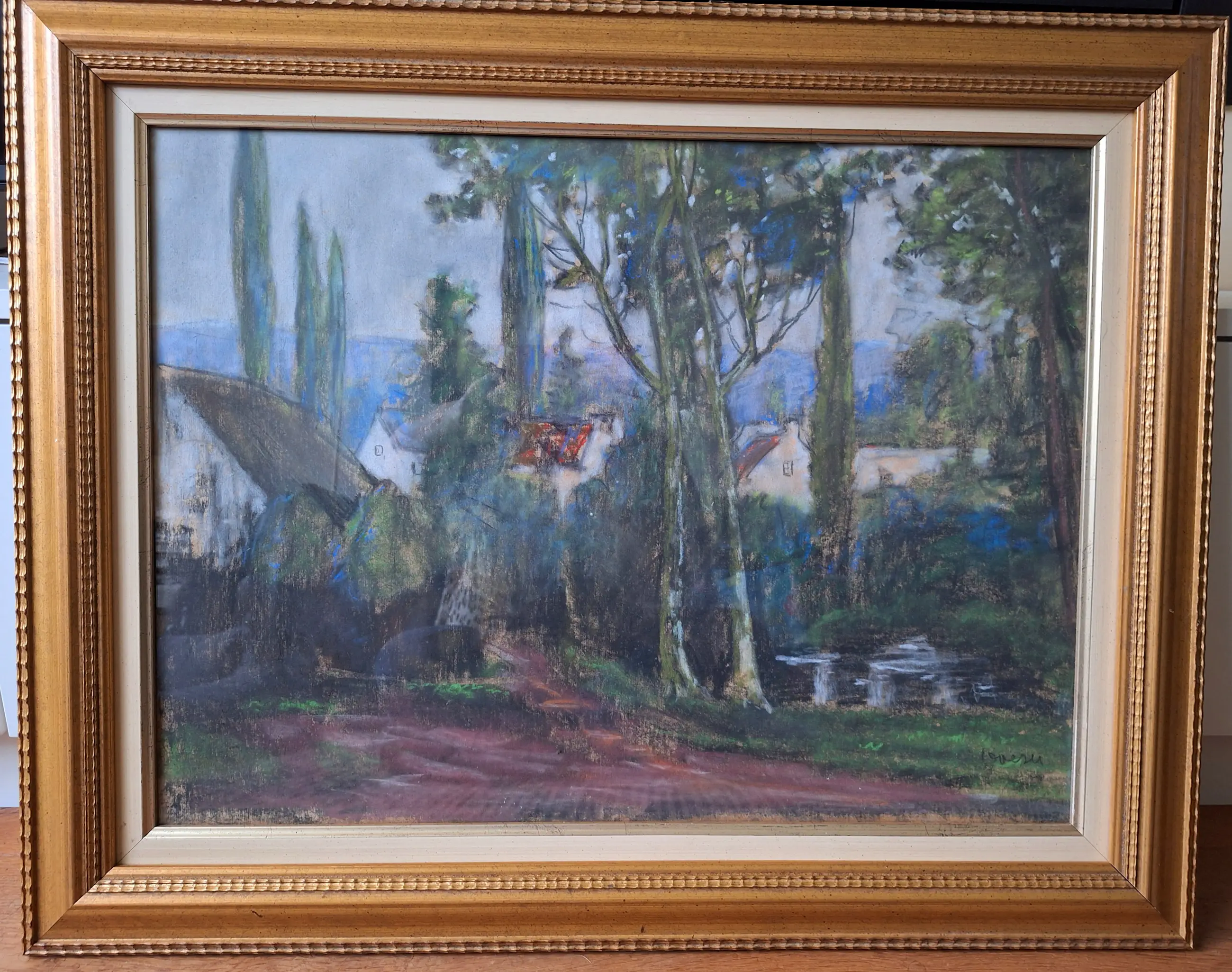 Wunderschöne, stimmungsvolle Arbeit in Mischtechnik, versehen mit einem schönen Rahmen.