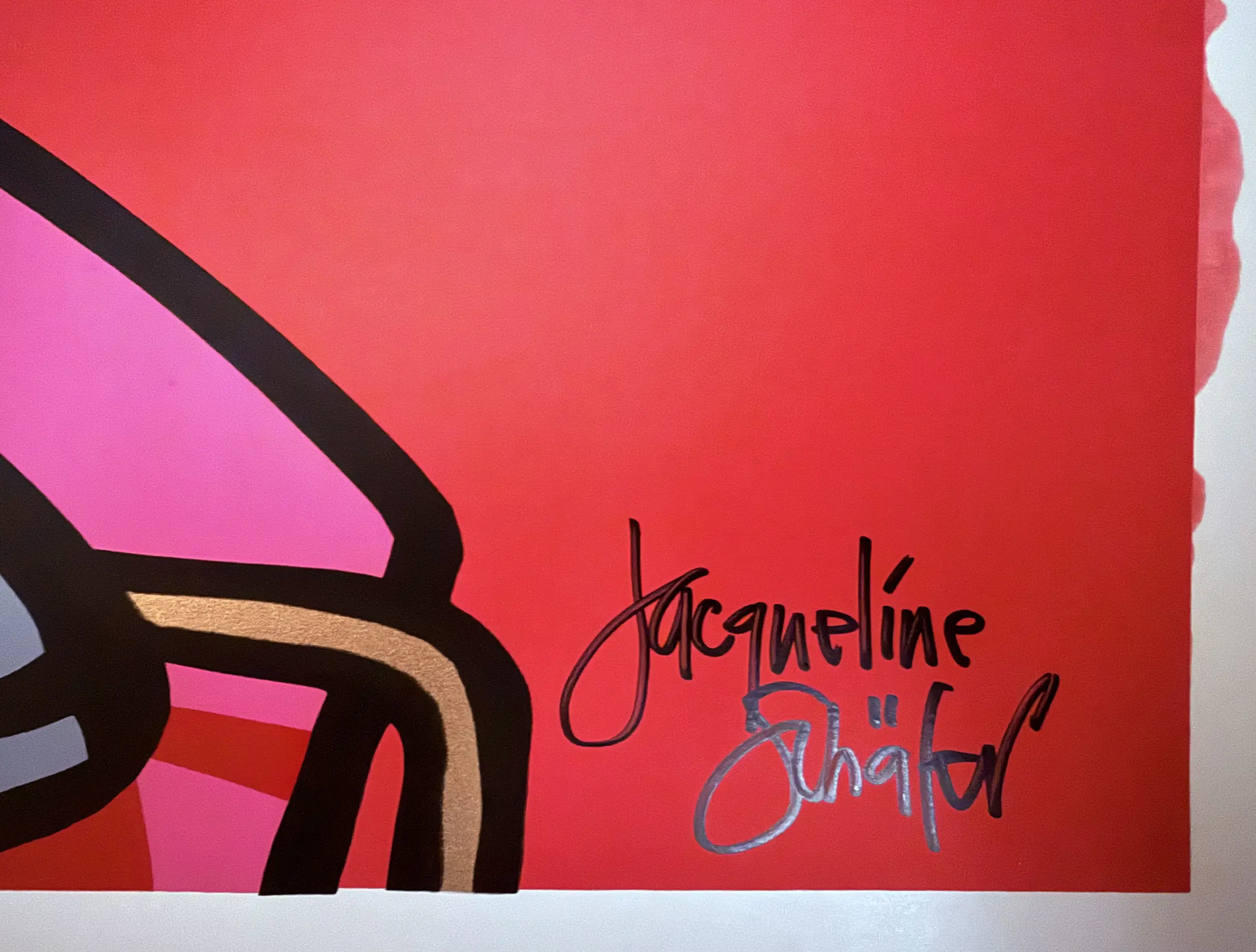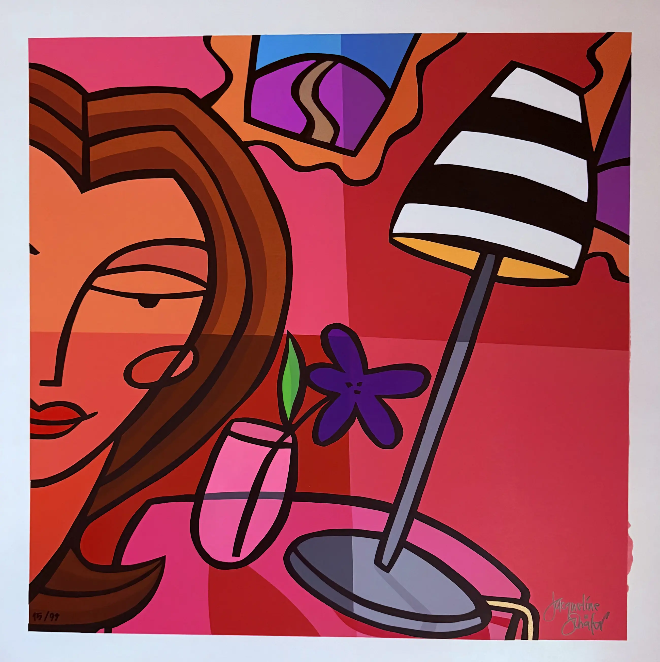 Jacqueline Schäfer: „Tisch mit Lampe“. Handsignierter Farbsiebdruck. Auflage: 99. Hier Nummer 97/99.