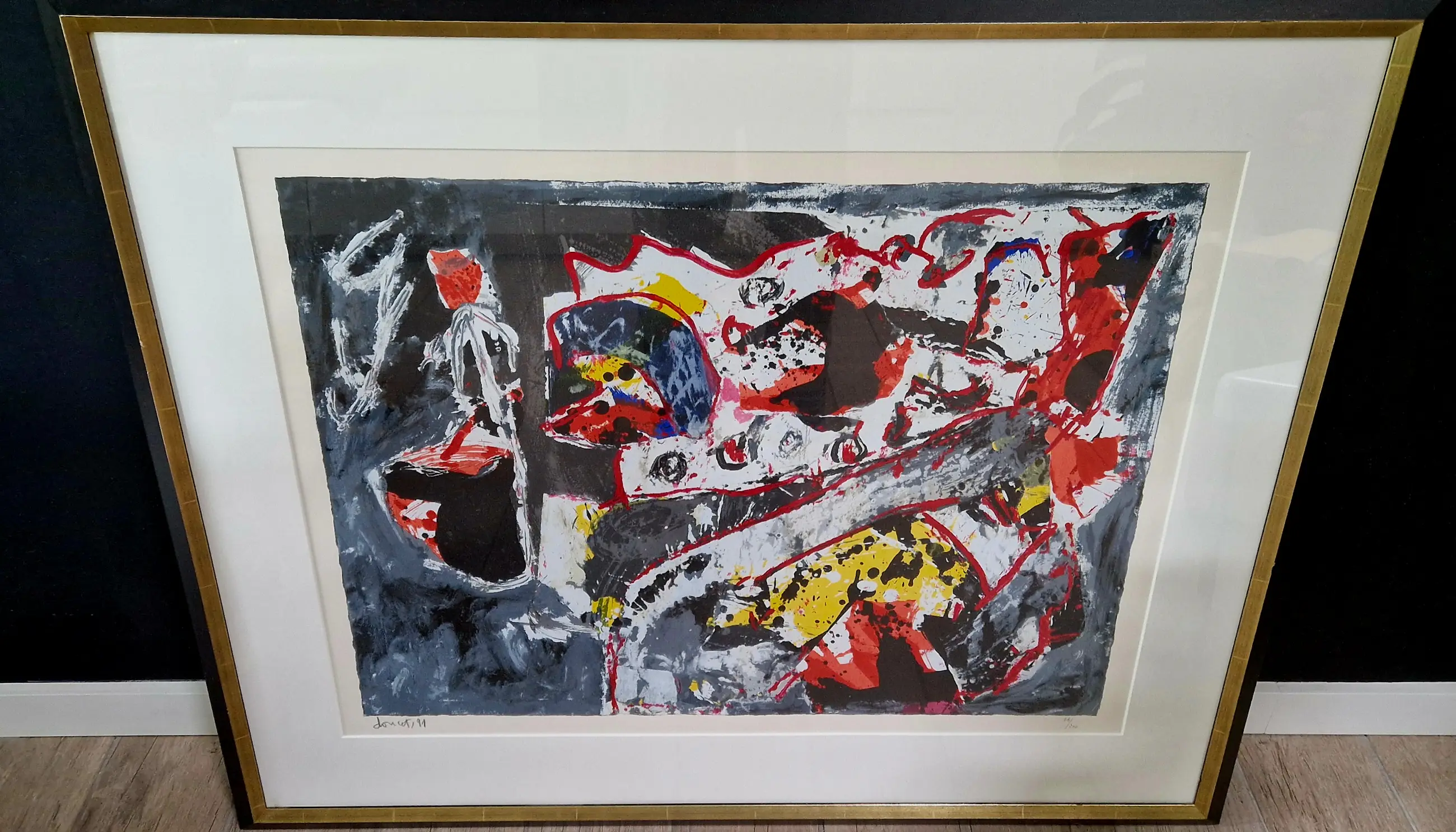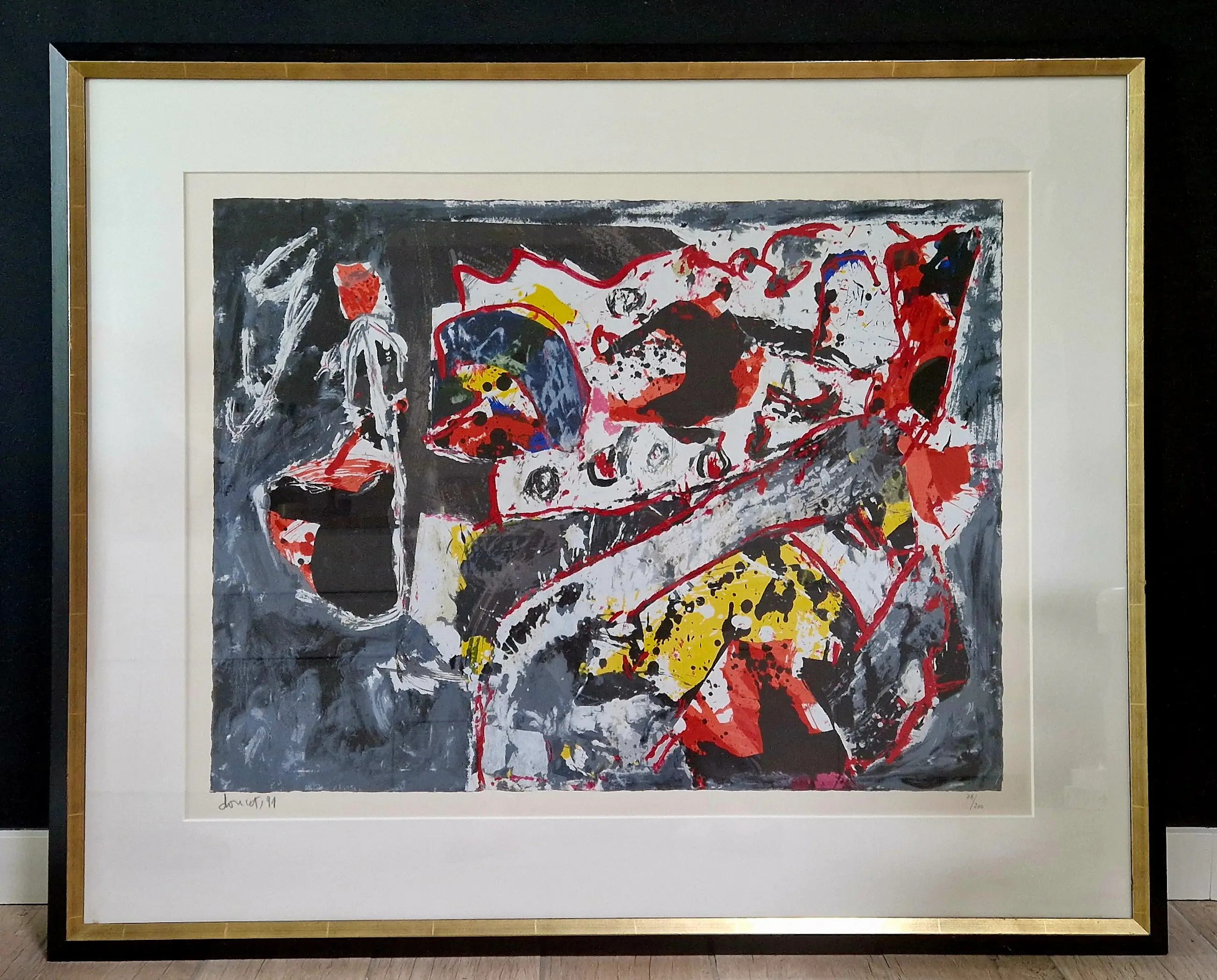 Wunderschöner großer Siebdruck aus dem Jahr 1991 von Künstler Jacques Doucet, dem französischen Cobra-Ableger. Professionell hinter Glas mit Passepartout gerahmt. Minimale Gebrauchsspuren am Rahmen.