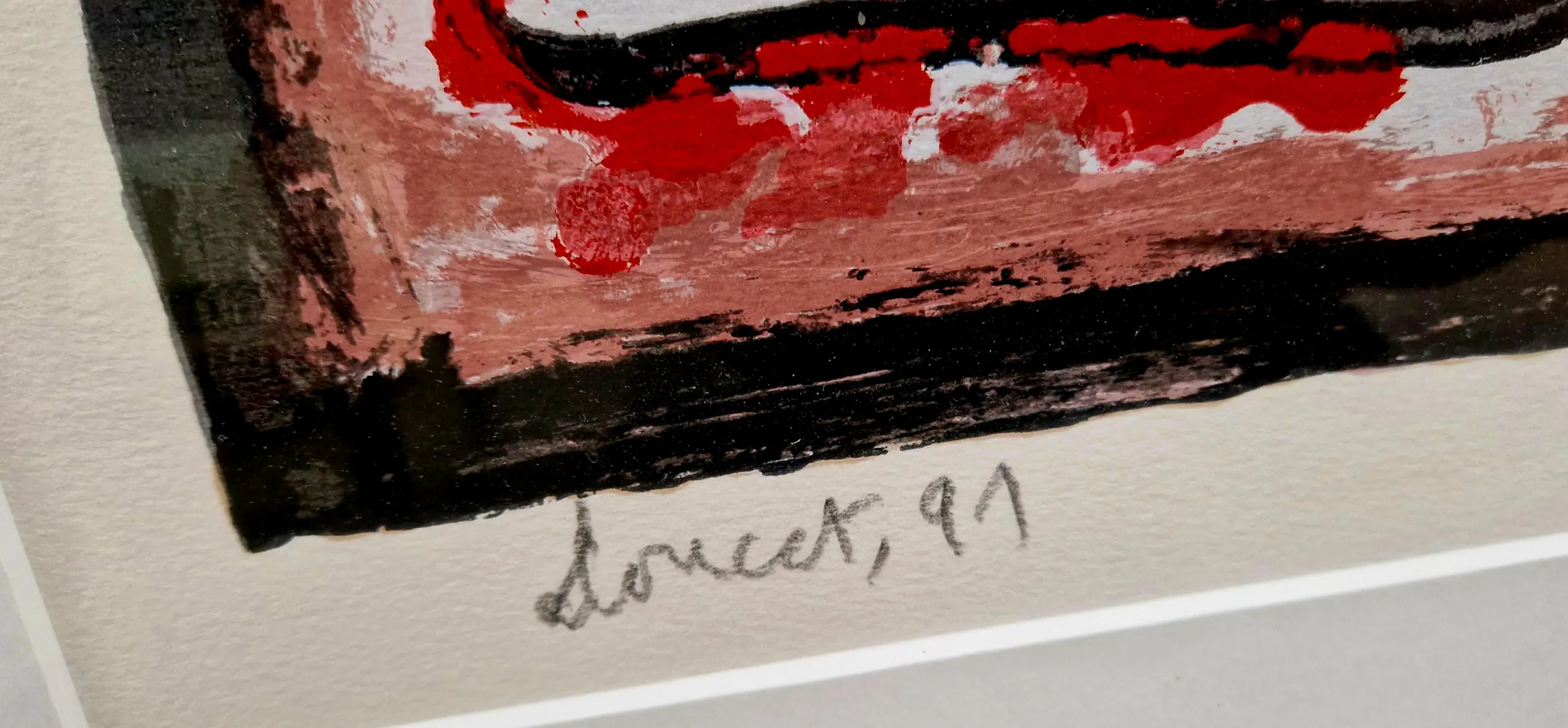 Wunderschöner großer Siebdruck aus dem Jahr 1991 von Künstler Jacques Doucet, dem französischen Cobra-Ableger. Auf Arches-Papier, herausgegeben von Jaski Art Amsterdam. Professionell hinter Glas mit Passepartout gerahmt. Minimale Gebrauchsspuren am Rahmen.