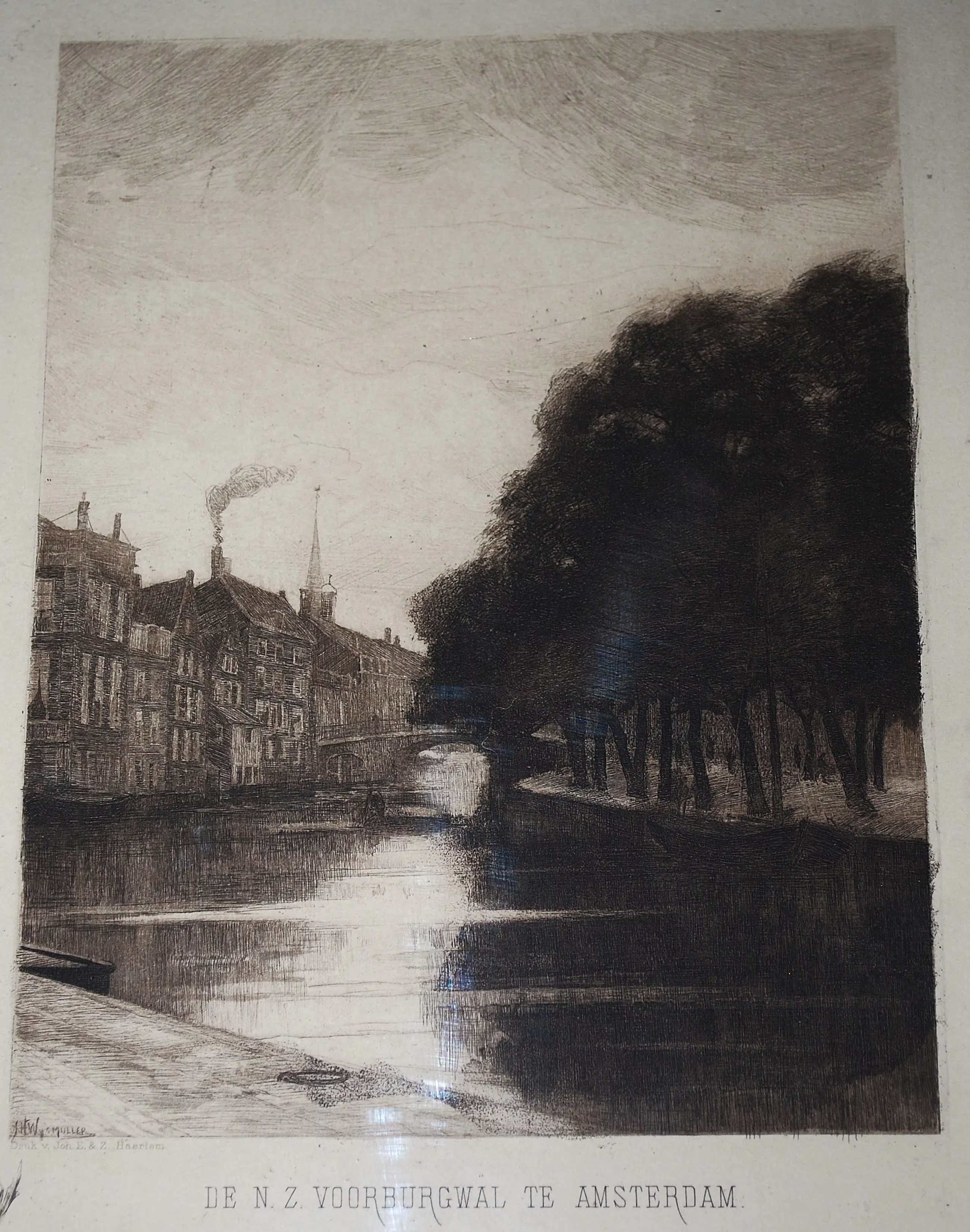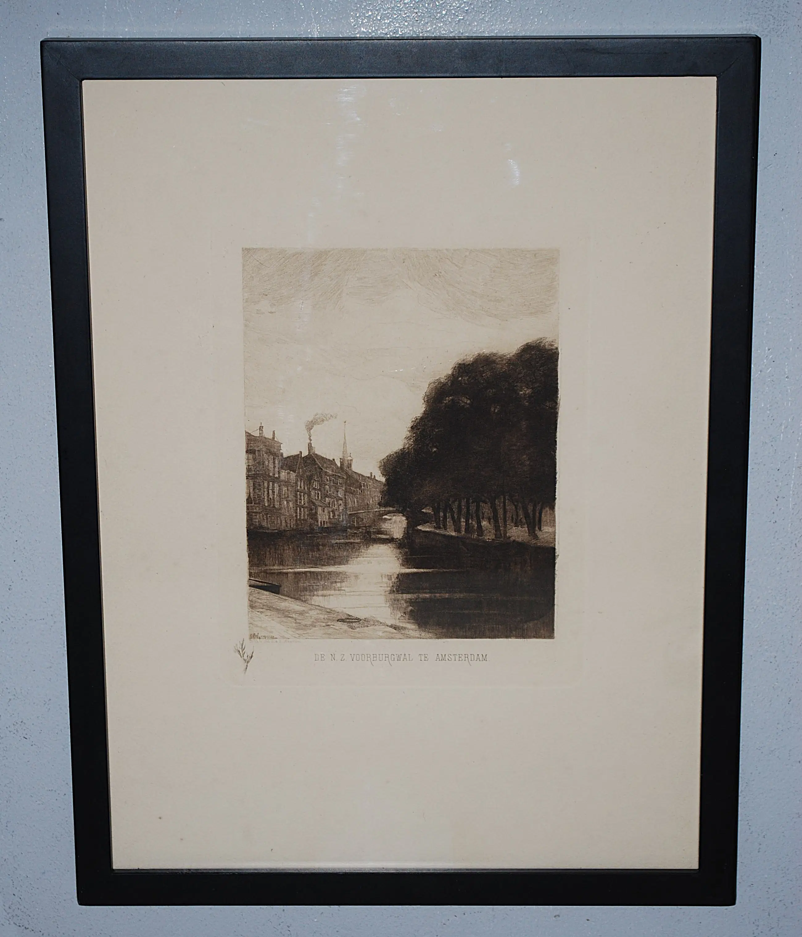 Jan Hillebrand Wijsmuller - N.Z. Voorburgwal Amsterdam - gerahmt