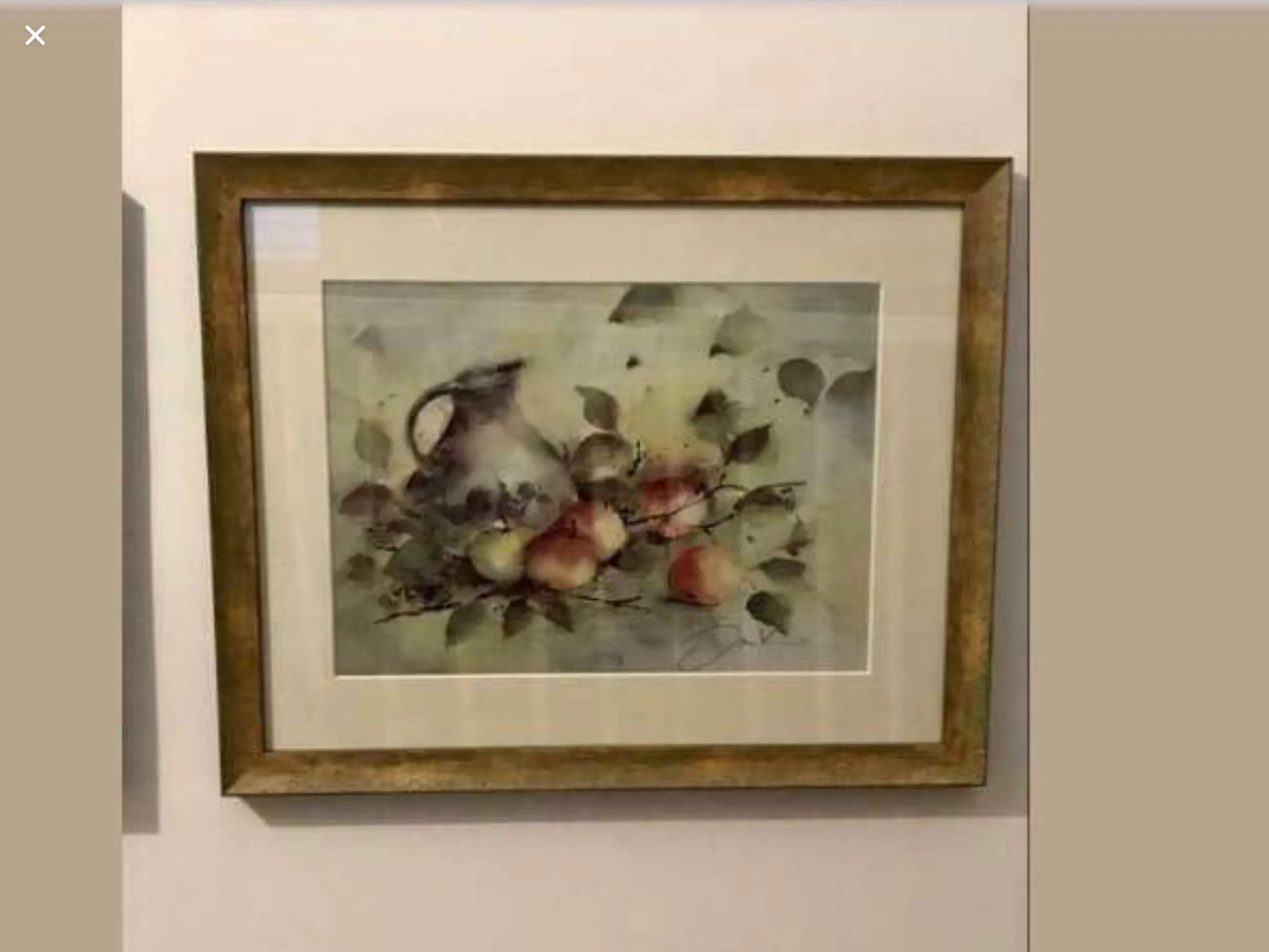 Wunderschönes Aquarell von Jan Kooistra (1950-2021) Es ist ein Aquarell von Äpfeln mit Vase im Passepartout Gerahmt in einem wunderschönen goldfarbenen Rahmen mit Glas. Perfekter Zustand Die andere Auktion beinhaltet das passende Aquarell mit Birnen auf einer Obstschale Ein wunderschönes Set, das man nicht oft zusammen sieht.