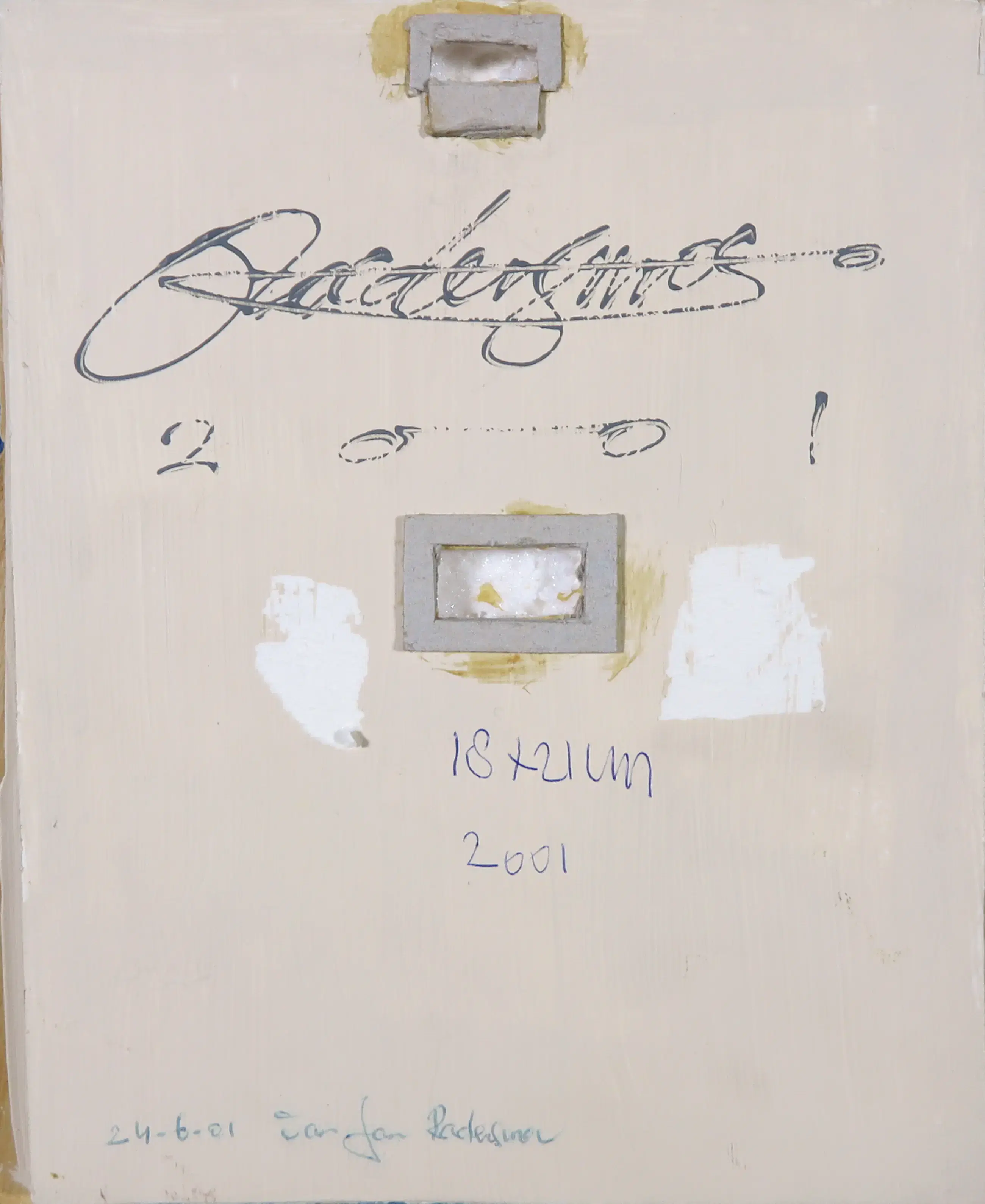 Kleines Unikat von Jan Radersma, hergestellt in Mischtechnik auf Karton. Das Werk ist auf der Rückseite signiert und datiert (2001).
