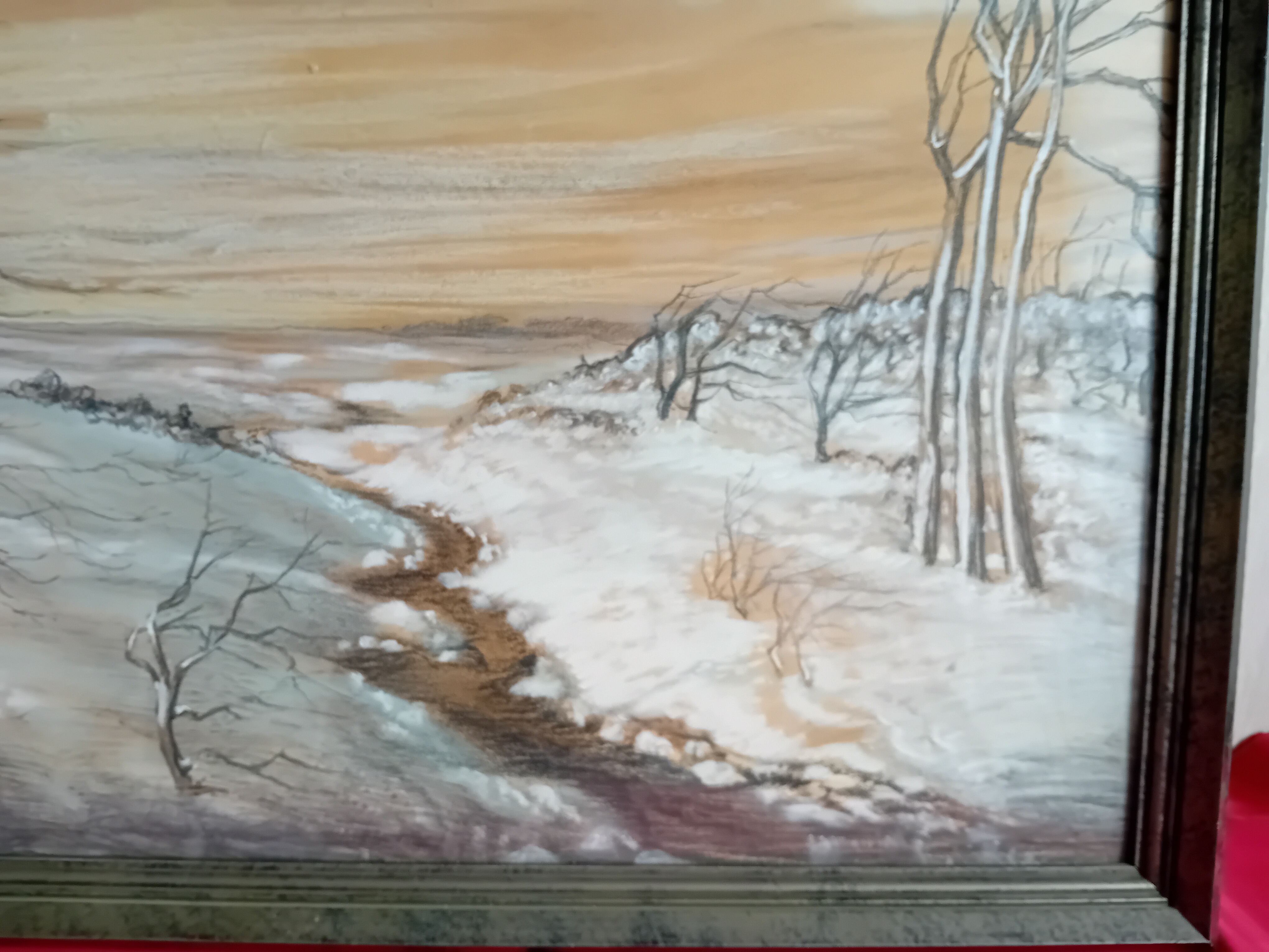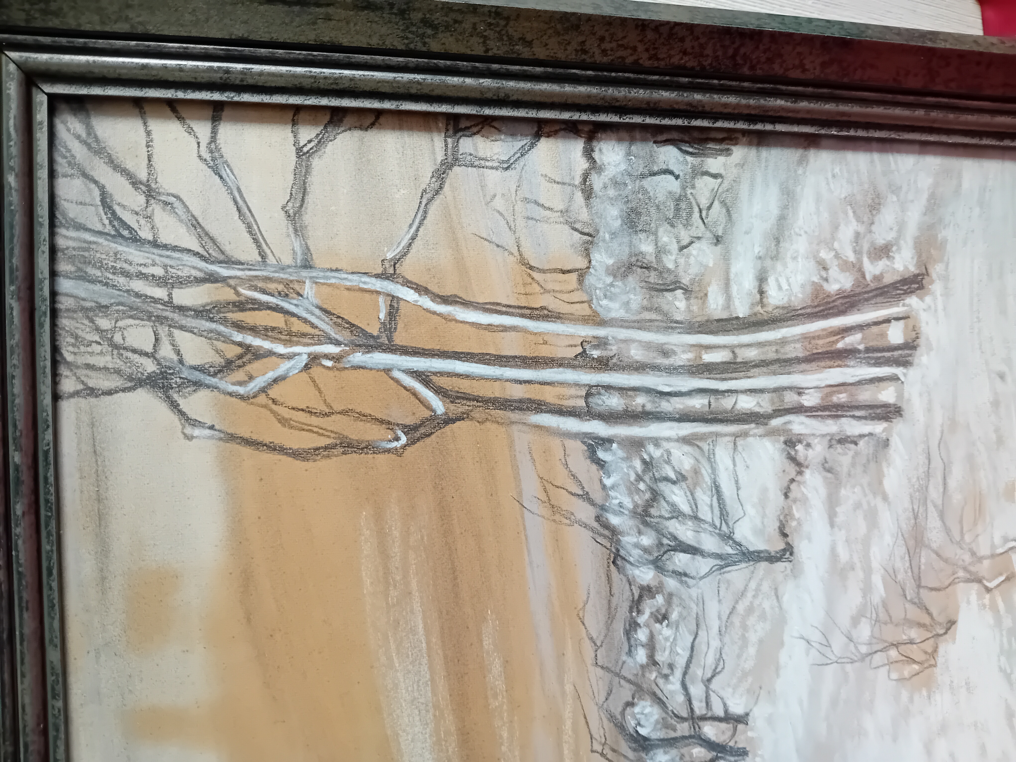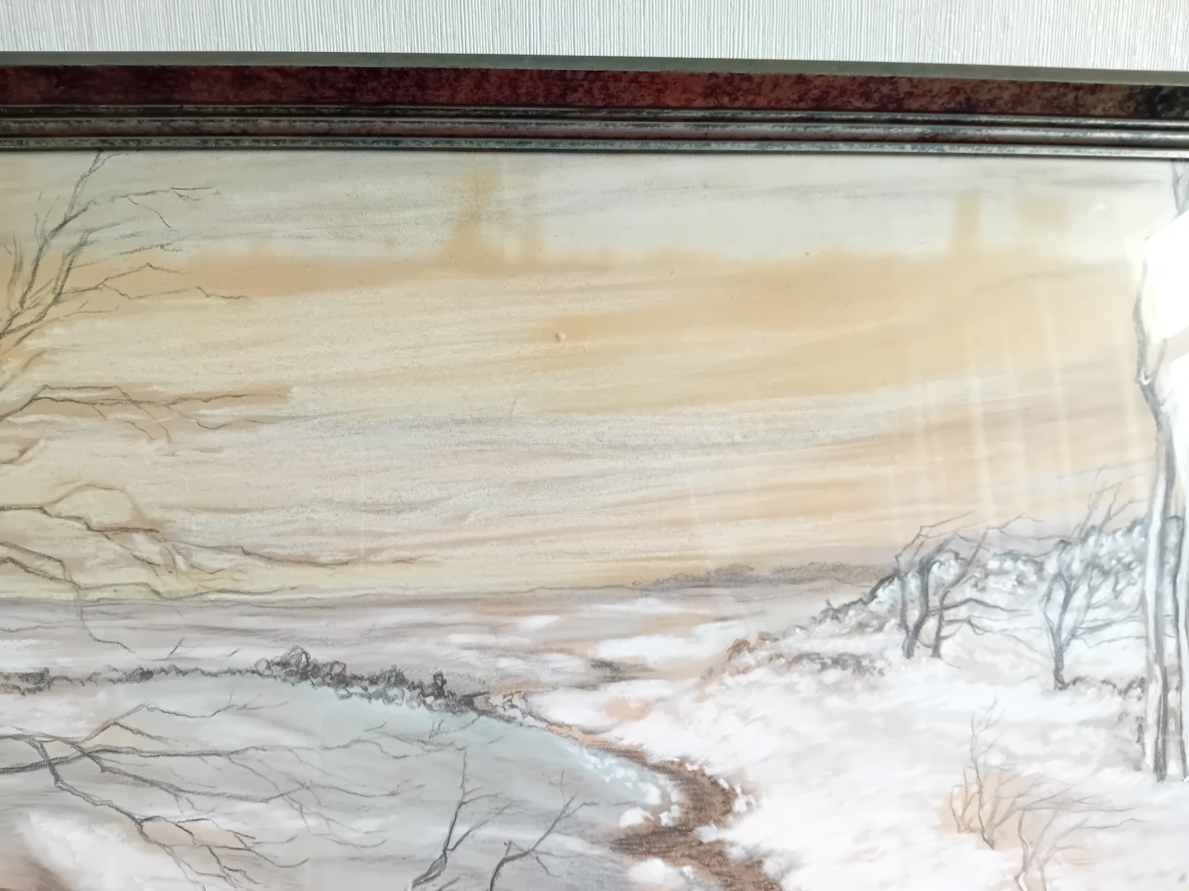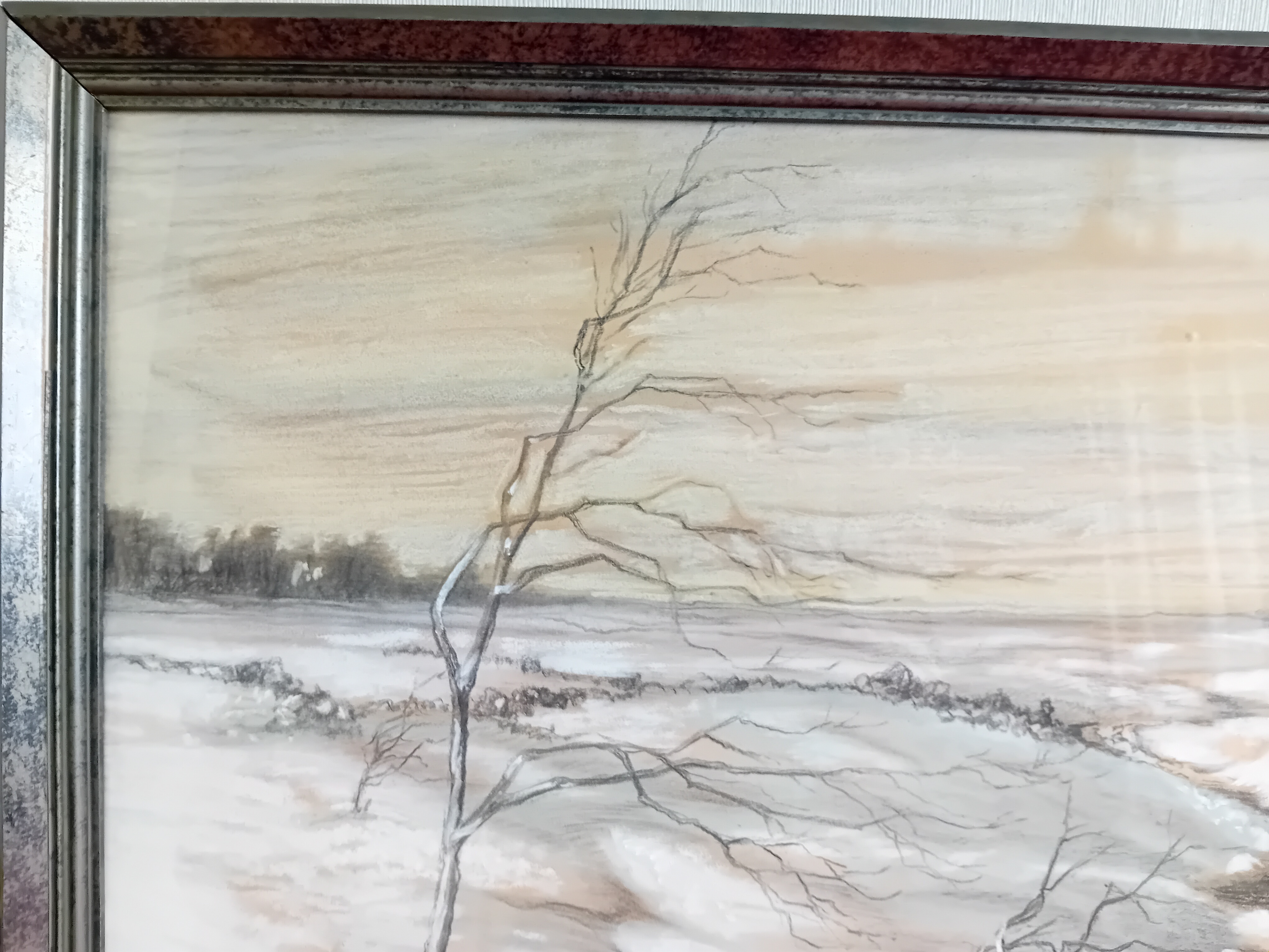 Eine sehr schöne, große, eindrucksvolle Pastellzeichnung einer Winterlandschaft von Jan Schonk.