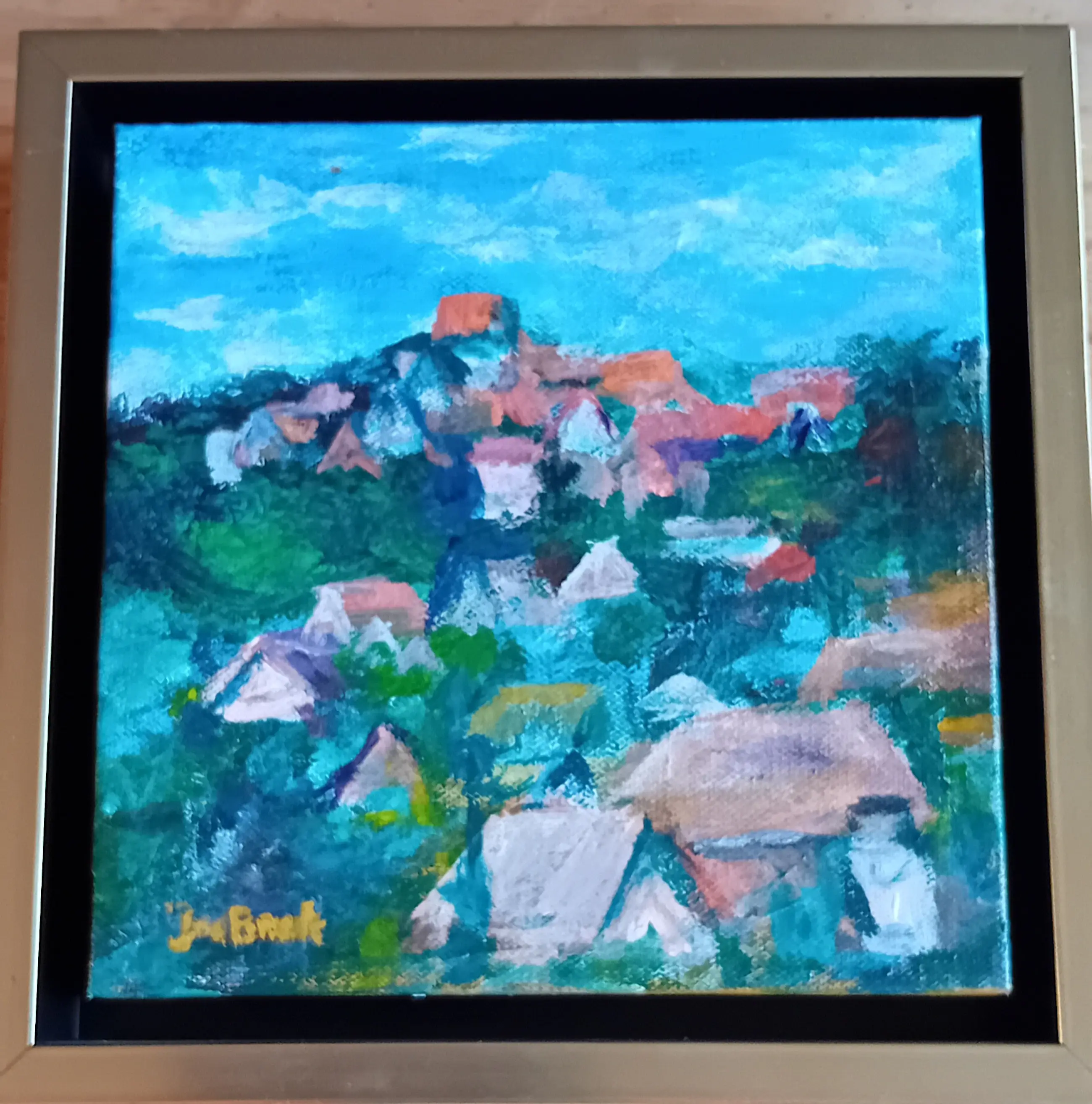 Landschaft. Bergdorf. Acryl auf Leinwand. 23.11.2012.. Unterzeichnet.