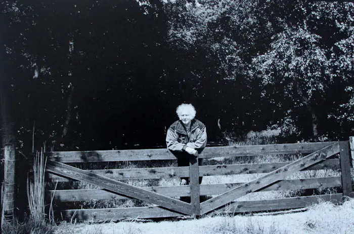 Charakteristisches Foto von Steye Raviez (1942-2017). Jan Wolkers in der natürlichen Umgebung seines Hauses auf Texel fotografiert. Hergestellt für die Winter Images-Serie im Jahr 1995. Maße Blatt: H31 x B44 cm. Bilddarstellung: H27 x B40cm.