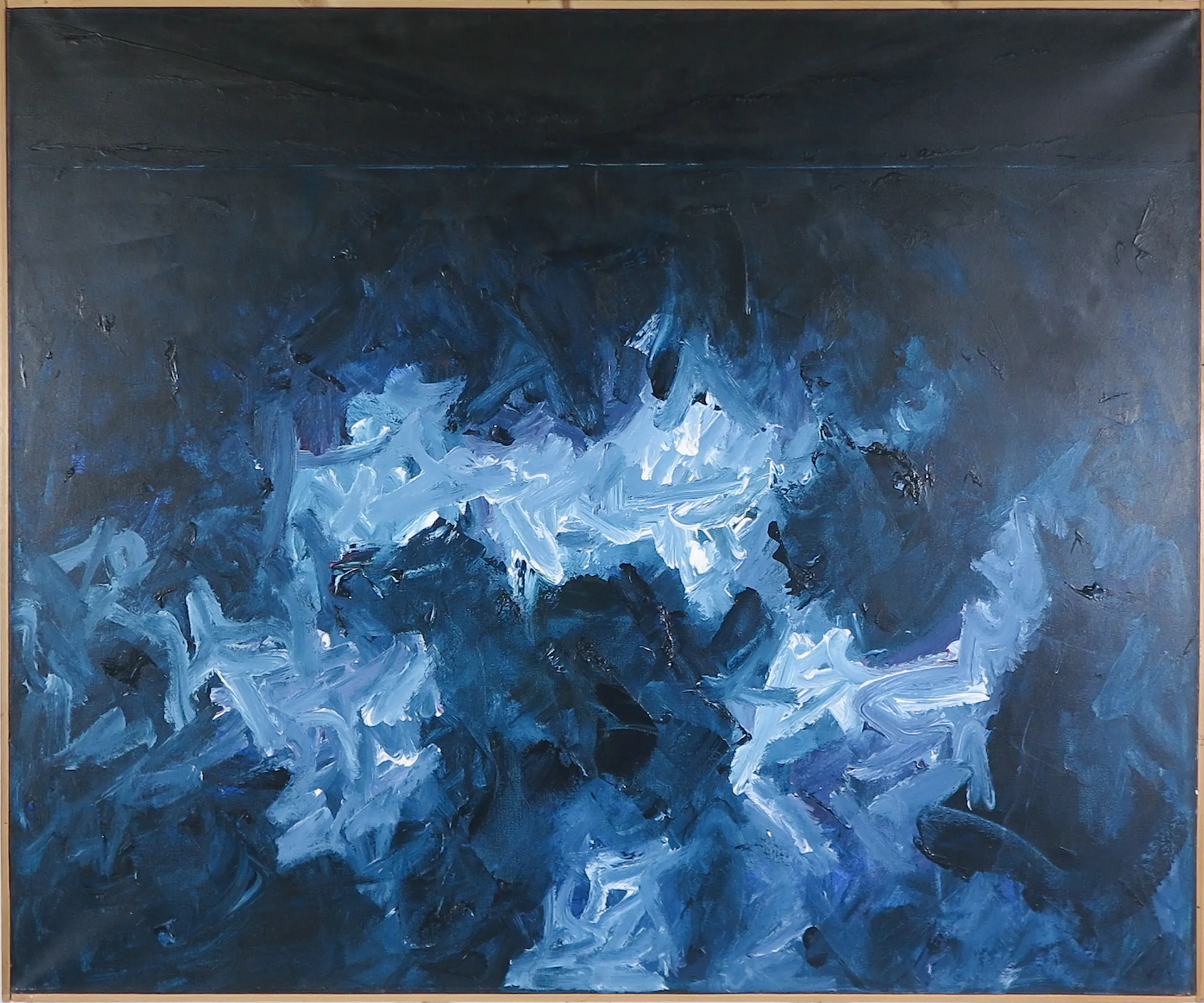 Die Leinwand ist in den oberen beiden Ecken etwas gewellt/verbeult. | |