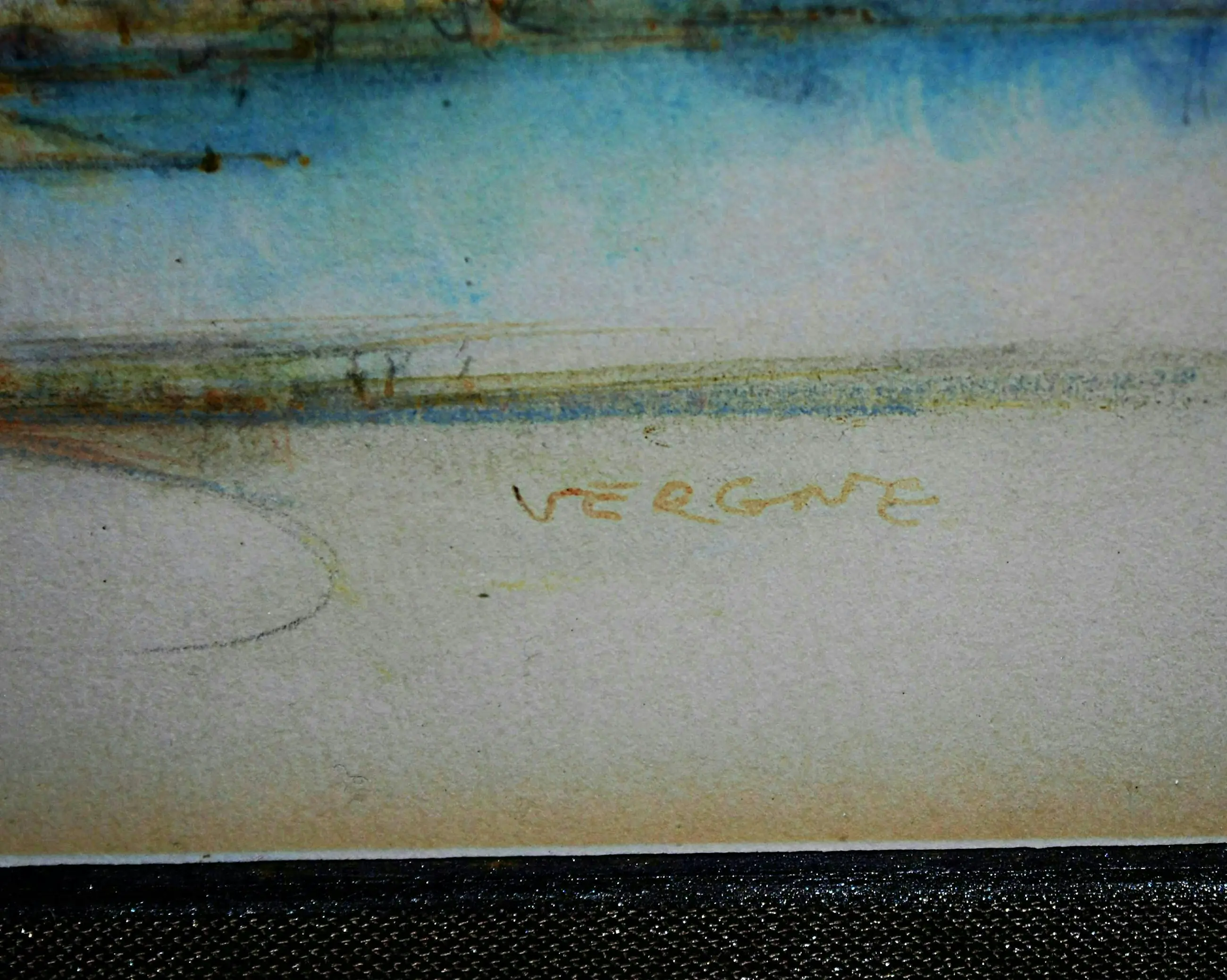 Jean-Louis Vergne - Ansicht von Chalon (Fr.) mit der Saône - Zeichnung mit Aquarell - schön gerahmt