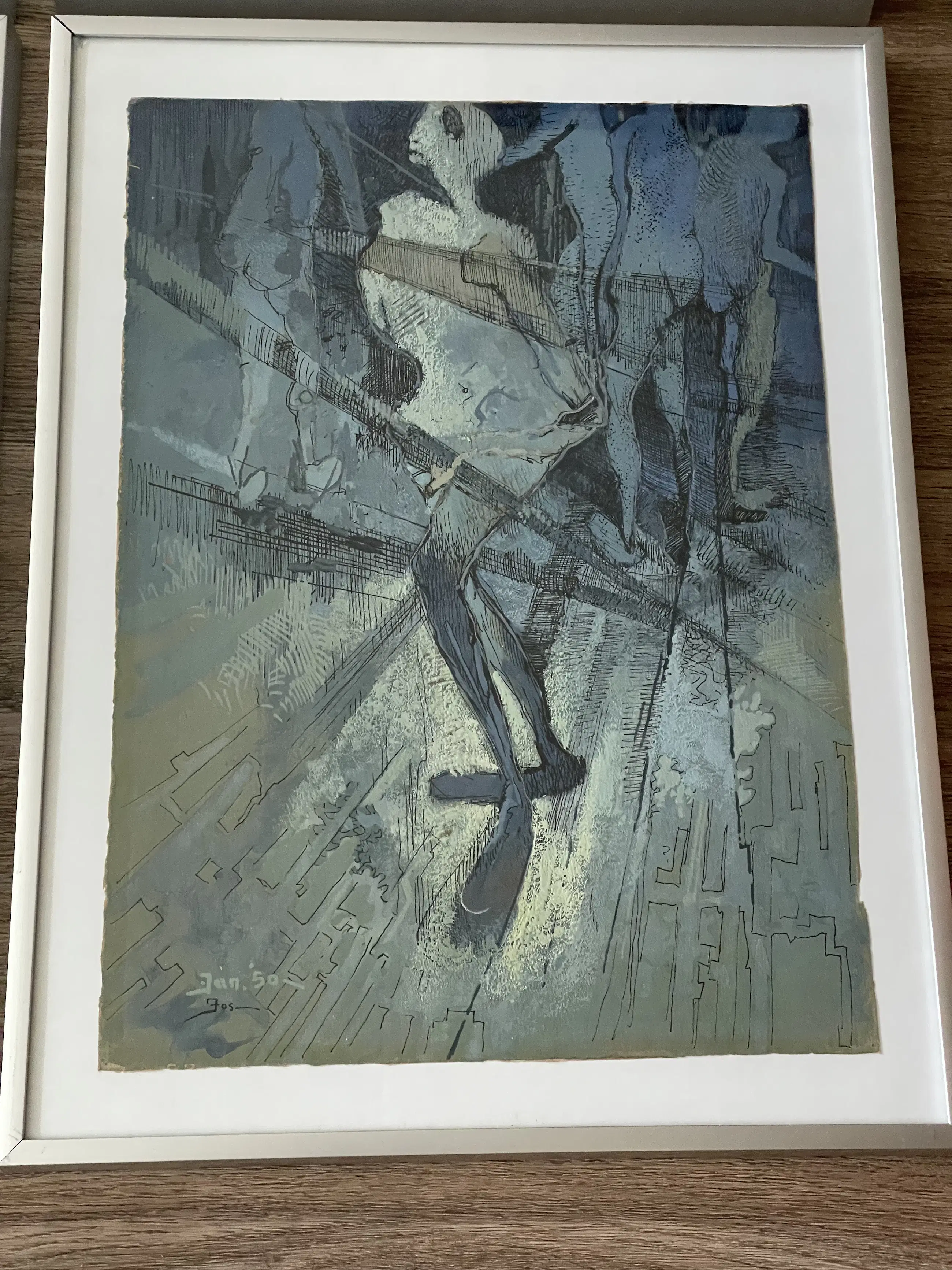 Es handelt sich um ein Mischverfahren, Gouache mit Tusche. Ein loses Werk selbst misst 24x34cm.