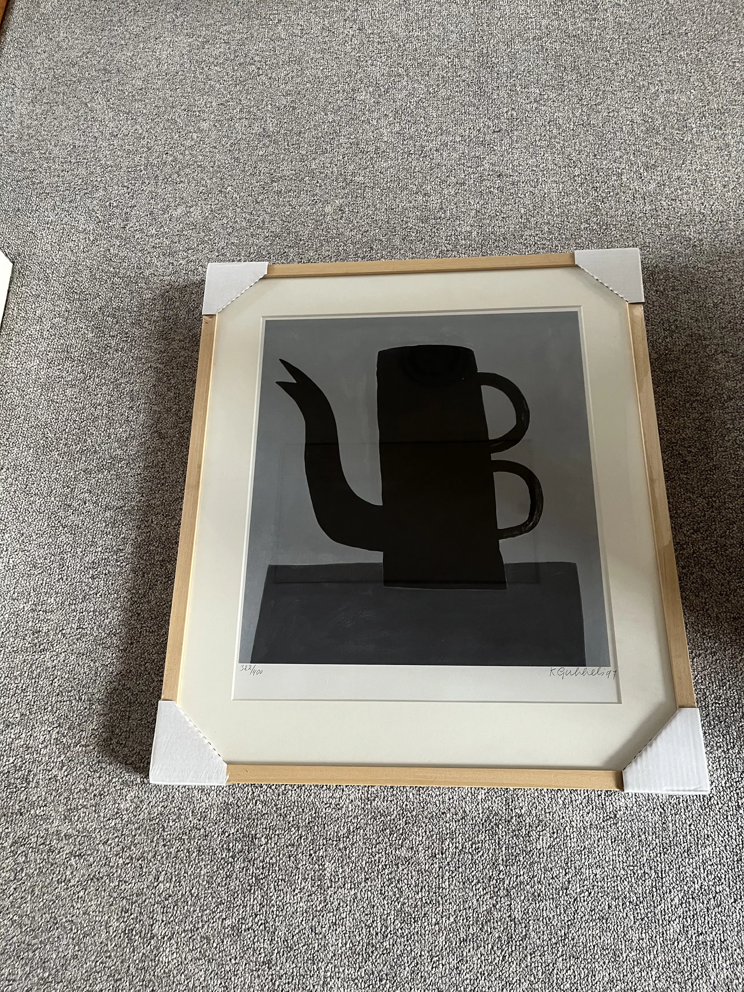 Klaas Gubbels hat eigens für Zwitserleven vier verschiedene Siebdrucke geschaffen, jeweils in limitierter Auflage und vom Künstler persönlich signiert (unten rechts) und nummeriert (unten links). Alles ist noch komplett verpackt. Daher kenne ich das Trägermaterial nicht und habe daher Papier angegeben. Auch die genauen Maße des Werkes kenne ich nicht und habe daher 70 mal 61 cm angegeben.