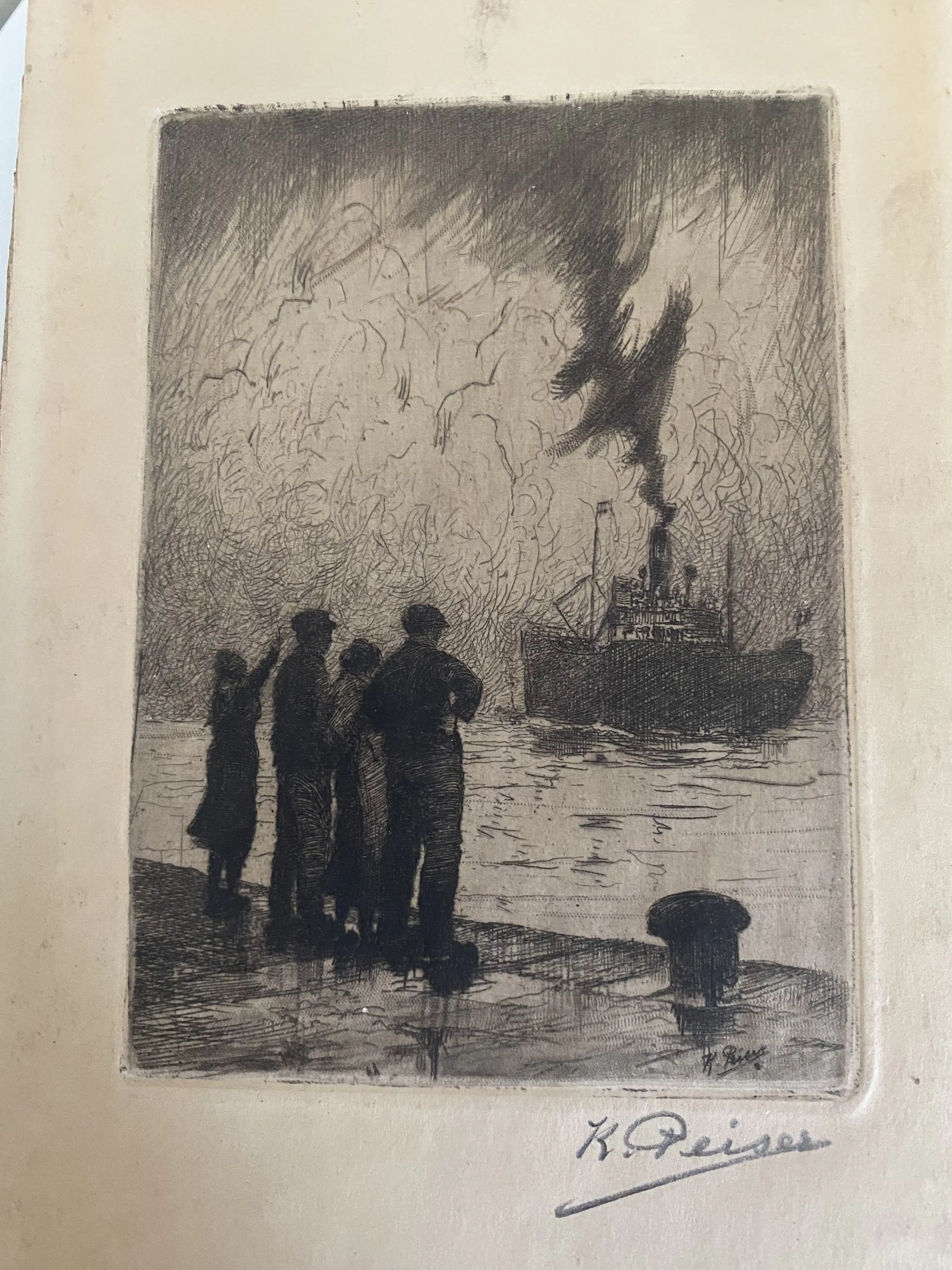 Der Rahmen besteht aus Glas und die Seiten sind lose. Die Radierung selbst ist in gutem Zustand.