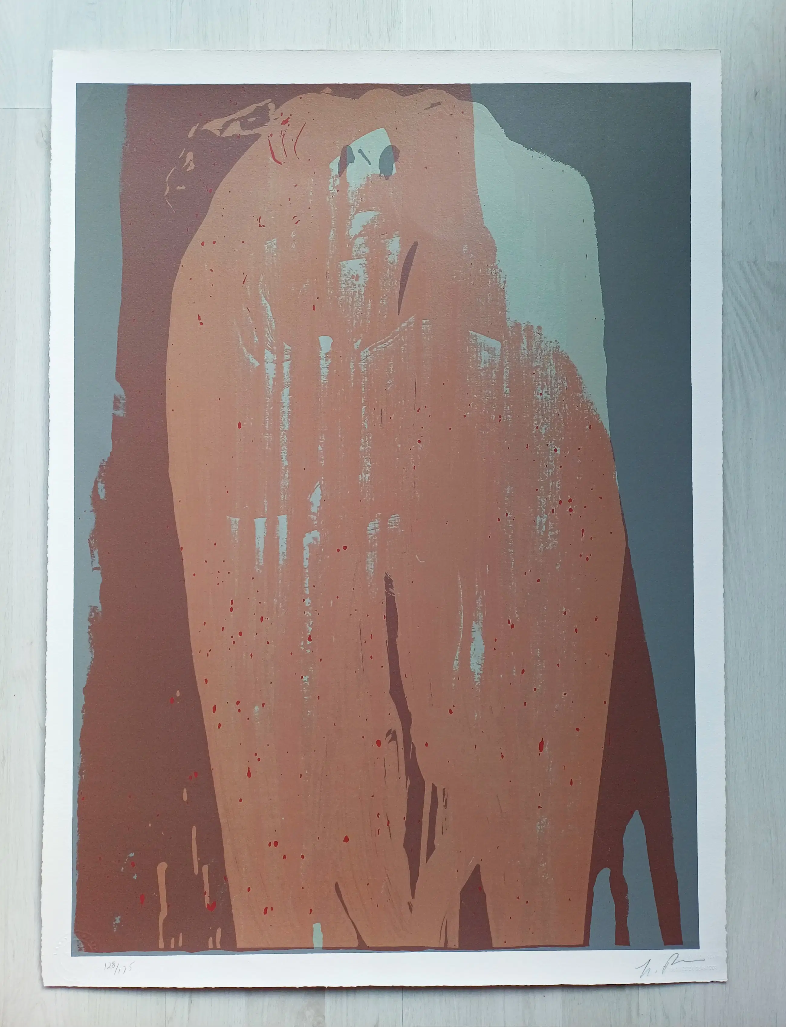 Technik: Siebdruck in Farbe auf Büttenpapier.