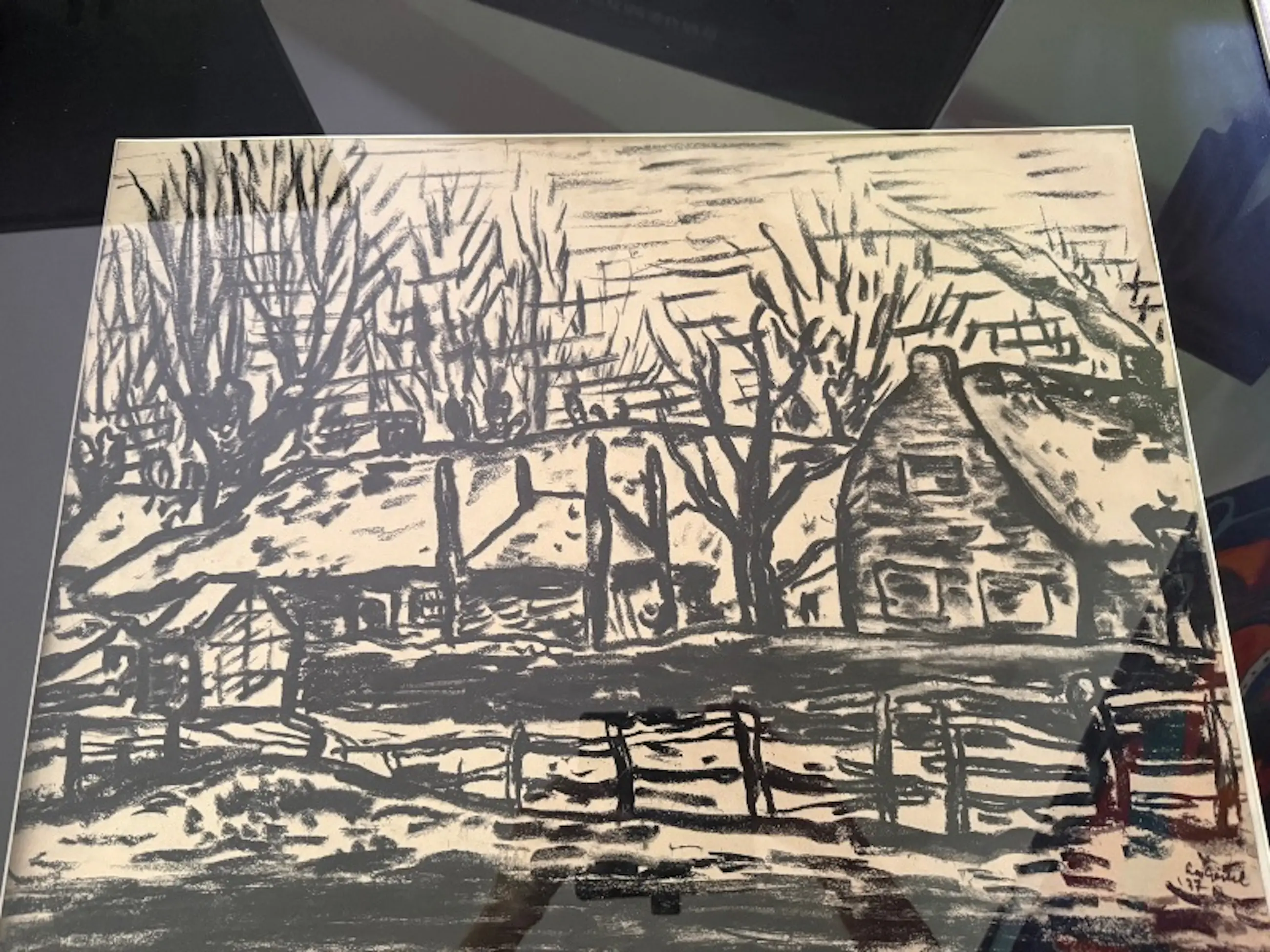 „Farm“, Kohle auf Papier, unten rechts signiert und datiert „37“ von Leo Gestel (1881–1941).