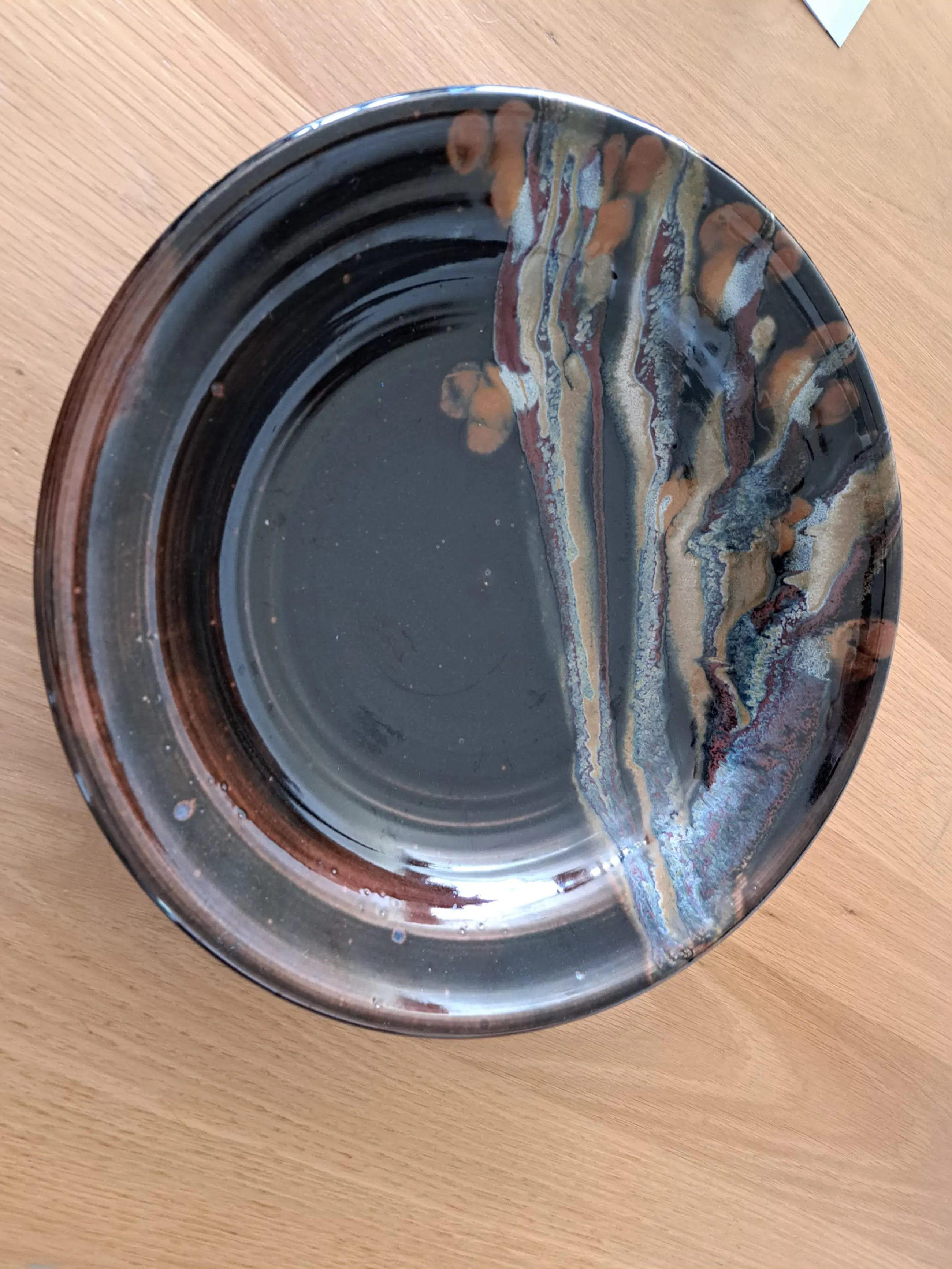 Schöne dekorative und/oder funktionale Schale von Leo Martens. Schöne Farben, unbeschädigt. Auf der Unterseite vom Künstler signiert.